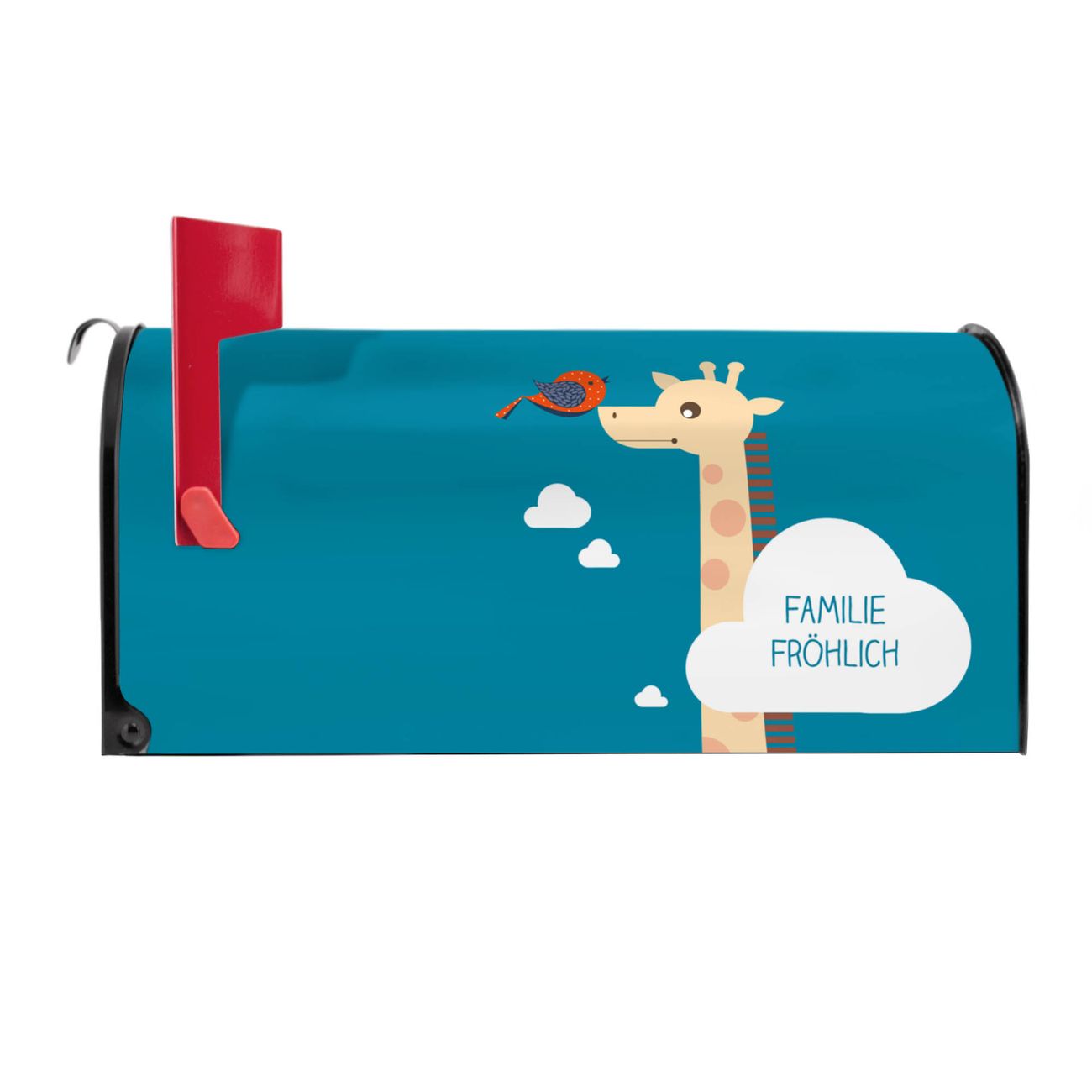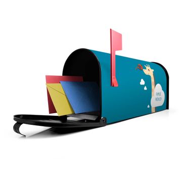Der amerikanische Briefkasten von banjado mit Sally und Georg Motiv bietet Ihnen ausreichend Fassungsvermögen, um große A4 Sendungen und Zeitschriften zu empfangen. Die typisch amerikanische rote Fahne zeigt Ihnen an, wenn Sie Post erhalten haben. Die US-Mailbox besteht aus verzinktem Stahlblech welches lackiert wurde und ist 48 x 22 x 16 CM (BxHxT) groß. Die Folie mit Motiv Sally und Georg besteht aus einer wetter- und UV-resistenten Folie, die mit einem Schutzlaminat überzogen ist, sodass die US Mailbox zusätzlich vor Kratzern geschützt ist. An der Unterkante sind 4 Löcher je Seite um die Mailbox, typisch amerikanisch, an einem Holzpfahl oder einem Zaun zu befestigen. Auf Wunsch können Sie bei uns den passenden Standfuß oder die passende Wandhalterung kaufen um die US-Mailbox sicher zu befestigen. Wir bieten Ihnen ebenfalls Namensschilder, bereits beschriftet oder frei zu beschriften, und verschiedene selbst gestaltete Bitte-Keine-Werbung-Aufkleber.