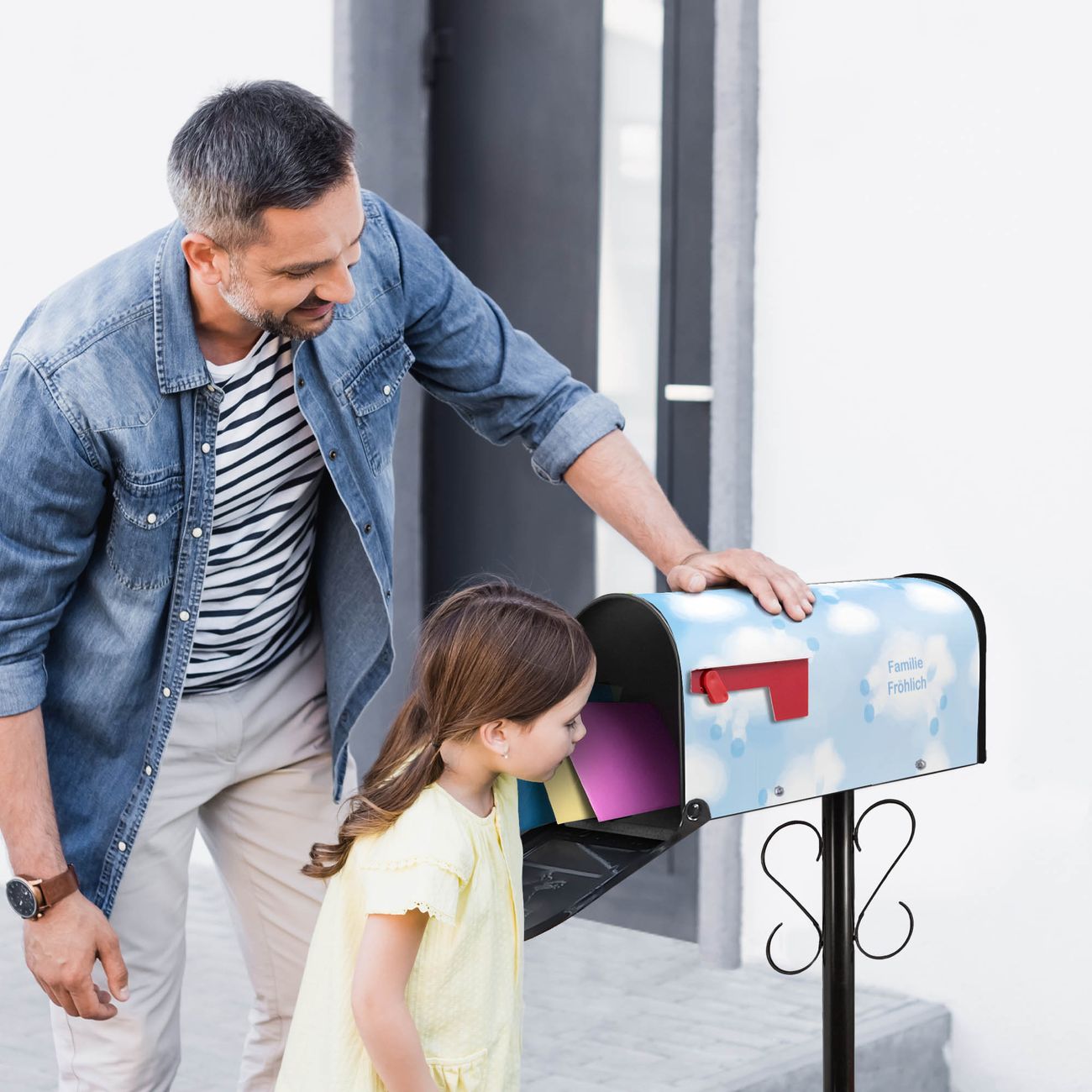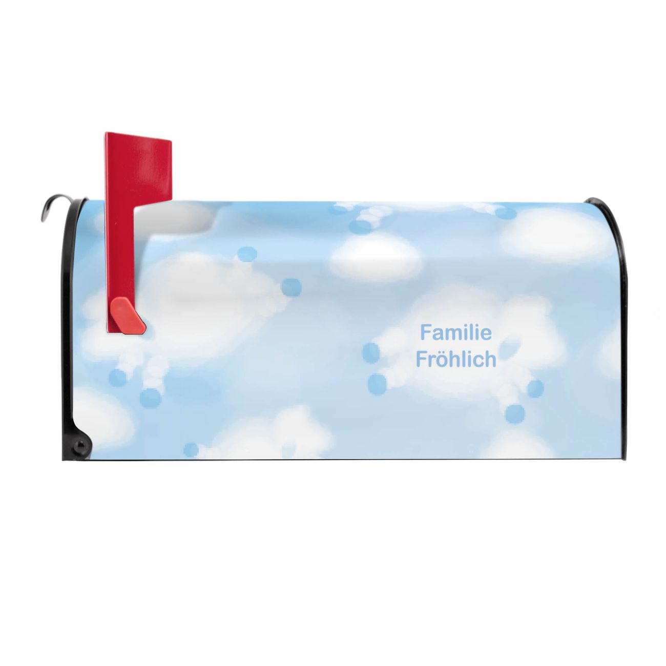 Unser amerikanischer Briefkasten mit dem Motiv Schäfchenwolken hat ein sehr ansprechendes und ausgefallenes Design, ist in der Grundfarbe weiß, grün oder schwarz erhältlich. Damit entlocken Sie Ihren Nachbarn und dem Postboten immer wieder ein Lächeln. Die Mailbox ist ein Original Import aus Mississippi USA und wird von unserer kleinen Manufaktur in Sachsen von Hand veredelt. Die US-Mailbox bietet ausreichend Platz auch für große Sendungen, eine Fahne die Ihnen Post anzeigt, wetterfestes und äußerst stabiles Material - so macht Post empfangen Freude.