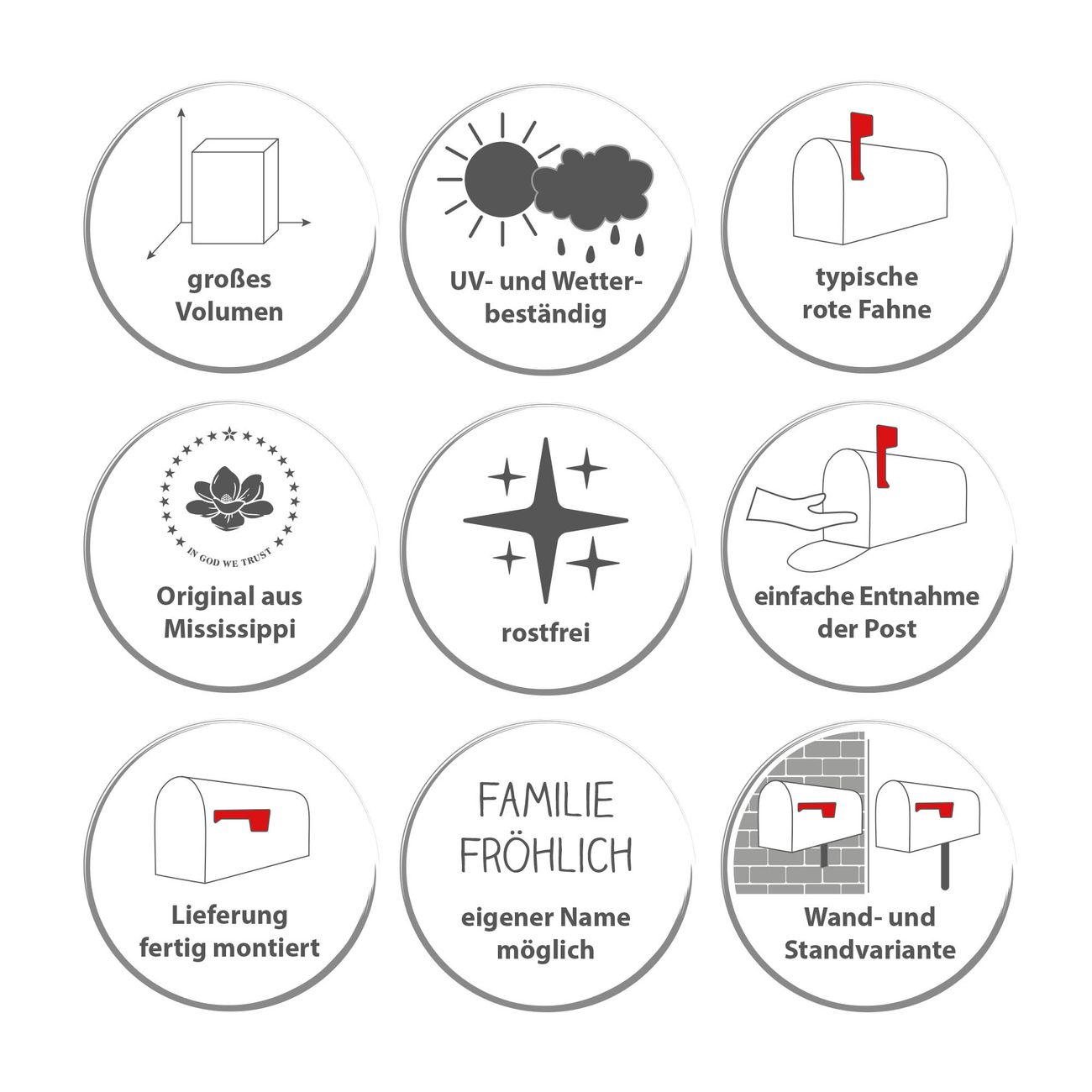 Unser amerikanischer Briefkasten mit dem Motiv Schattenspiel hat ein sehr ansprechendes und ausgefallenes Design, ist in der Grundfarbe weiß, grün oder schwarz erhältlich. Damit entlocken Sie Ihren Nachbarn und dem Postboten immer wieder ein Lächeln. Die Mailbox ist ein Original Import aus Mississippi USA und wird von unserer kleinen Manufaktur in Sachsen von Hand veredelt. Die US-Mailbox bietet ausreichend Platz auch für große Sendungen, eine Fahne die Ihnen Post anzeigt, wetterfestes und äußerst stabiles Material - so macht Post empfangen Freude.