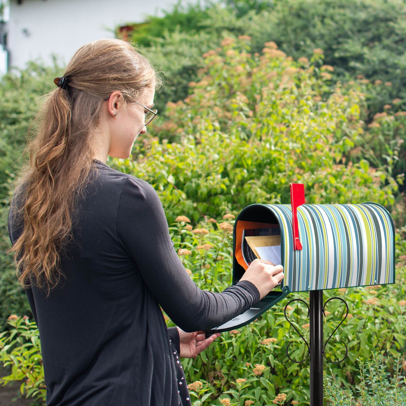 Unser amerikanischer Briefkasten mit dem Motiv Schilf Abstrakt hat ein sehr ansprechendes und ausgefallenes Design, ist in der Grundfarbe weiß, grün oder schwarz erhältlich. Damit entlocken Sie Ihren Nachbarn und dem Postboten immer wieder ein Lächeln. Die Mailbox ist ein Original Import aus Mississippi USA und wird von unserer kleinen Manufaktur in Sachsen von Hand veredelt. Die US-Mailbox bietet ausreichend Platz auch für große Sendungen, eine Fahne die Ihnen Post anzeigt, wetterfestes und äußerst stabiles Material - so macht Post empfangen Freude.