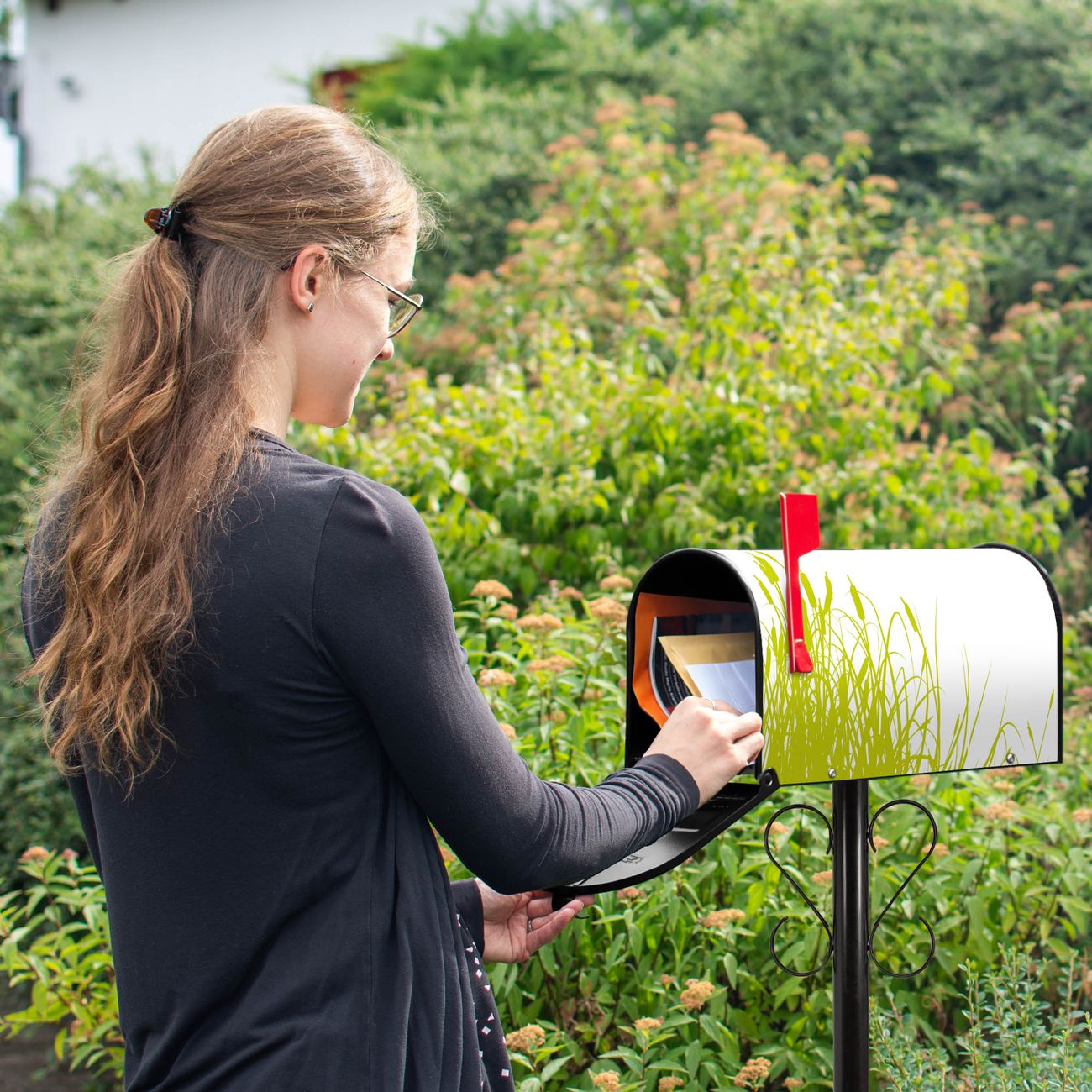 Unser amerikanischer Briefkasten mit dem Motiv Schilf hat ein sehr ansprechendes und ausgefallenes Design, ist in der Grundfarbe weiß, grün oder schwarz erhältlich. Damit entlocken Sie Ihren Nachbarn und dem Postboten immer wieder ein Lächeln. Die Mailbox ist ein Original Import aus Mississippi USA und wird von unserer kleinen Manufaktur in Sachsen von Hand veredelt. Die US-Mailbox bietet ausreichend Platz auch für große Sendungen, eine Fahne die Ihnen Post anzeigt, wetterfestes und äußerst stabiles Material - so macht Post empfangen Freude.