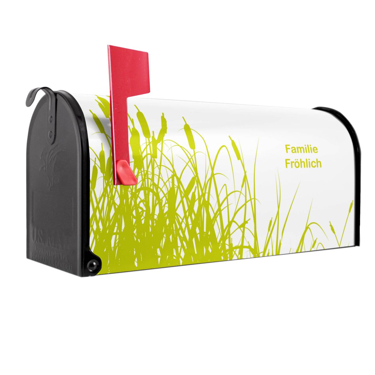 Unser amerikanischer Briefkasten mit dem Motiv Schilf hat ein sehr ansprechendes und ausgefallenes Design, ist in der Grundfarbe weiß, grün oder schwarz erhältlich. Damit entlocken Sie Ihren Nachbarn und dem Postboten immer wieder ein Lächeln. Die Mailbox ist ein Original Import aus Mississippi USA und wird von unserer kleinen Manufaktur in Sachsen von Hand veredelt. Die US-Mailbox bietet ausreichend Platz auch für große Sendungen, eine Fahne die Ihnen Post anzeigt, wetterfestes und äußerst stabiles Material - so macht Post empfangen Freude.