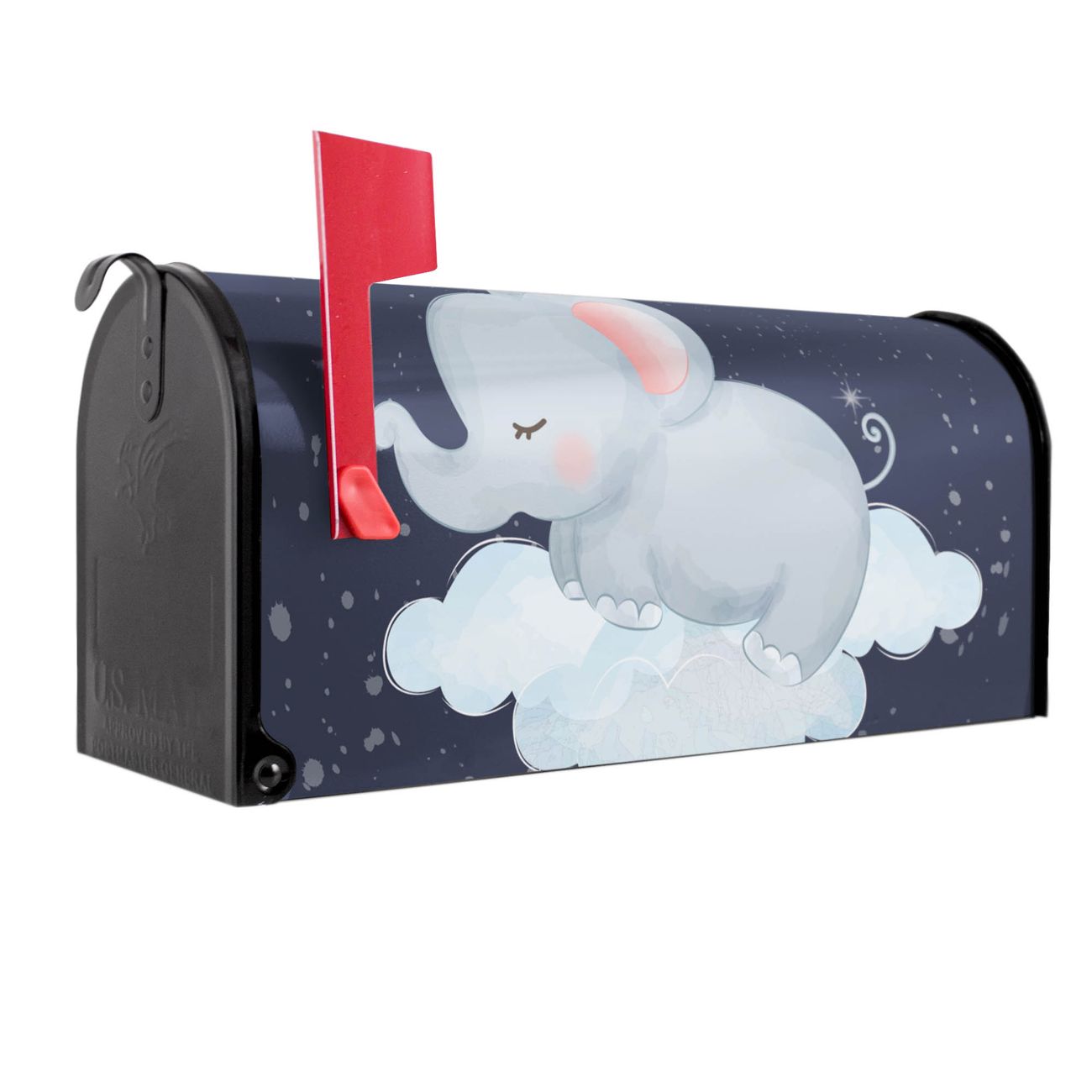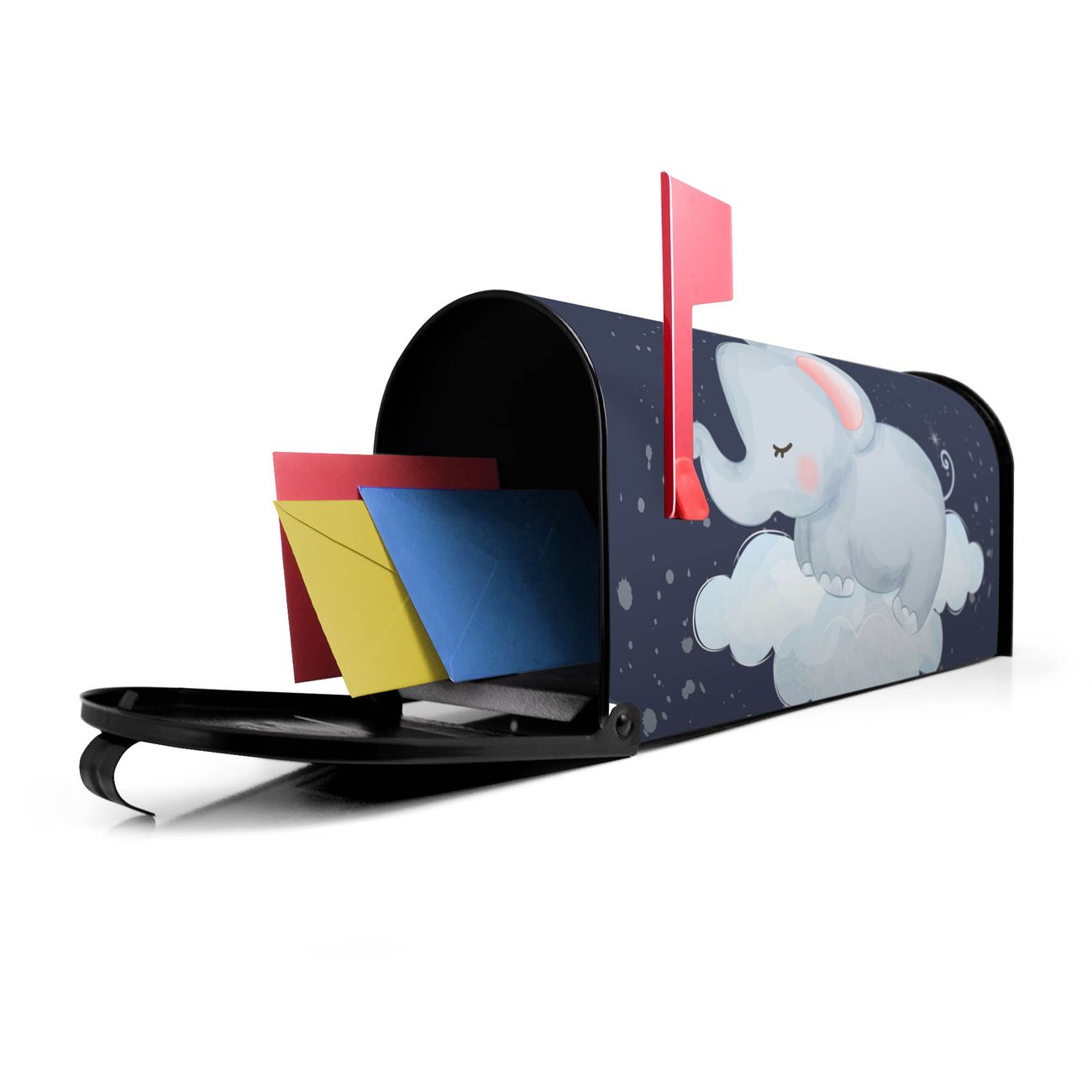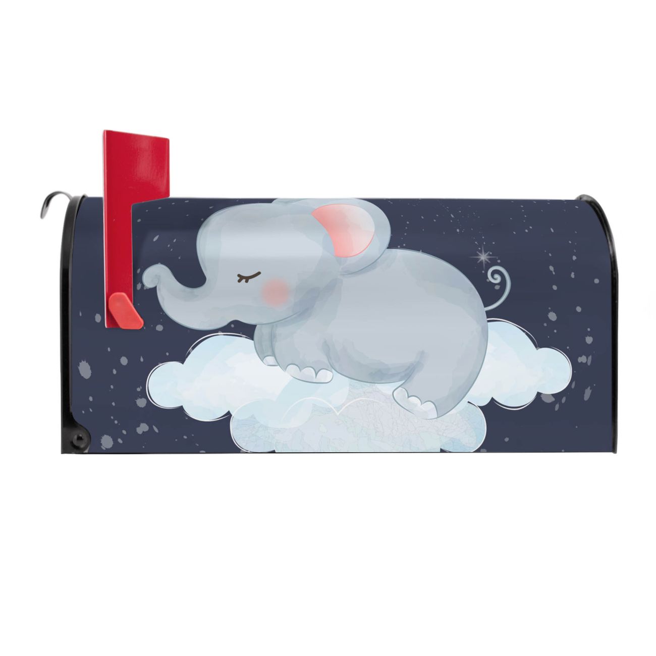 Der amerikanische Briefkasten von banjado mit schlafender Elefant Motiv bietet Ihnen ausreichend Fassungsvermögen, um große A4 Sendungen und Zeitschriften zu empfangen. Die typisch amerikanische rote Fahne zeigt Ihnen an, wenn Sie Post erhalten haben. Die US-Mailbox besteht aus verzinktem Stahlblech welches lackiert wurde und ist 48 x 22 x 16 CM (BxHxT) groß. Die Folie mit Motiv schlafender Elefant besteht aus einer wetter- und UV-resistenten Folie, die mit einem Schutzlaminat überzogen ist, sodass die US Mailbox zusätzlich vor Kratzern geschützt ist. An der Unterkante sind 4 Löcher je Seite um die Mailbox, typisch amerikanisch, an einem Holzpfahl oder einem Zaun zu befestigen. Auf Wunsch können Sie bei uns den passenden Standfuß oder die passende Wandhalterung kaufen um die US-Mailbox sicher zu befestigen. Wir bieten Ihnen ebenfalls Namensschilder, bereits beschriftet oder frei zu beschriften, und verschiedene selbst gestaltete Bitte-Keine-Werbung-Aufkleber.