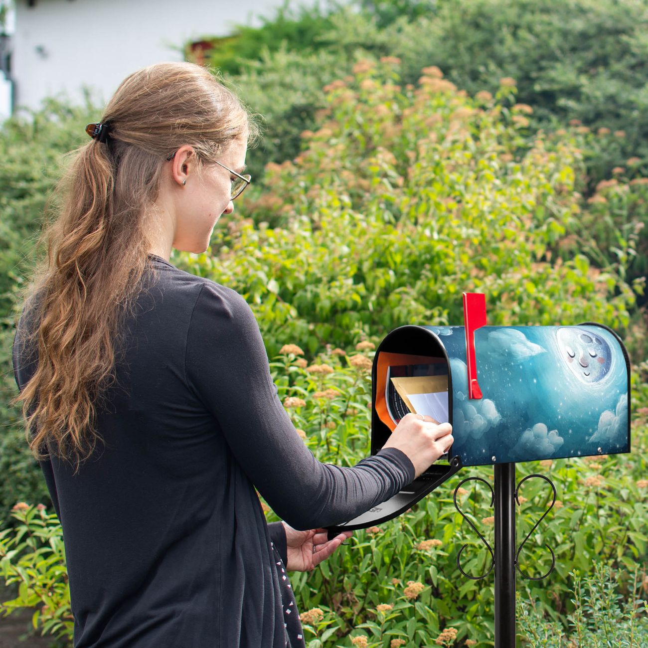 Unser amerikanischer Briefkasten mit dem Motiv schlafender Mond hat ein sehr ansprechendes und ausgefallenes Design, ist in der Grundfarbe weiß, grün oder schwarz erhältlich. Damit entlocken Sie Ihren Nachbarn und dem Postboten immer wieder ein Lächeln. Die Mailbox ist ein Original Import aus Mississippi USA und wird von unserer kleinen Manufaktur in Sachsen von Hand veredelt. Die US-Mailbox bietet ausreichend Platz auch für große Sendungen, eine Fahne die Ihnen Post anzeigt, wetterfestes und äußerst stabiles Material - so macht Post empfangen Freude.