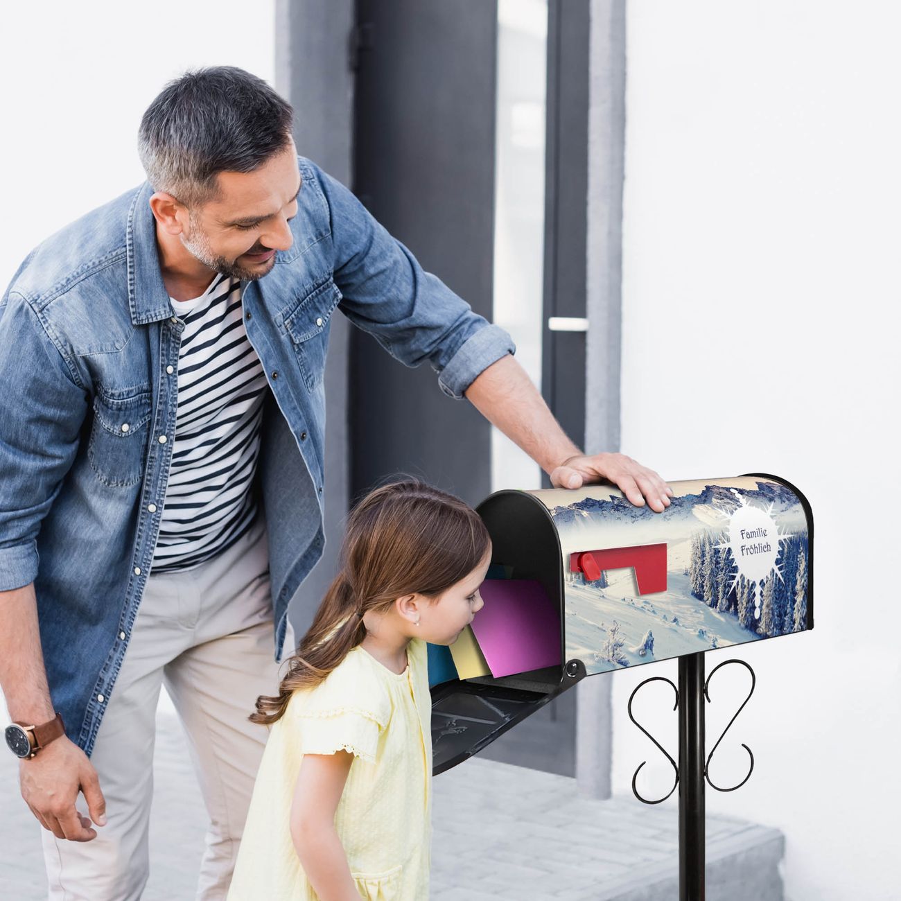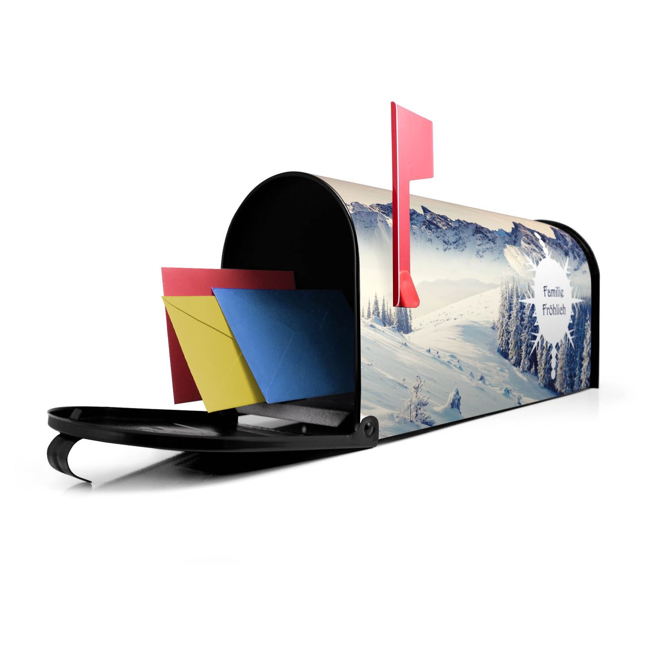 Unser amerikanischer Briefkasten mit dem Motiv Schneebedeckte Berge hat ein sehr ansprechendes und ausgefallenes Design, ist in der Grundfarbe weiß, grün oder schwarz erhältlich. Damit entlocken Sie Ihren Nachbarn und dem Postboten immer wieder ein Lächeln. Die Mailbox ist ein Original Import aus Mississippi USA und wird von unserer kleinen Manufaktur in Sachsen von Hand veredelt. Die US-Mailbox bietet ausreichend Platz auch für große Sendungen, eine Fahne die Ihnen Post anzeigt, wetterfestes und äußerst stabiles Material - so macht Post empfangen Freude.