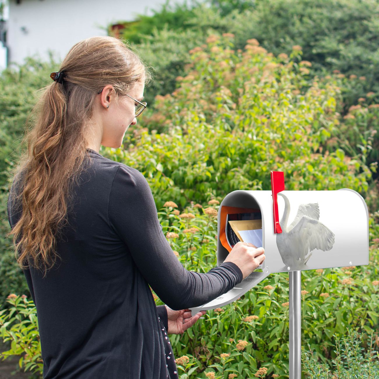 Unser amerikanischer Briefkasten mit dem Motiv Schwan hat ein sehr ansprechendes und ausgefallenes Design, ist in der Grundfarbe weiß, grün oder schwarz erhältlich. Damit entlocken Sie Ihren Nachbarn und dem Postboten immer wieder ein Lächeln. Die Mailbox ist ein Original Import aus Mississippi USA und wird von unserer kleinen Manufaktur in Sachsen von Hand veredelt. Die US-Mailbox bietet ausreichend Platz auch für große Sendungen, eine Fahne die Ihnen Post anzeigt, wetterfestes und äußerst stabiles Material - so macht Post empfangen Freude.