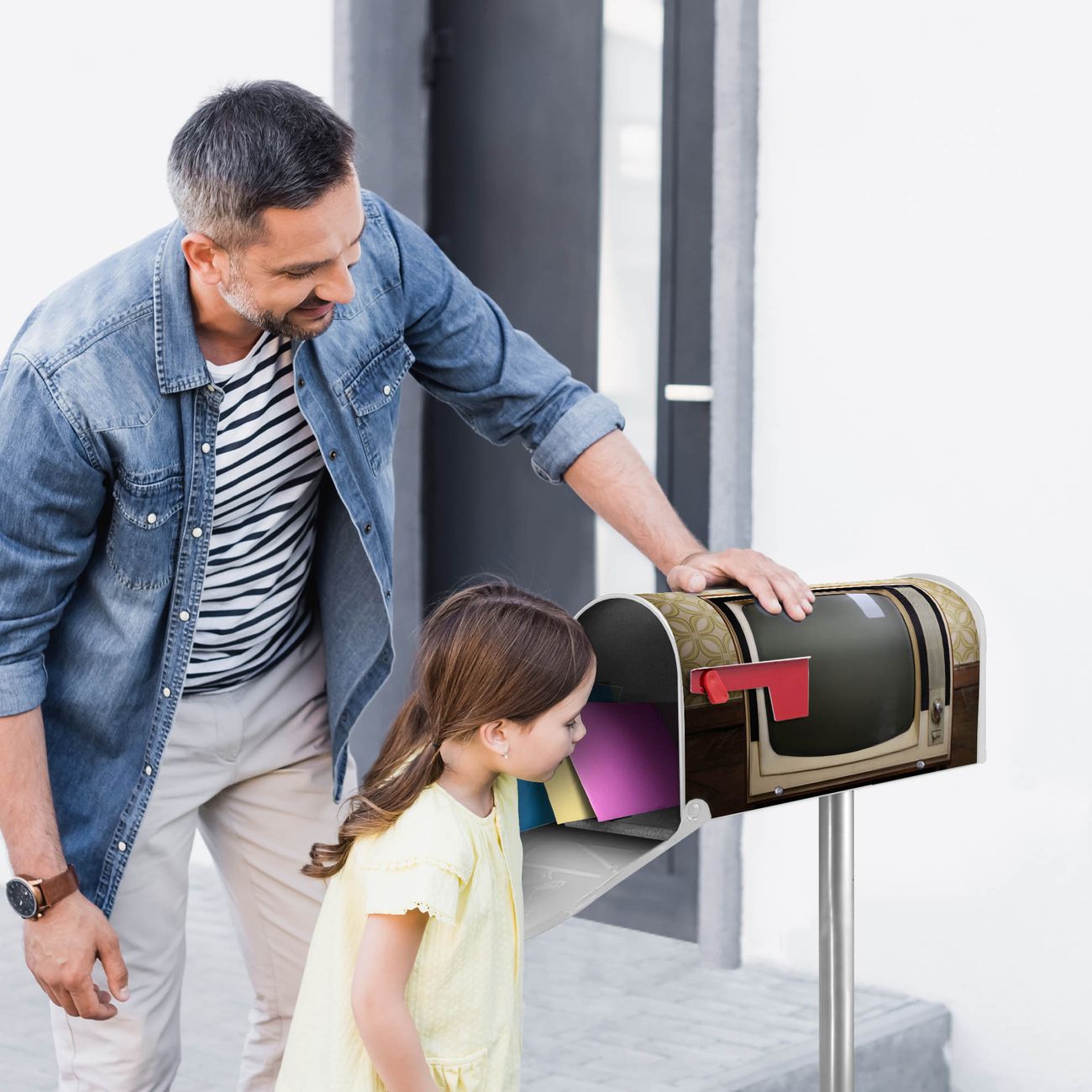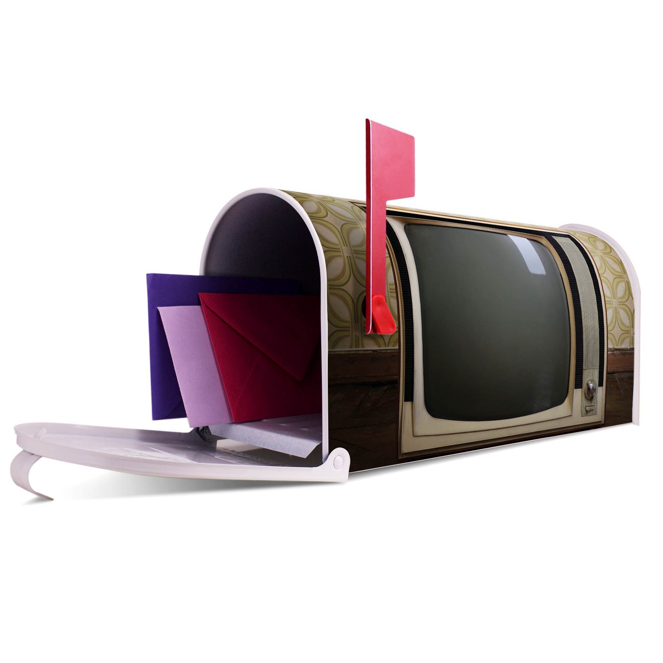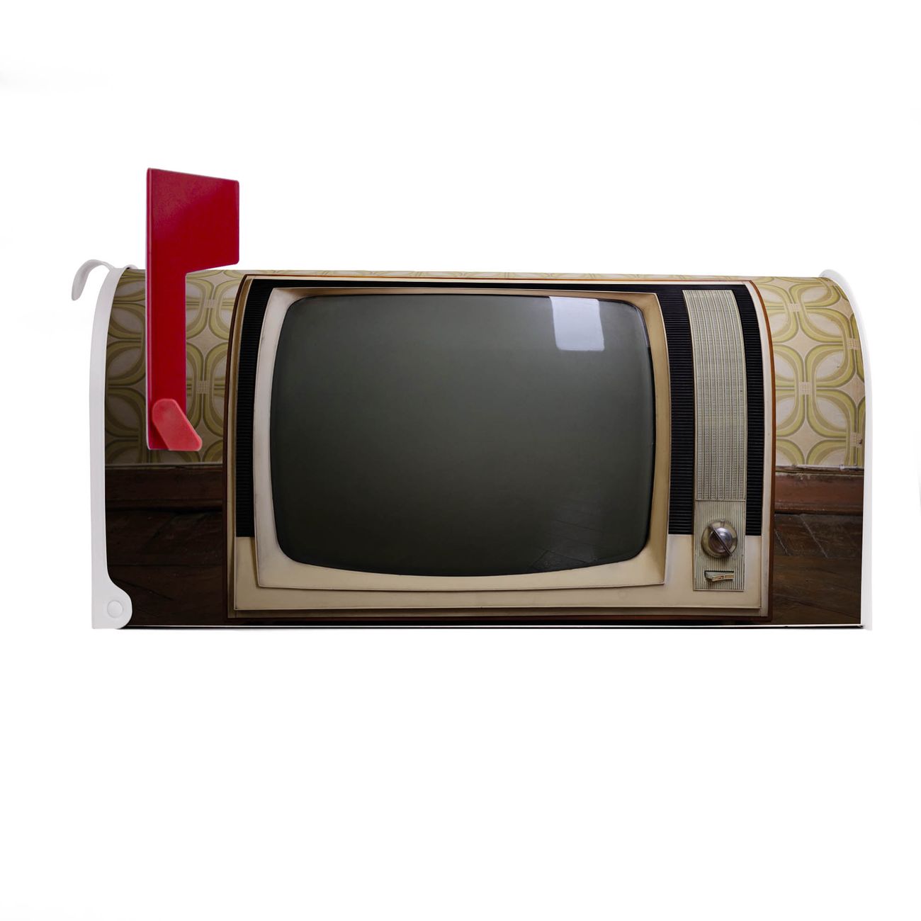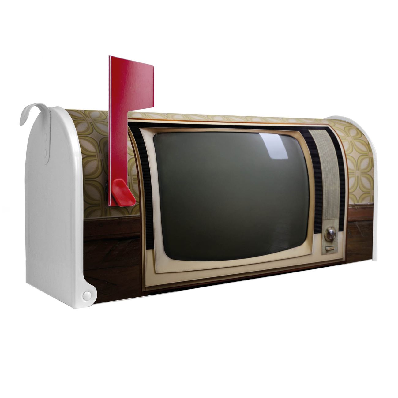 Unser amerikanischer Briefkasten mit dem Motiv Schwarzweiß TV hat ein sehr ansprechendes und ausgefallenes Design, ist in der Grundfarbe weiß, grün oder schwarz erhältlich. Damit entlocken Sie Ihren Nachbarn und dem Postboten immer wieder ein Lächeln. Die Mailbox ist ein Original Import aus Mississippi USA und wird von unserer kleinen Manufaktur in Sachsen von Hand veredelt. Die US-Mailbox bietet ausreichend Platz auch für große Sendungen, eine Fahne die Ihnen Post anzeigt, wetterfestes und äußerst stabiles Material - so macht Post empfangen Freude.