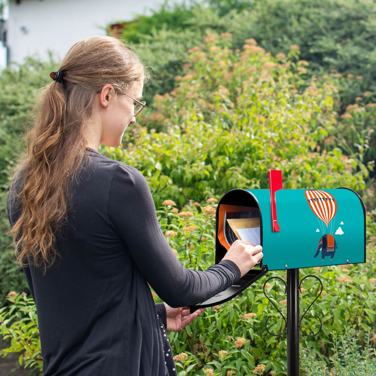 Unser amerikanischer Briefkasten mit dem Motiv Schwerelos hat ein sehr ansprechendes und ausgefallenes Design, ist in der Grundfarbe weiß, grün oder schwarz erhältlich. Damit entlocken Sie Ihren Nachbarn und dem Postboten immer wieder ein Lächeln. Die Mailbox ist ein Original Import aus Mississippi USA und wird von unserer kleinen Manufaktur in Sachsen von Hand veredelt. Die US-Mailbox bietet ausreichend Platz auch für große Sendungen, eine Fahne die Ihnen Post anzeigt, wetterfestes und äußerst stabiles Material - so macht Post empfangen Freude.