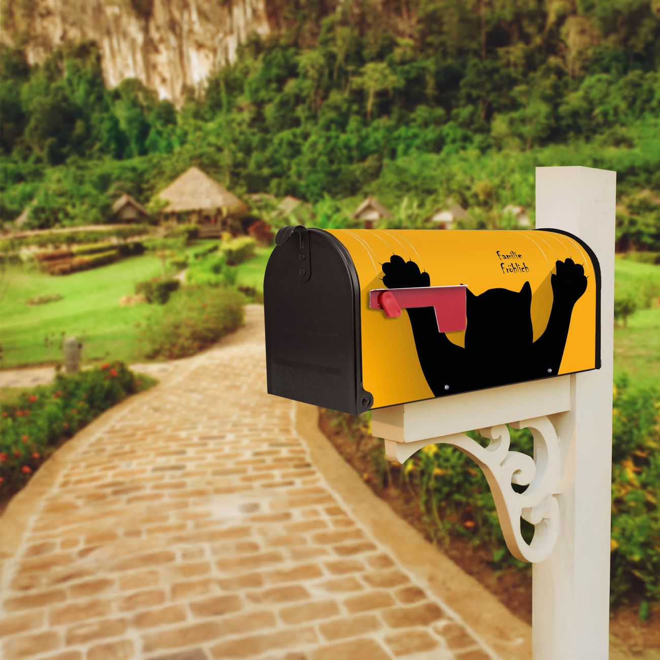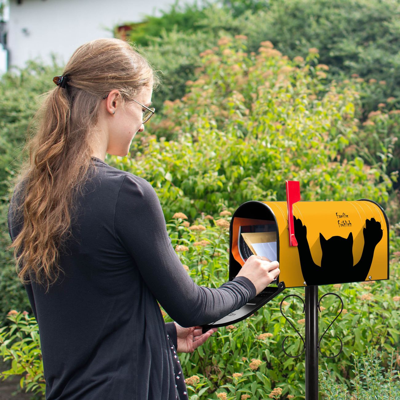 Der amerikanische Briefkasten von banjado mit WT Scratch Motiv bietet Ihnen ausreichend Fassungsvermögen, um große A4 Sendungen und Zeitschriften zu empfangen. Die typisch amerikanische rote Fahne zeigt Ihnen an, wenn Sie Post erhalten haben. Die US-Mailbox besteht aus verzinktem Stahlblech welches lackiert wurde und ist 48 x 22 x 16 CM (BxHxT) groß. Die Folie mit Motiv WT Scratch besteht aus einer wetter- und UV-resistenten Folie, die mit einem Schutzlaminat überzogen ist, sodass die US Mailbox zusätzlich vor Kratzern geschützt ist. An der Unterkante sind 4 Löcher je Seite um die Mailbox, typisch amerikanisch, an einem Holzpfahl oder einem Zaun zu befestigen. Auf Wunsch können Sie bei uns den passenden Standfuß oder die passende Wandhalterung kaufen um die US-Mailbox sicher zu befestigen. Wir bieten Ihnen ebenfalls Namensschilder, bereits beschriftet oder frei zu beschriften, und verschiedene selbst gestaltete Bitte-Keine-Werbung-Aufkleber.