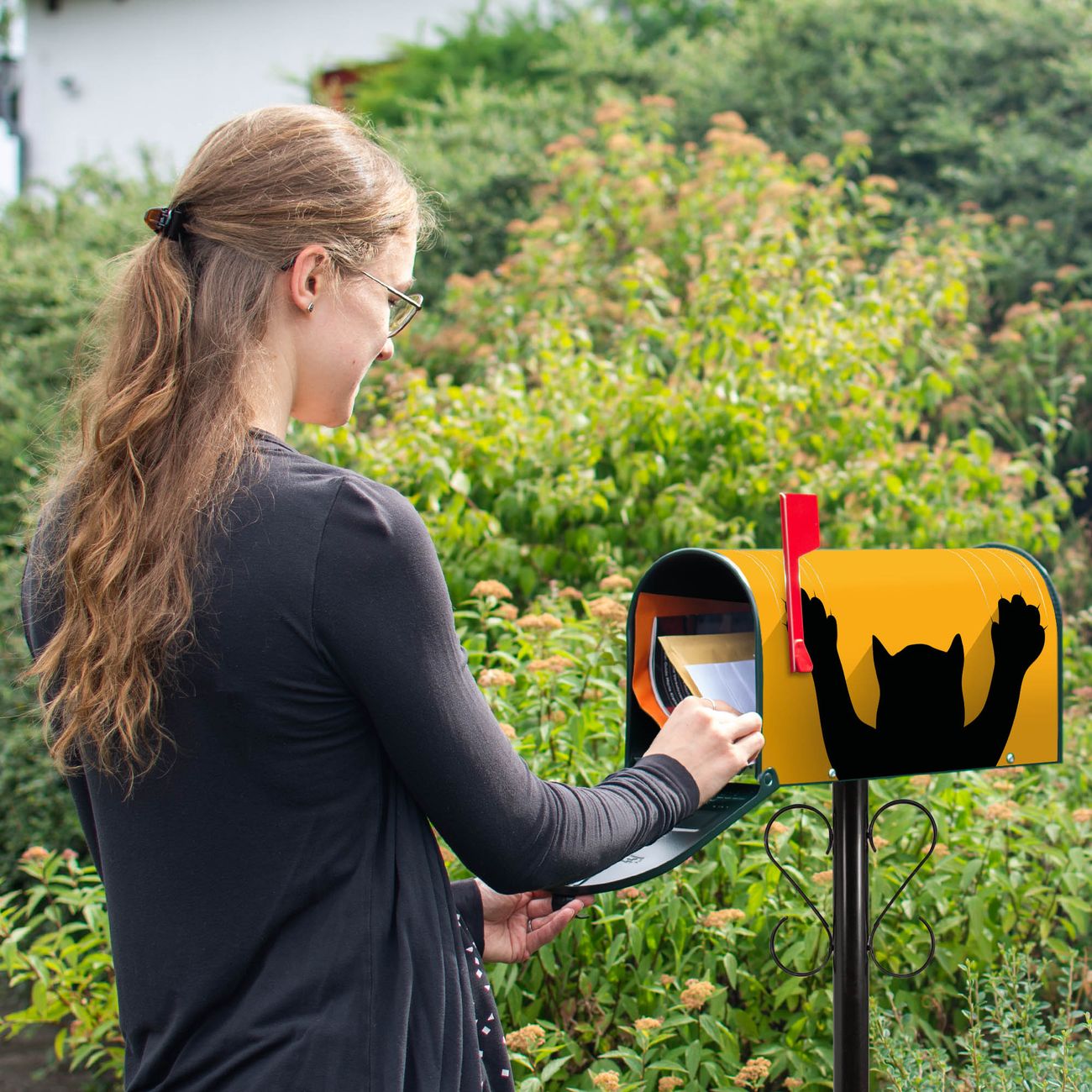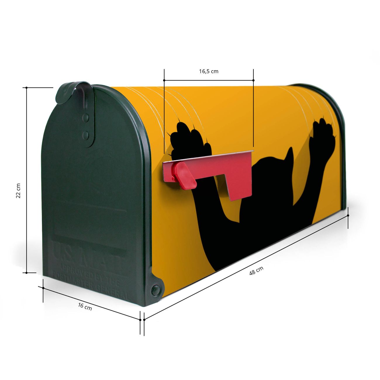 Der amerikanische Briefkasten von banjado mit Scratch Motiv bietet Ihnen ausreichend Fassungsvermögen, um große A4 Sendungen und Zeitschriften zu empfangen. Die typisch amerikanische rote Fahne zeigt Ihnen an, wenn Sie Post erhalten haben. Die US-Mailbox besteht aus verzinktem Stahlblech welches lackiert wurde und ist 48 x 22 x 16 CM (BxHxT) groß. Die Folie mit Motiv Scratch besteht aus einer wetter- und UV-resistenten Folie, die mit einem Schutzlaminat überzogen ist, sodass die US Mailbox zusätzlich vor Kratzern geschützt ist. An der Unterkante sind 4 Löcher je Seite um die Mailbox, typisch amerikanisch, an einem Holzpfahl oder einem Zaun zu befestigen. Auf Wunsch können Sie bei uns den passenden Standfuß oder die passende Wandhalterung kaufen um die US-Mailbox sicher zu befestigen. Wir bieten Ihnen ebenfalls Namensschilder, bereits beschriftet oder frei zu beschriften, und verschiedene selbst gestaltete Bitte-Keine-Werbung-Aufkleber.