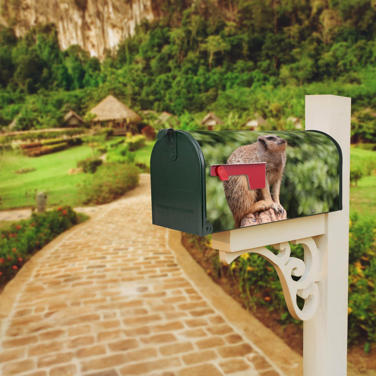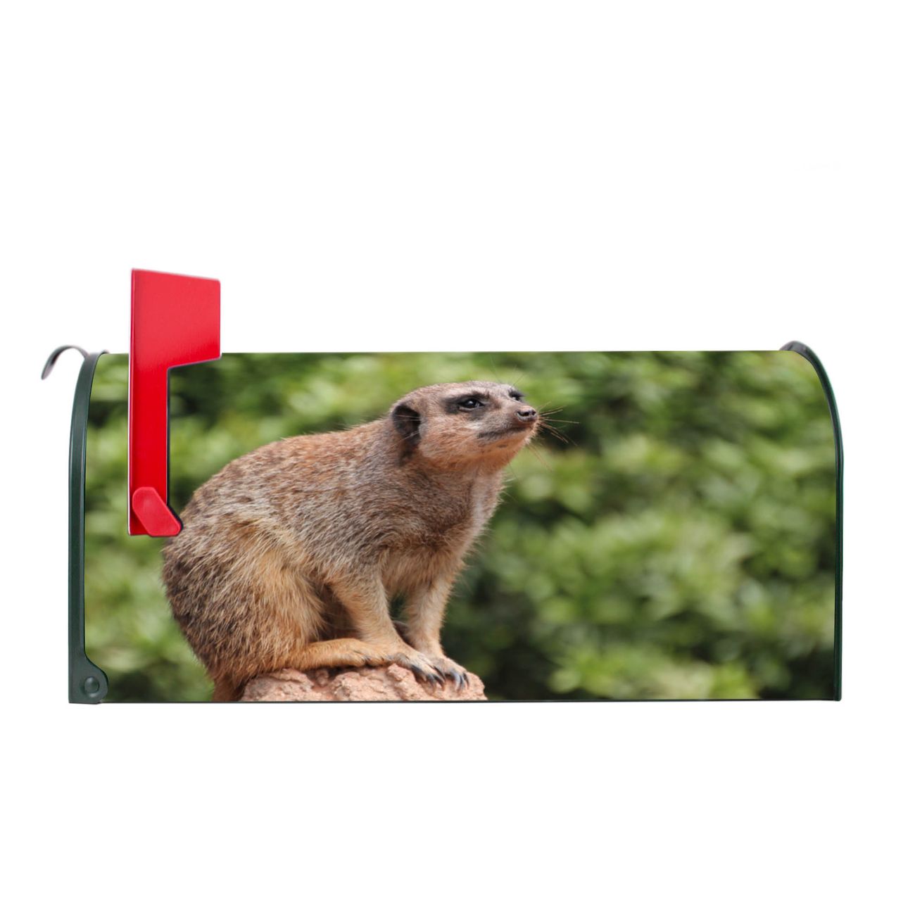 Unser amerikanischer Briefkasten mit dem Motiv Sitzendes Erdmännchen hat ein sehr ansprechendes und ausgefallenes Design, ist in der Grundfarbe weiß, grün oder schwarz erhältlich. Damit entlocken Sie Ihren Nachbarn und dem Postboten immer wieder ein Lächeln. Die Mailbox ist ein Original Import aus Mississippi USA und wird von unserer kleinen Manufaktur in Sachsen von Hand veredelt. Die US-Mailbox bietet ausreichend Platz auch für große Sendungen, eine Fahne die Ihnen Post anzeigt, wetterfestes und äußerst stabiles Material - so macht Post empfangen Freude.