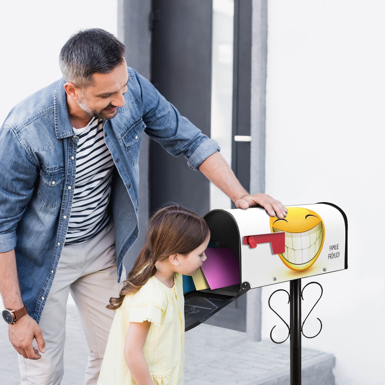 Unser amerikanischer Briefkasten mit dem Motiv Smile hat ein sehr ansprechendes und ausgefallenes Design, ist in der Grundfarbe weiß, grün oder schwarz erhältlich. Damit entlocken Sie Ihren Nachbarn und dem Postboten immer wieder ein Lächeln. Die Mailbox ist ein Original Import aus Mississippi USA und wird von unserer kleinen Manufaktur in Sachsen von Hand veredelt. Die US-Mailbox bietet ausreichend Platz auch für große Sendungen, eine Fahne die Ihnen Post anzeigt, wetterfestes und äußerst stabiles Material - so macht Post empfangen Freude.