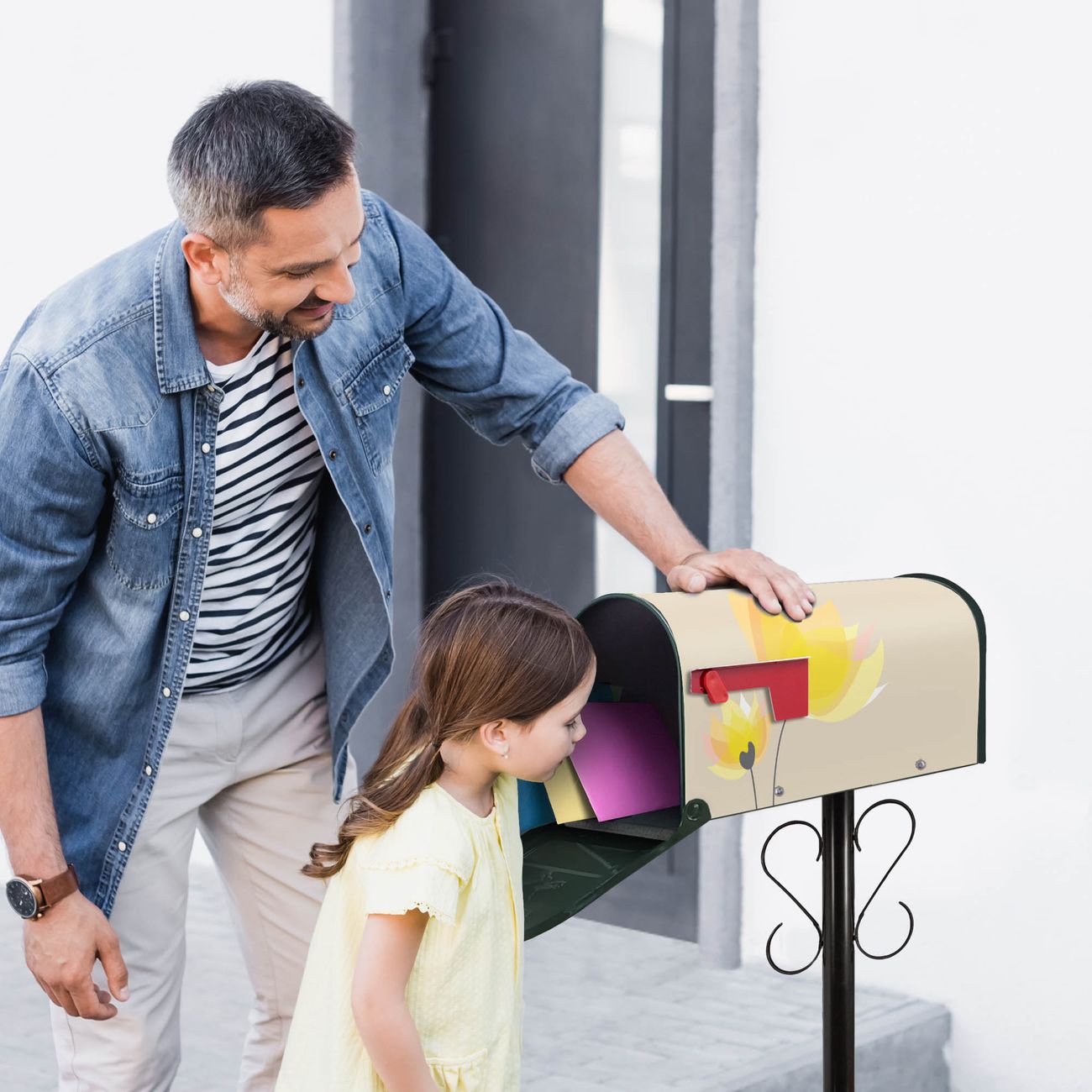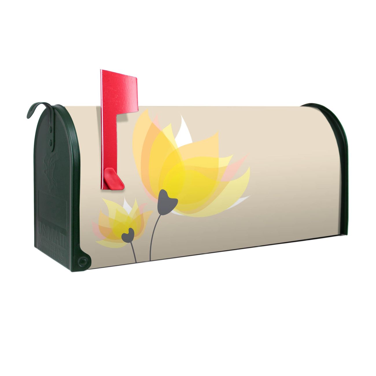 Der amerikanische Briefkasten von banjado mit Sommerblüten Motiv bietet Ihnen ausreichend Fassungsvermögen, um große A4 Sendungen und Zeitschriften zu empfangen. Die typisch amerikanische rote Fahne zeigt Ihnen an, wenn Sie Post erhalten haben. Die US-Mailbox besteht aus verzinktem Stahlblech welches lackiert wurde und ist 48 x 22 x 16 CM (BxHxT) groß. Die Folie mit Motiv Sommerblüten besteht aus einer wetter- und UV-resistenten Folie, die mit einem Schutzlaminat überzogen ist, sodass die US Mailbox zusätzlich vor Kratzern geschützt ist. An der Unterkante sind 4 Löcher je Seite um die Mailbox, typisch amerikanisch, an einem Holzpfahl oder einem Zaun zu befestigen. Auf Wunsch können Sie bei uns den passenden Standfuß oder die passende Wandhalterung kaufen um die US-Mailbox sicher zu befestigen. Wir bieten Ihnen ebenfalls Namensschilder, bereits beschriftet oder frei zu beschriften, und verschiedene selbst gestaltete Bitte-Keine-Werbung-Aufkleber.