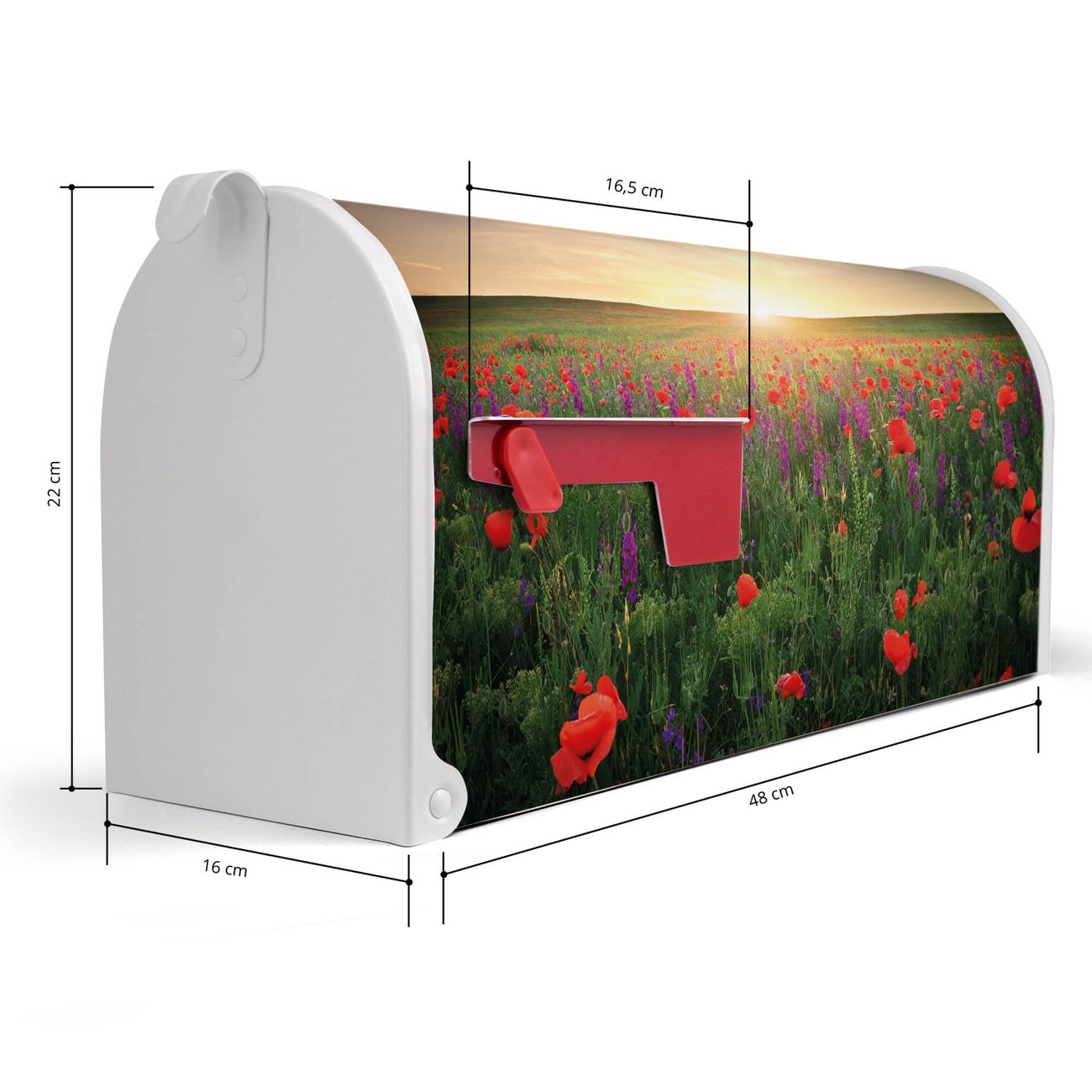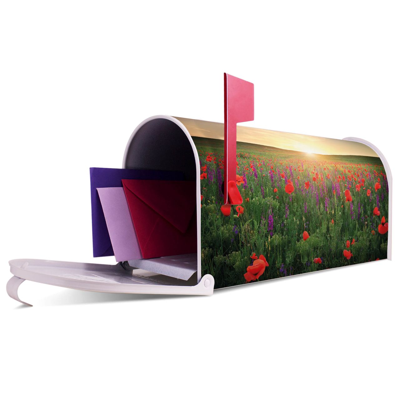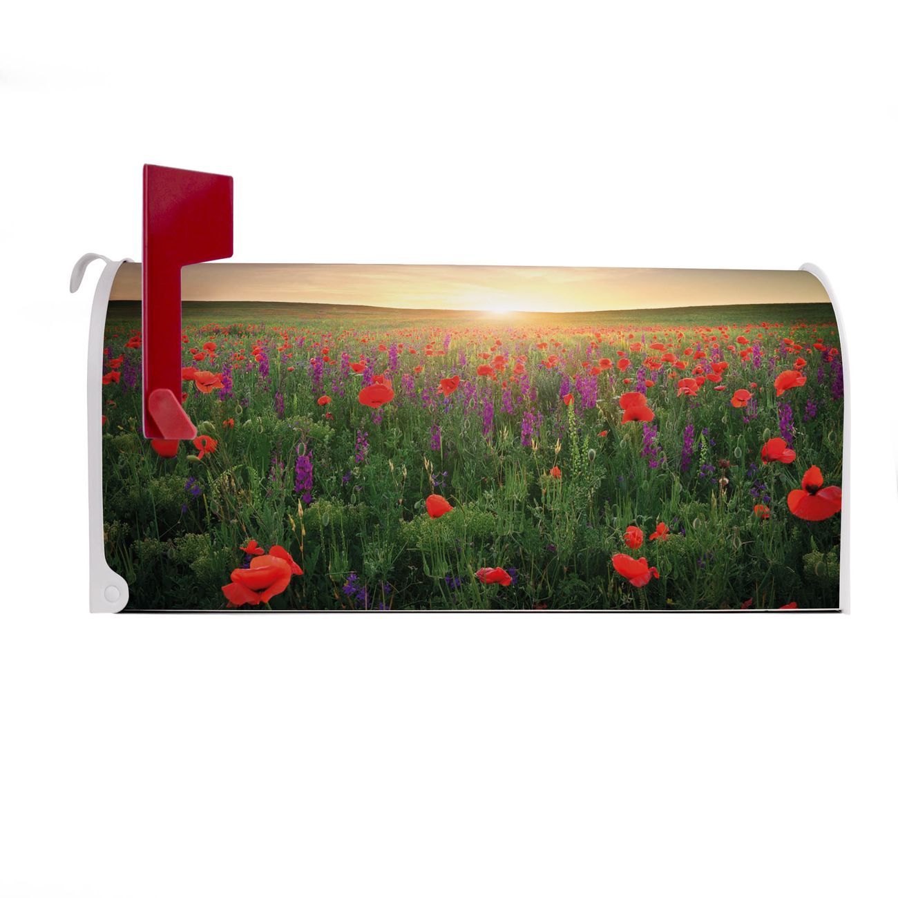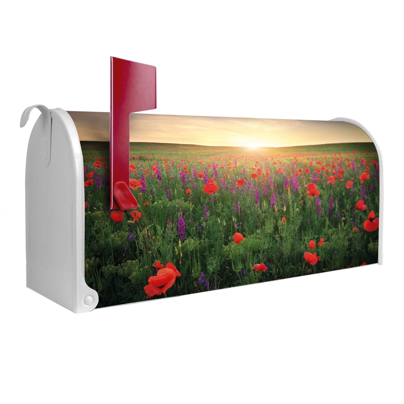 Unser amerikanischer Briefkasten mit dem Motiv Sommerfeld hat ein sehr ansprechendes und ausgefallenes Design, ist in der Grundfarbe weiß, grün oder schwarz erhältlich. Damit entlocken Sie Ihren Nachbarn und dem Postboten immer wieder ein Lächeln. Die Mailbox ist ein Original Import aus Mississippi USA und wird von unserer kleinen Manufaktur in Sachsen von Hand veredelt. Die US-Mailbox bietet ausreichend Platz auch für große Sendungen, eine Fahne die Ihnen Post anzeigt, wetterfestes und äußerst stabiles Material - so macht Post empfangen Freude.