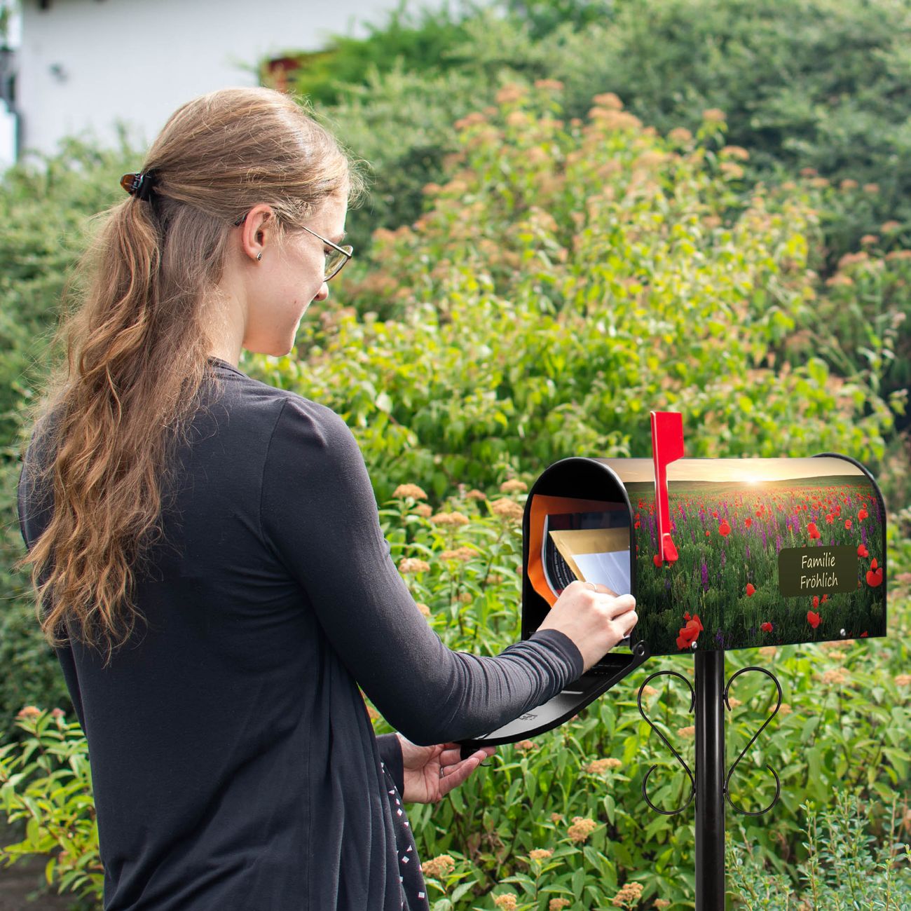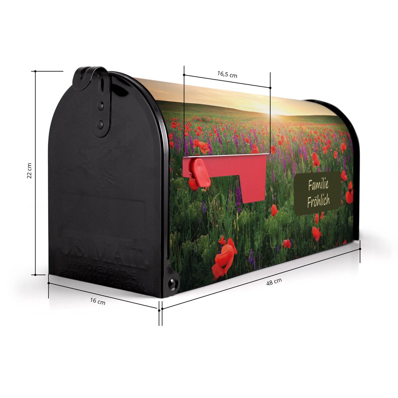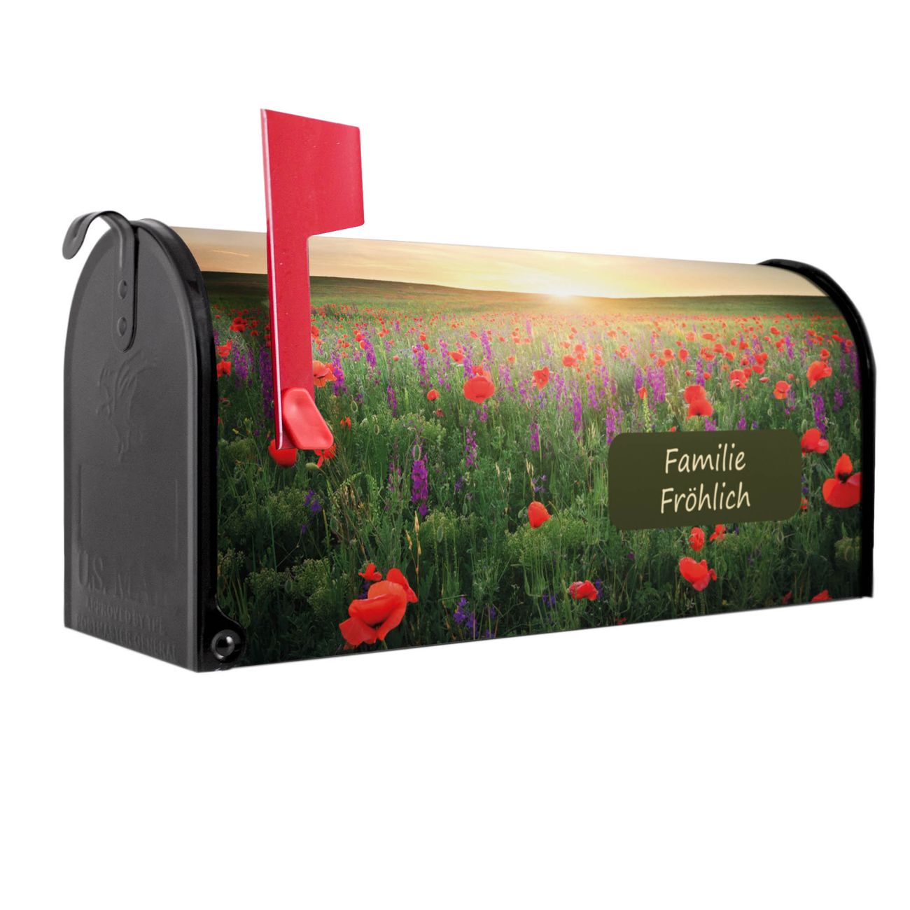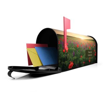 Unser amerikanischer Briefkasten mit dem Motiv Sommerfeld hat ein sehr ansprechendes und ausgefallenes Design, ist in der Grundfarbe weiß, grün oder schwarz erhältlich. Damit entlocken Sie Ihren Nachbarn und dem Postboten immer wieder ein Lächeln. Die Mailbox ist ein Original Import aus Mississippi USA und wird von unserer kleinen Manufaktur in Sachsen von Hand veredelt. Die US-Mailbox bietet ausreichend Platz auch für große Sendungen, eine Fahne die Ihnen Post anzeigt, wetterfestes und äußerst stabiles Material - so macht Post empfangen Freude.