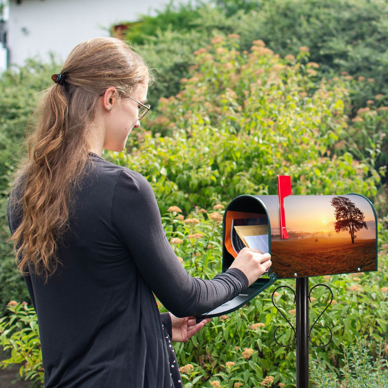 Unser amerikanischer Briefkasten mit dem Motiv Sonnenaufgang hat ein sehr ansprechendes und ausgefallenes Design, ist in der Grundfarbe weiß, grün oder schwarz erhältlich. Damit entlocken Sie Ihren Nachbarn und dem Postboten immer wieder ein Lächeln. Die Mailbox ist ein Original Import aus Mississippi USA und wird von unserer kleinen Manufaktur in Sachsen von Hand veredelt. Die US-Mailbox bietet ausreichend Platz auch für große Sendungen, eine Fahne die Ihnen Post anzeigt, wetterfestes und äußerst stabiles Material - so macht Post empfangen Freude.