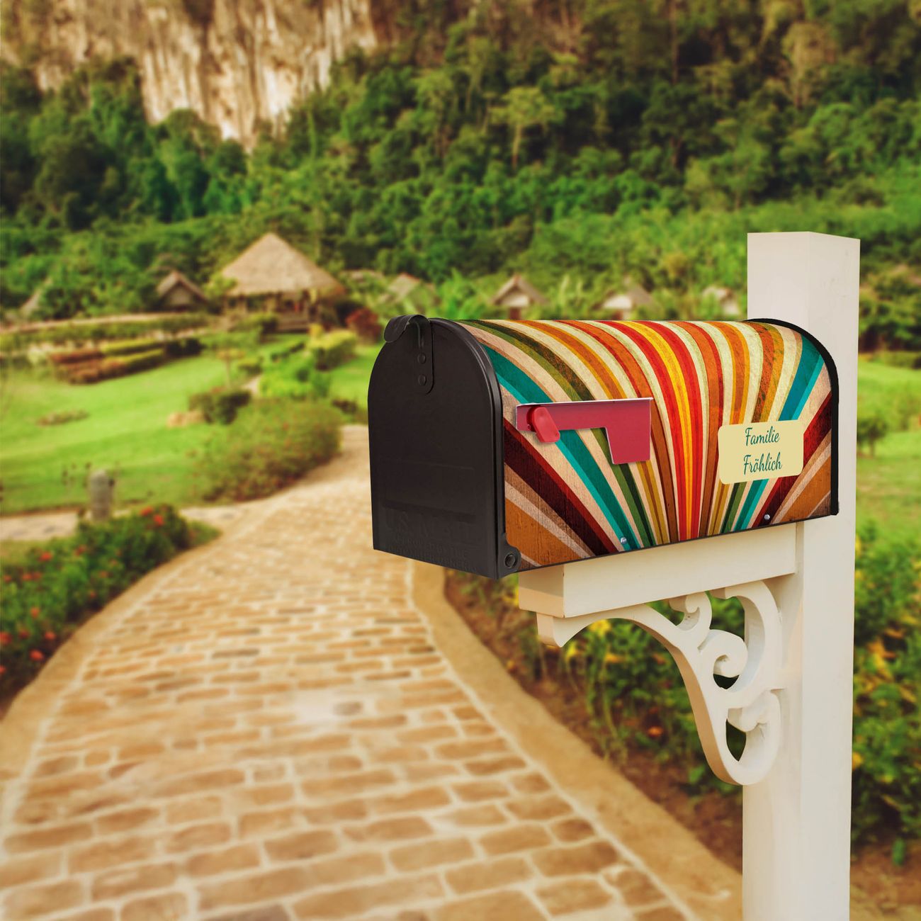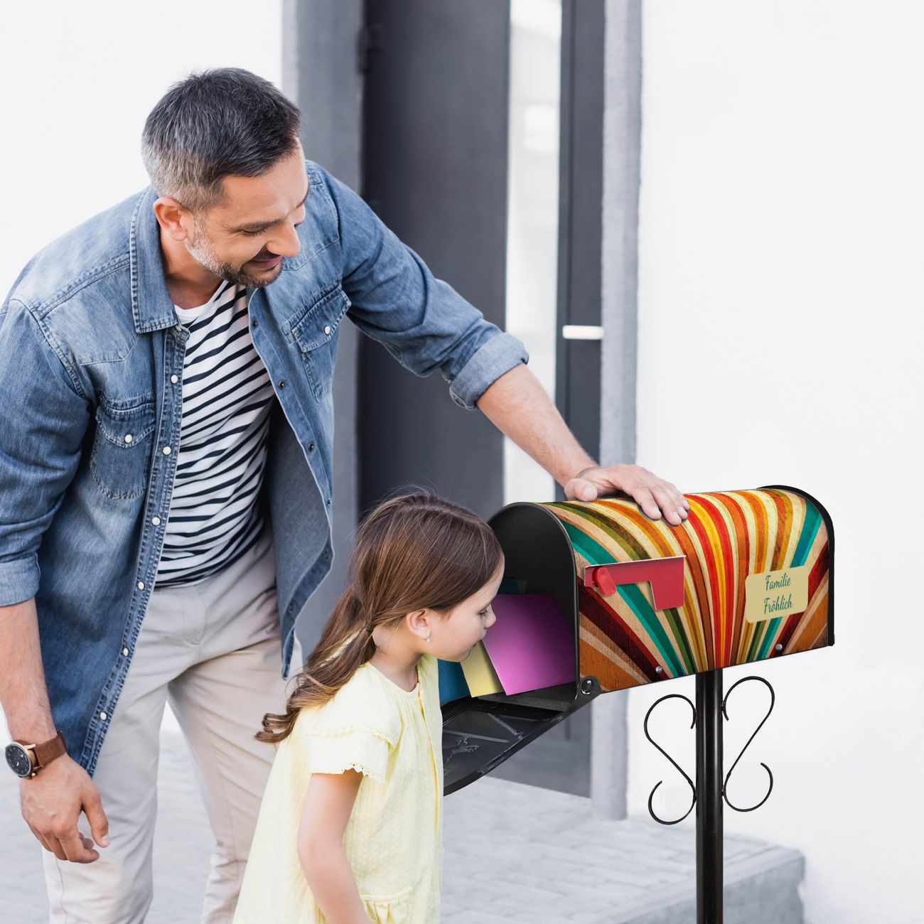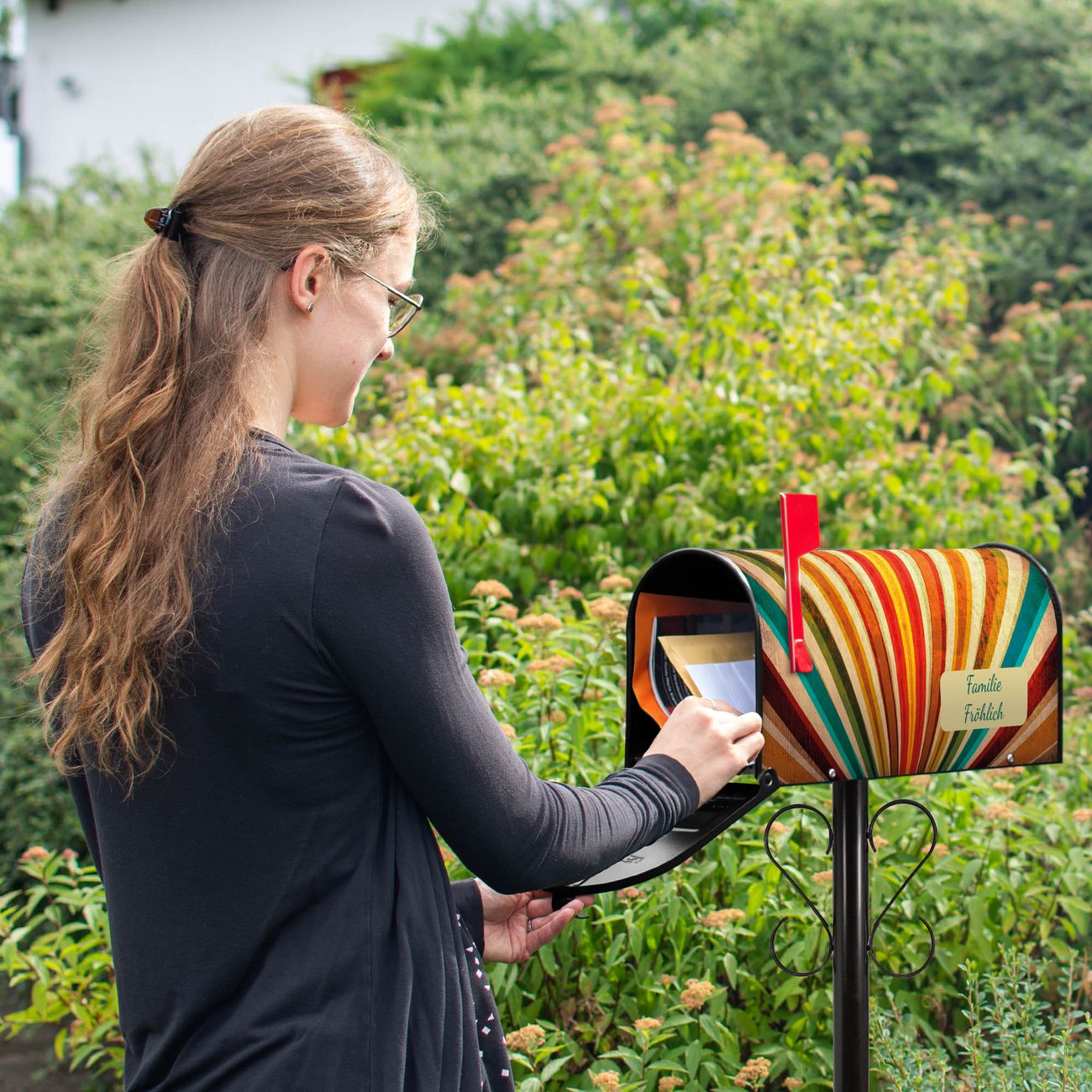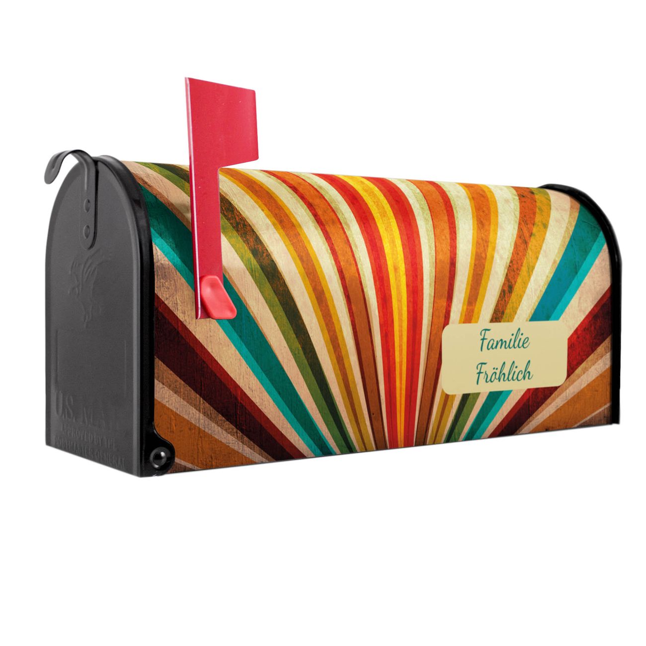 Der amerikanische Briefkasten von banjado mit Sonnenuntergang Abstrakt Motiv bietet Ihnen ausreichend Fassungsvermögen, um große A4 Sendungen und Zeitschriften zu empfangen. Die typisch amerikanische rote Fahne zeigt Ihnen an, wenn Sie Post erhalten haben. Die US-Mailbox besteht aus verzinktem Stahlblech welches lackiert wurde und ist 48 x 22 x 16 CM (BxHxT) groß. Die Folie mit Motiv Sonnenuntergang Abstrakt besteht aus einer wetter- und UV-resistenten Folie, die mit einem Schutzlaminat überzogen ist, sodass die US Mailbox zusätzlich vor Kratzern geschützt ist. An der Unterkante sind 4 Löcher je Seite um die Mailbox, typisch amerikanisch, an einem Holzpfahl oder einem Zaun zu befestigen. Auf Wunsch können Sie bei uns den passenden Standfuß oder die passende Wandhalterung kaufen um die US-Mailbox sicher zu befestigen. Wir bieten Ihnen ebenfalls Namensschilder, bereits beschriftet oder frei zu beschriften, und verschiedene selbst gestaltete Bitte-Keine-Werbung-Aufkleber.