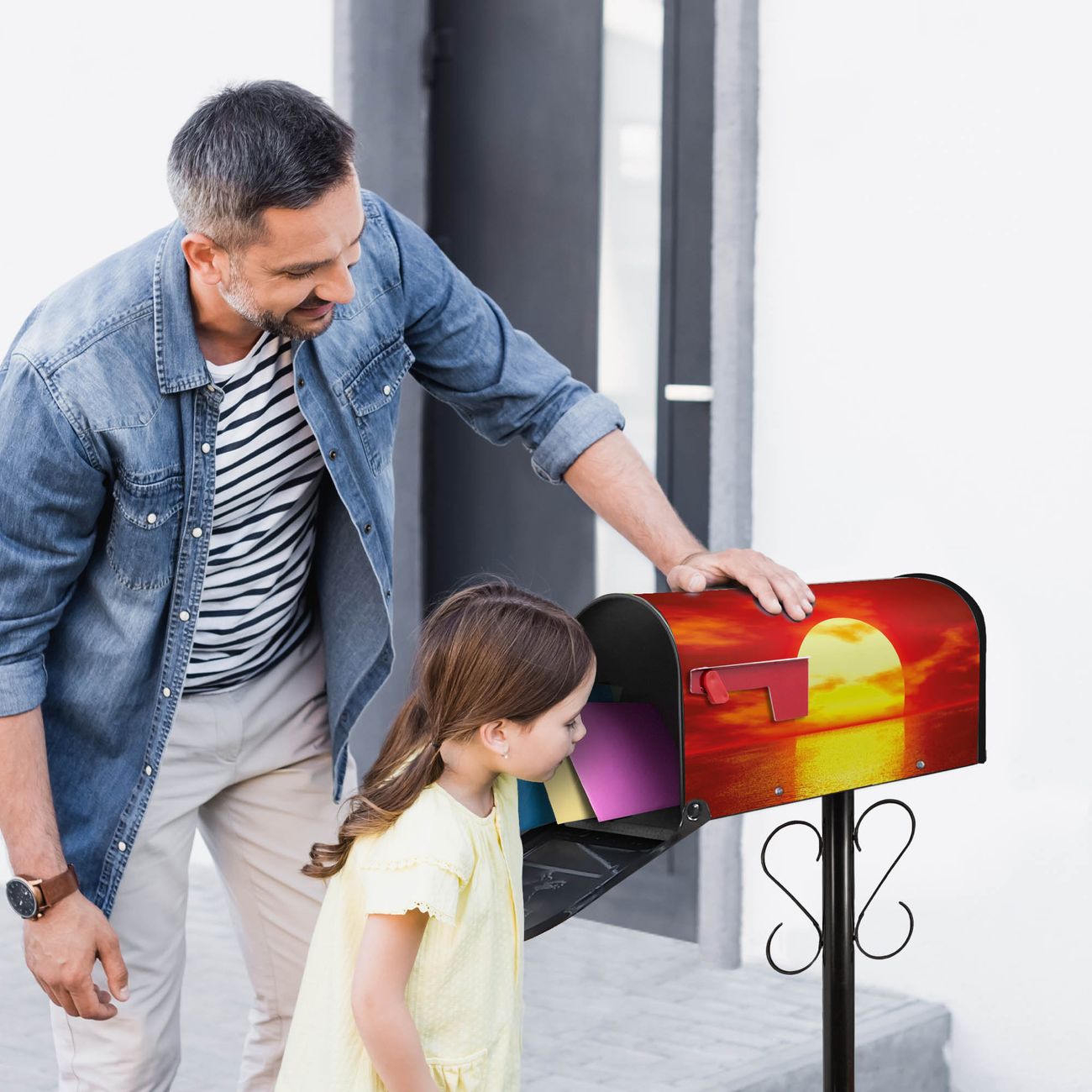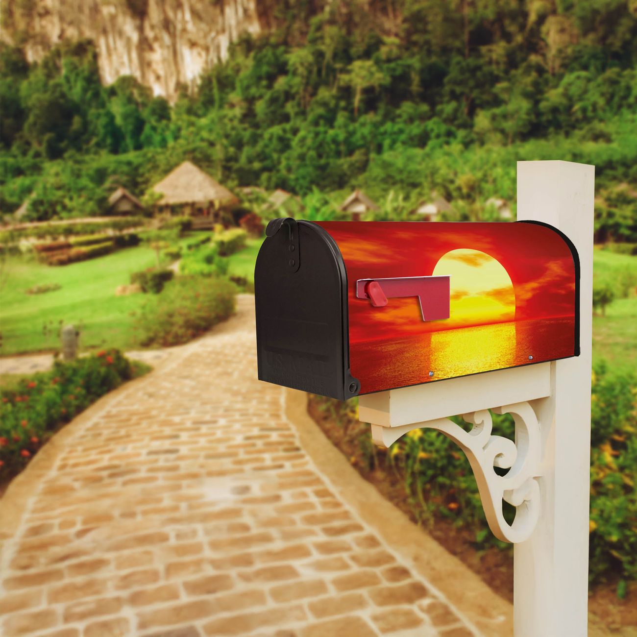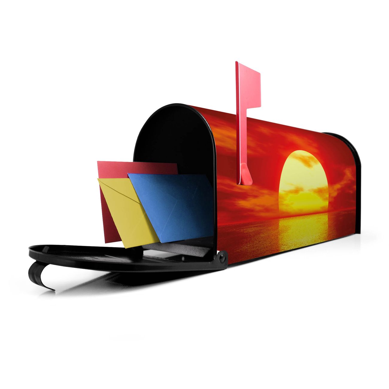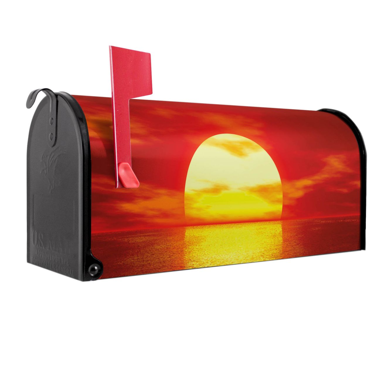 Unser amerikanischer Briefkasten mit dem Motiv Sonnenuntergang hat ein sehr ansprechendes und ausgefallenes Design, ist in der Grundfarbe weiß, grün oder schwarz erhältlich. Damit entlocken Sie Ihren Nachbarn und dem Postboten immer wieder ein Lächeln. Die Mailbox ist ein Original Import aus Mississippi USA und wird von unserer kleinen Manufaktur in Sachsen von Hand veredelt. Die US-Mailbox bietet ausreichend Platz auch für große Sendungen, eine Fahne die Ihnen Post anzeigt, wetterfestes und äußerst stabiles Material - so macht Post empfangen Freude.