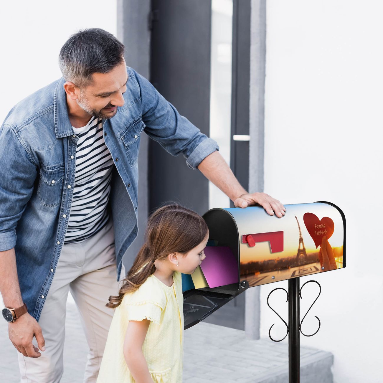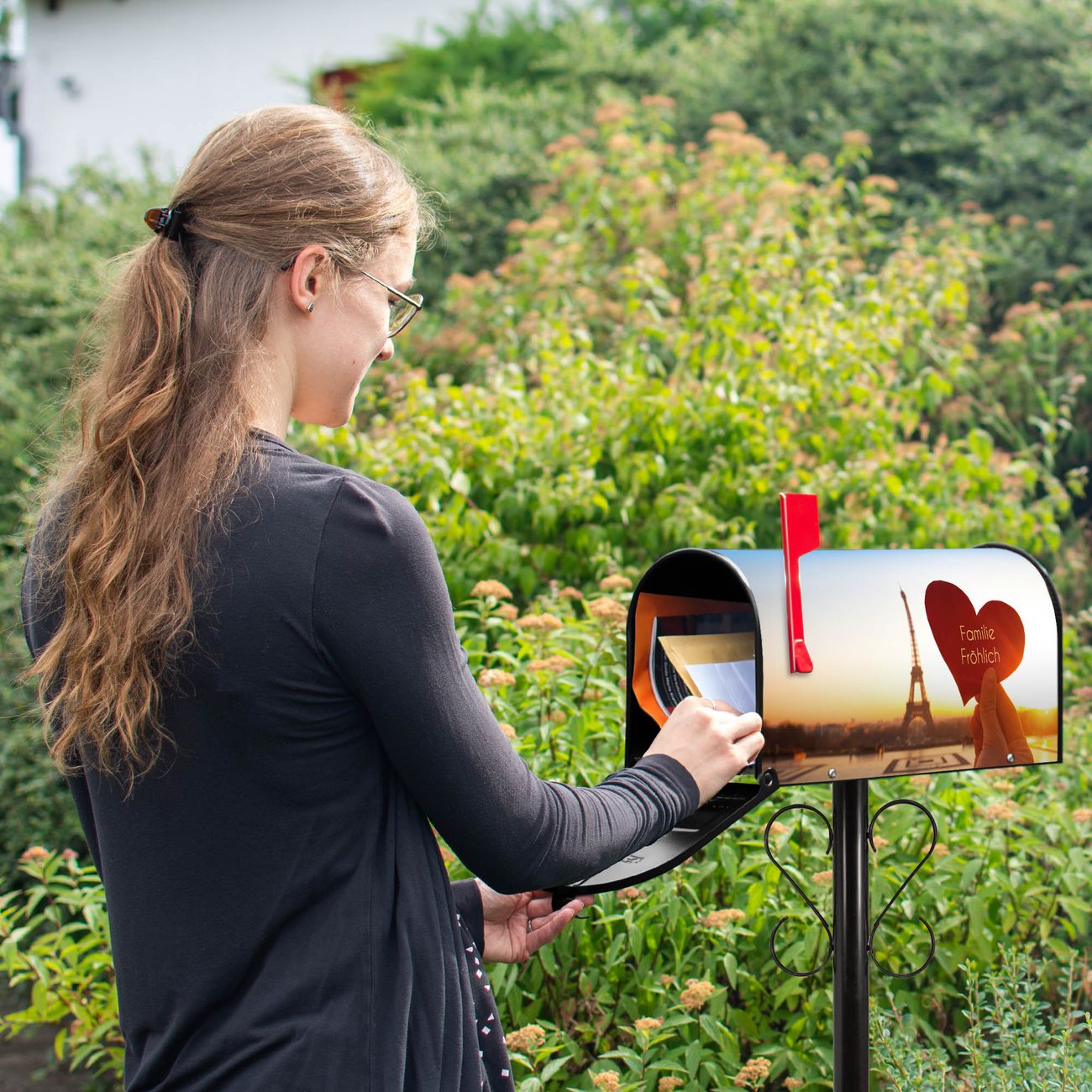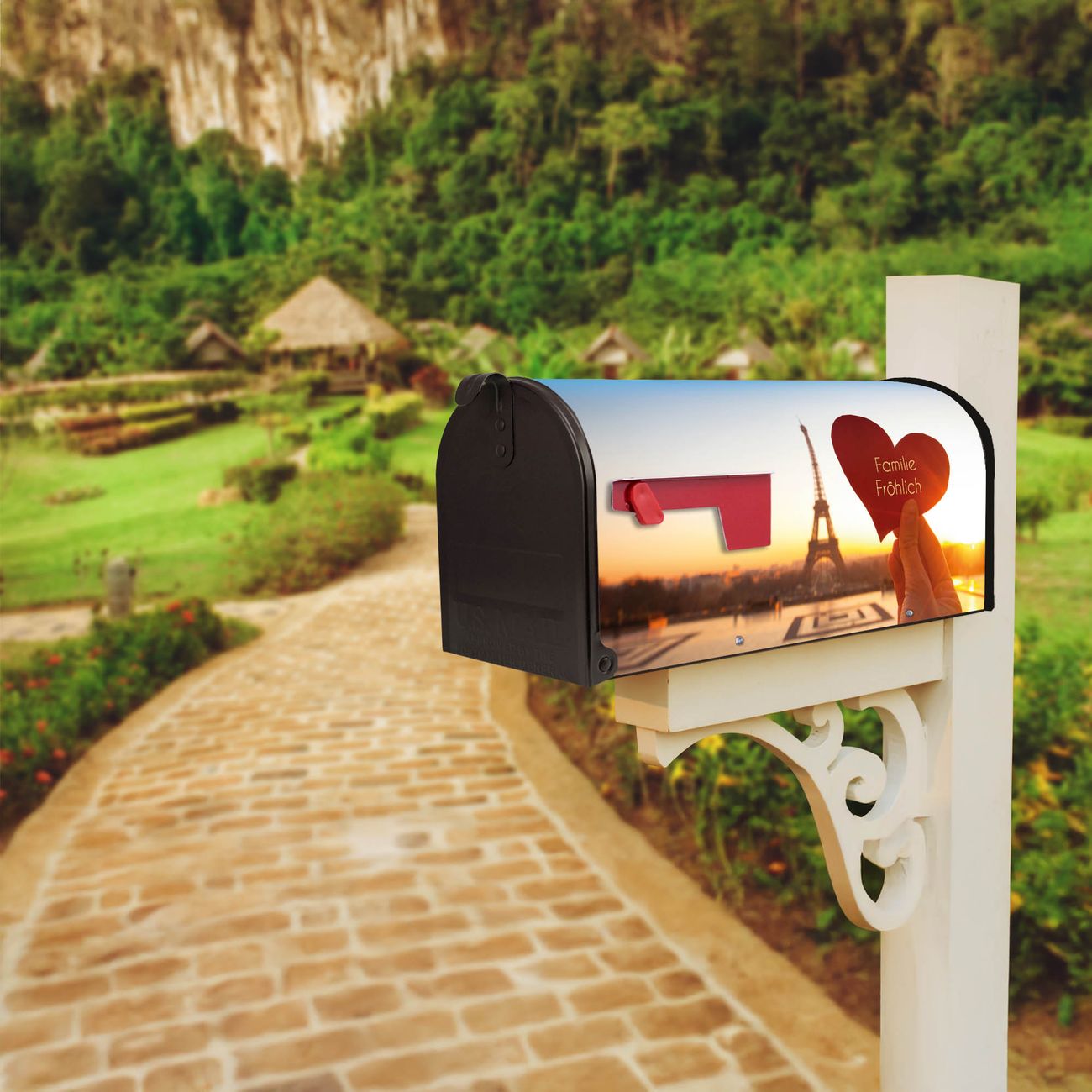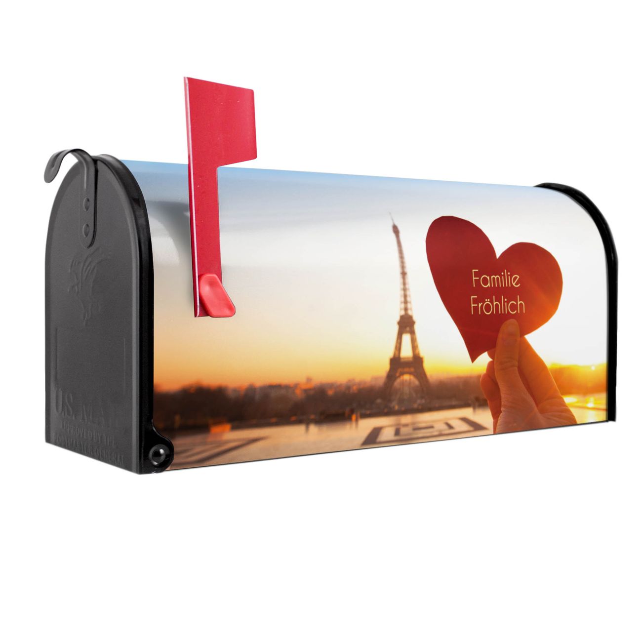 Unser amerikanischer Briefkasten mit dem Motiv Stadt Der Liebe hat ein sehr ansprechendes und ausgefallenes Design, ist in der Grundfarbe weiß, grün oder schwarz erhältlich. Damit entlocken Sie Ihren Nachbarn und dem Postboten immer wieder ein Lächeln. Die Mailbox ist ein Original Import aus Mississippi USA und wird von unserer kleinen Manufaktur in Sachsen von Hand veredelt. Die US-Mailbox bietet ausreichend Platz auch für große Sendungen, eine Fahne die Ihnen Post anzeigt, wetterfestes und äußerst stabiles Material - so macht Post empfangen Freude.