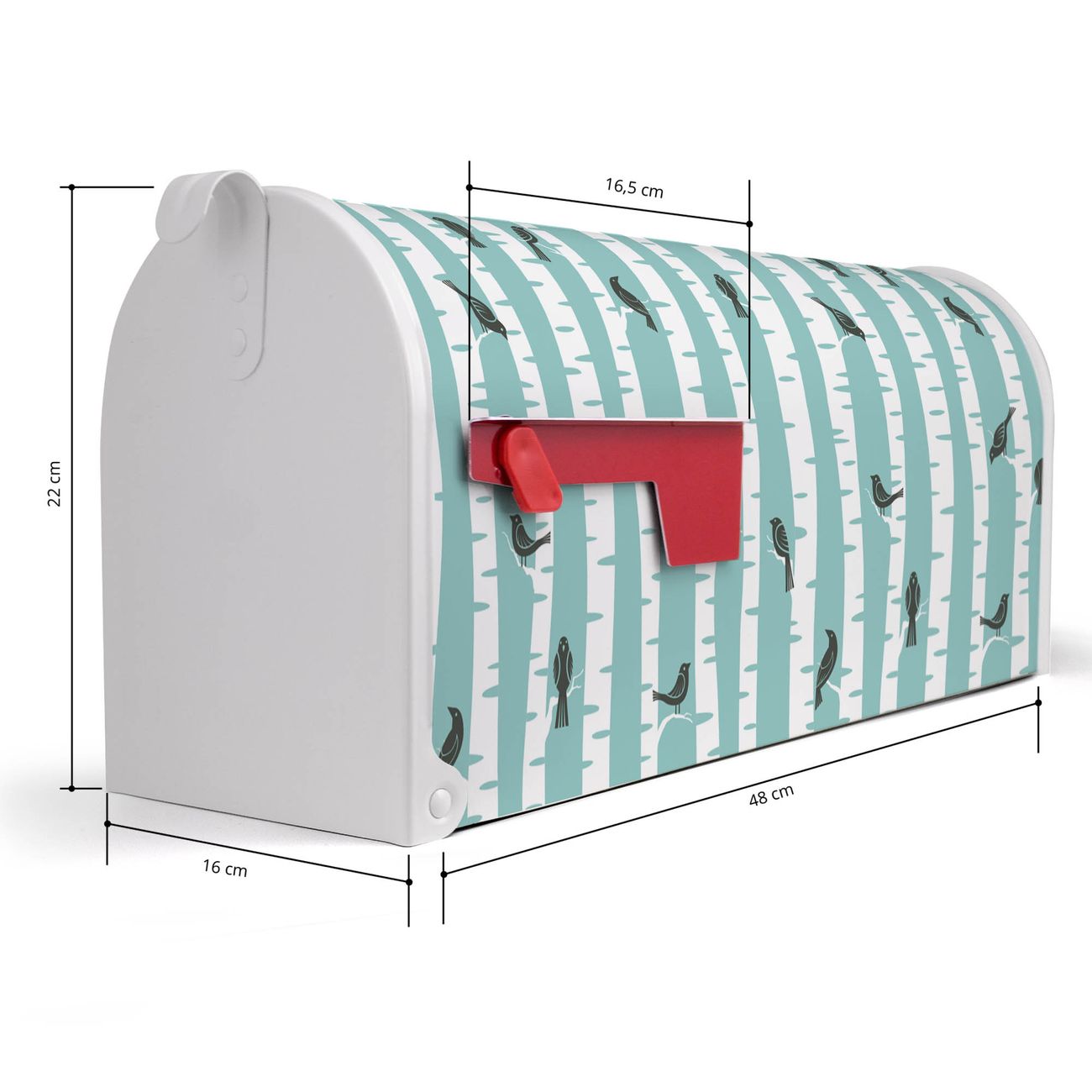 Unser amerikanischer Briefkasten mit dem Motiv Stare Und Birken hat ein sehr ansprechendes und ausgefallenes Design, ist in der Grundfarbe weiß, grün oder schwarz erhältlich. Damit entlocken Sie Ihren Nachbarn und dem Postboten immer wieder ein Lächeln. Die Mailbox ist ein Original Import aus Mississippi USA und wird von unserer kleinen Manufaktur in Sachsen von Hand veredelt. Die US-Mailbox bietet ausreichend Platz auch für große Sendungen, eine Fahne die Ihnen Post anzeigt, wetterfestes und äußerst stabiles Material - so macht Post empfangen Freude.