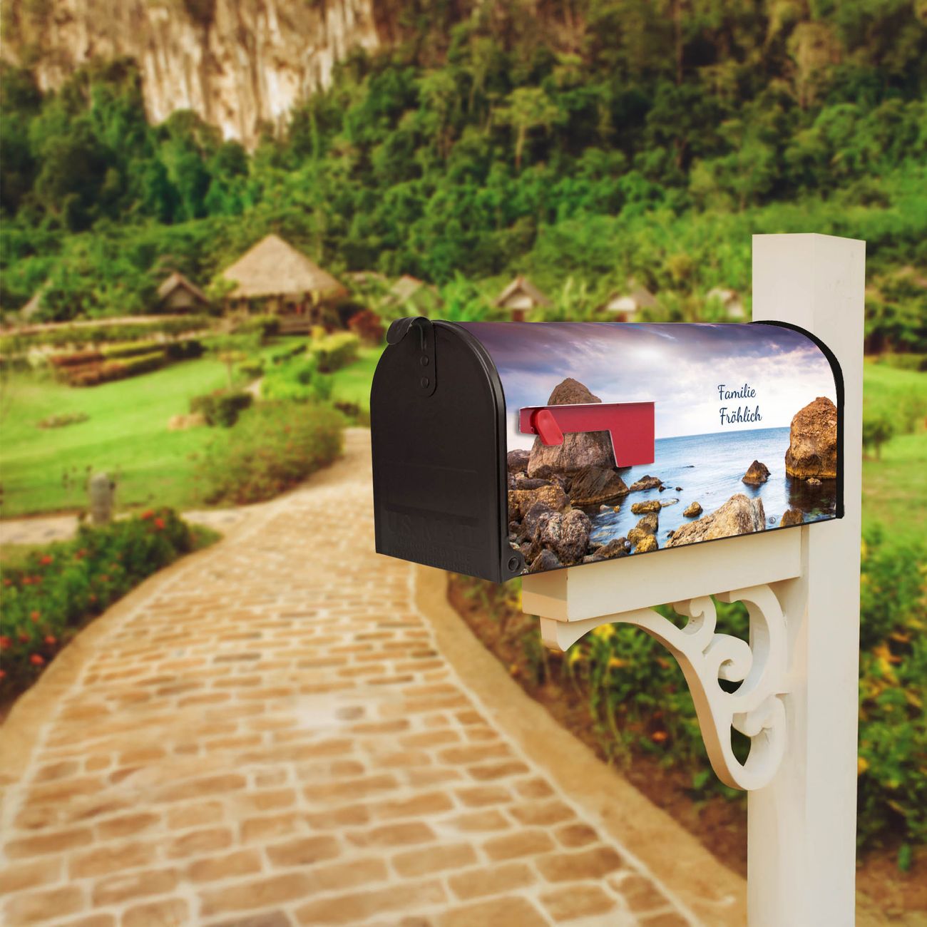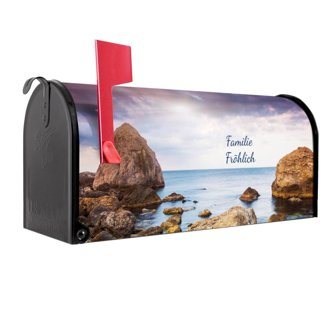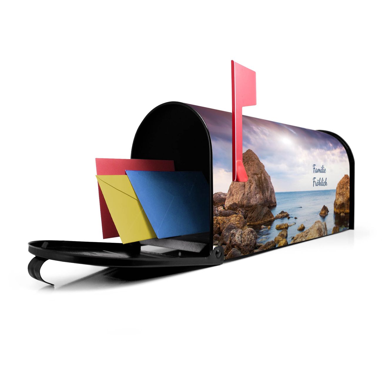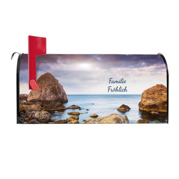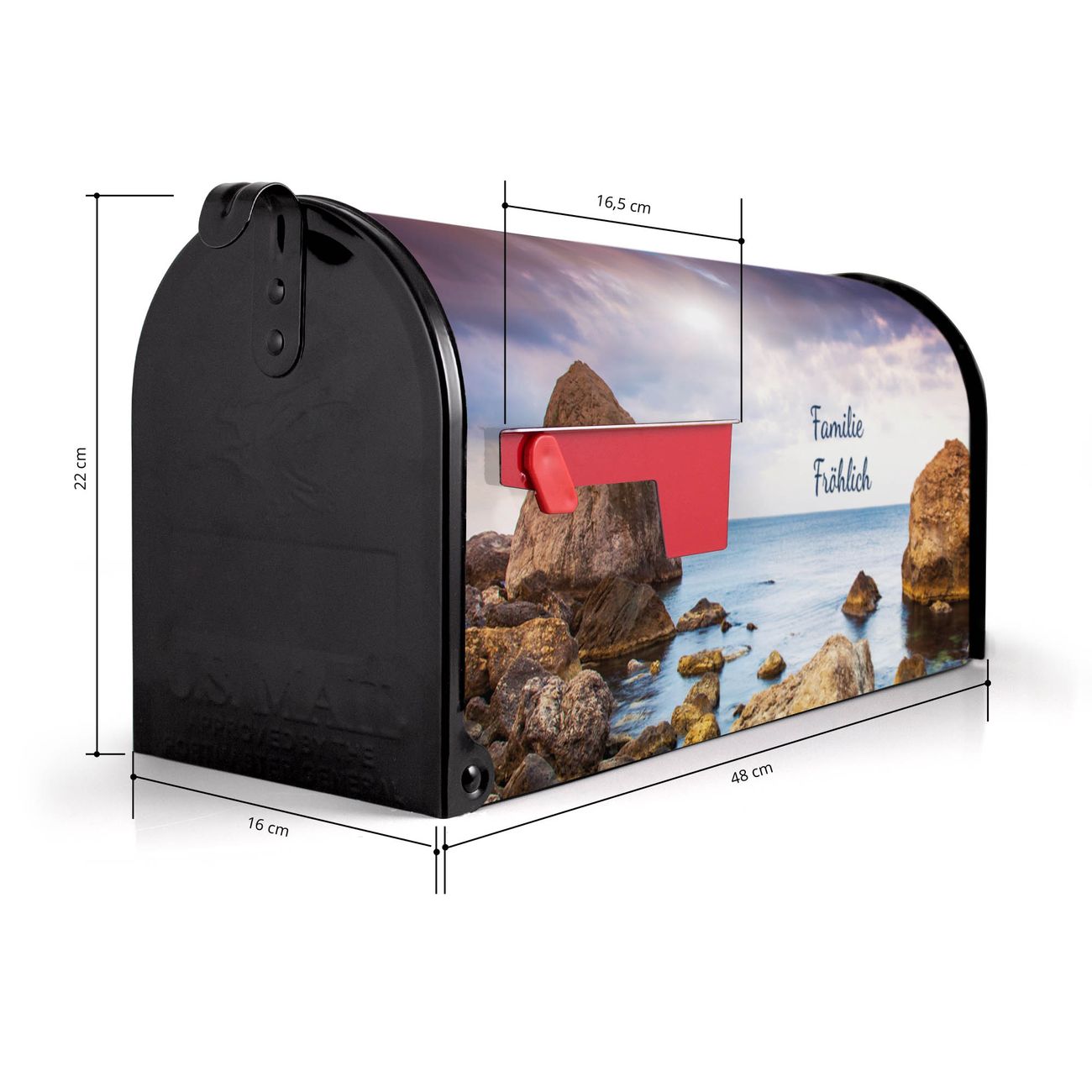 Der amerikanische Briefkasten von banjado mit Steinbucht Motiv bietet Ihnen ausreichend Fassungsvermögen, um große A4 Sendungen und Zeitschriften zu empfangen. Die typisch amerikanische rote Fahne zeigt Ihnen an, wenn Sie Post erhalten haben. Die US-Mailbox besteht aus verzinktem Stahlblech welches lackiert wurde und ist 48 x 22 x 16 CM (BxHxT) groß. Die Folie mit Motiv Steinbucht besteht aus einer wetter- und UV-resistenten Folie, die mit einem Schutzlaminat überzogen ist, sodass die US Mailbox zusätzlich vor Kratzern geschützt ist. An der Unterkante sind 4 Löcher je Seite um die Mailbox, typisch amerikanisch, an einem Holzpfahl oder einem Zaun zu befestigen. Auf Wunsch können Sie bei uns den passenden Standfuß oder die passende Wandhalterung kaufen um die US-Mailbox sicher zu befestigen. Wir bieten Ihnen ebenfalls Namensschilder, bereits beschriftet oder frei zu beschriften, und verschiedene selbst gestaltete Bitte-Keine-Werbung-Aufkleber.