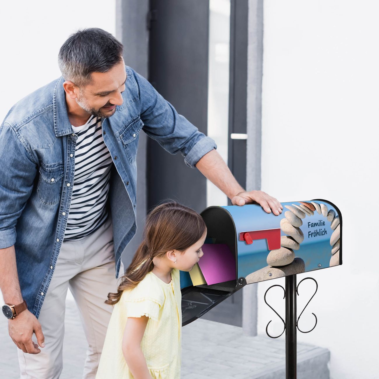 Unser amerikanischer Briefkasten mit dem Motiv Steine&Meer hat ein sehr ansprechendes und ausgefallenes Design, ist in der Grundfarbe weiß, grün oder schwarz erhältlich. Damit entlocken Sie Ihren Nachbarn und dem Postboten immer wieder ein Lächeln. Die Mailbox ist ein Original Import aus Mississippi USA und wird von unserer kleinen Manufaktur in Sachsen von Hand veredelt. Die US-Mailbox bietet ausreichend Platz auch für große Sendungen, eine Fahne die Ihnen Post anzeigt, wetterfestes und äußerst stabiles Material - so macht Post empfangen Freude.