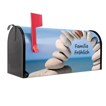 Der amerikanische Briefkasten von banjado mit Steine&Meer Motiv bietet Ihnen ausreichend Fassungsvermögen, um große A4 Sendungen und Zeitschriften zu empfangen. Die typisch amerikanische rote Fahne zeigt Ihnen an, wenn Sie Post erhalten haben. Die US-Mailbox besteht aus verzinktem Stahlblech welches lackiert wurde und ist 48 x 22 x 16 CM (BxHxT) groß. Die Folie mit Motiv Steine&Meer besteht aus einer wetter- und UV-resistenten Folie, die mit einem Schutzlaminat überzogen ist, sodass die US Mailbox zusätzlich vor Kratzern geschützt ist. An der Unterkante sind 4 Löcher je Seite um die Mailbox, typisch amerikanisch, an einem Holzpfahl oder einem Zaun zu befestigen. Auf Wunsch können Sie bei uns den passenden Standfuß oder die passende Wandhalterung kaufen um die US-Mailbox sicher zu befestigen. Wir bieten Ihnen ebenfalls Namensschilder, bereits beschriftet oder frei zu beschriften, und verschiedene selbst gestaltete Bitte-Keine-Werbung-Aufkleber.