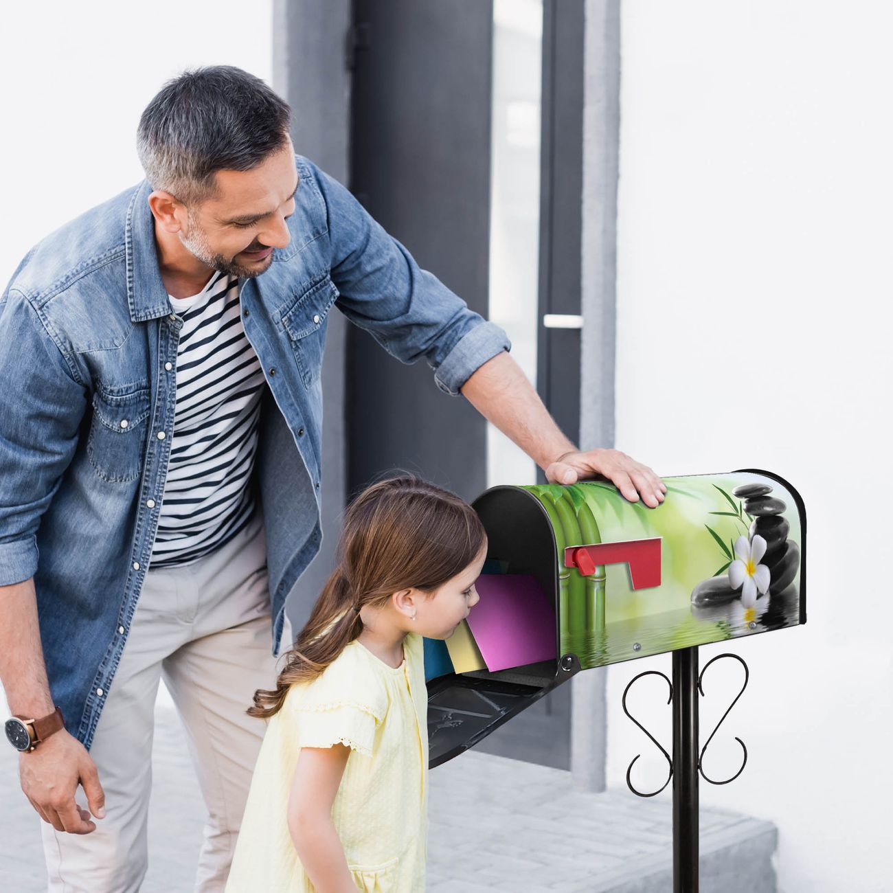 Unser amerikanischer Briefkasten mit dem Motiv Steine & Relax 6 hat ein sehr ansprechendes und ausgefallenes Design, ist in der Grundfarbe weiß, grün oder schwarz erhältlich. Damit entlocken Sie Ihren Nachbarn und dem Postboten immer wieder ein Lächeln. Die Mailbox ist ein Original Import aus Mississippi USA und wird von unserer kleinen Manufaktur in Sachsen von Hand veredelt. Die US-Mailbox bietet ausreichend Platz auch für große Sendungen, eine Fahne die Ihnen Post anzeigt, wetterfestes und äußerst stabiles Material - so macht Post empfangen Freude.