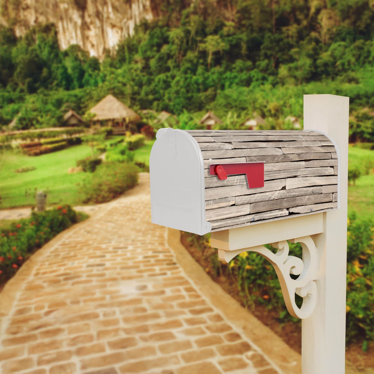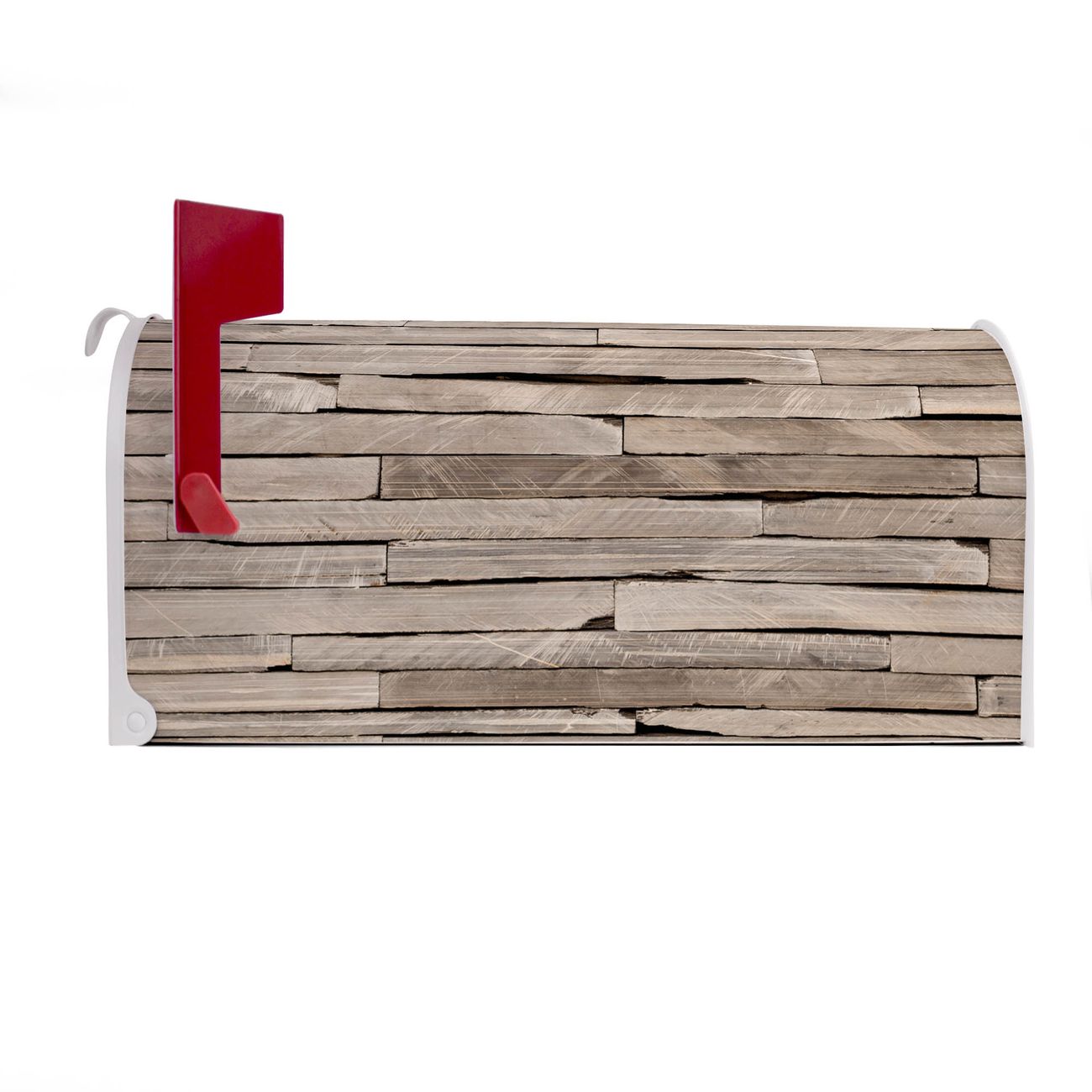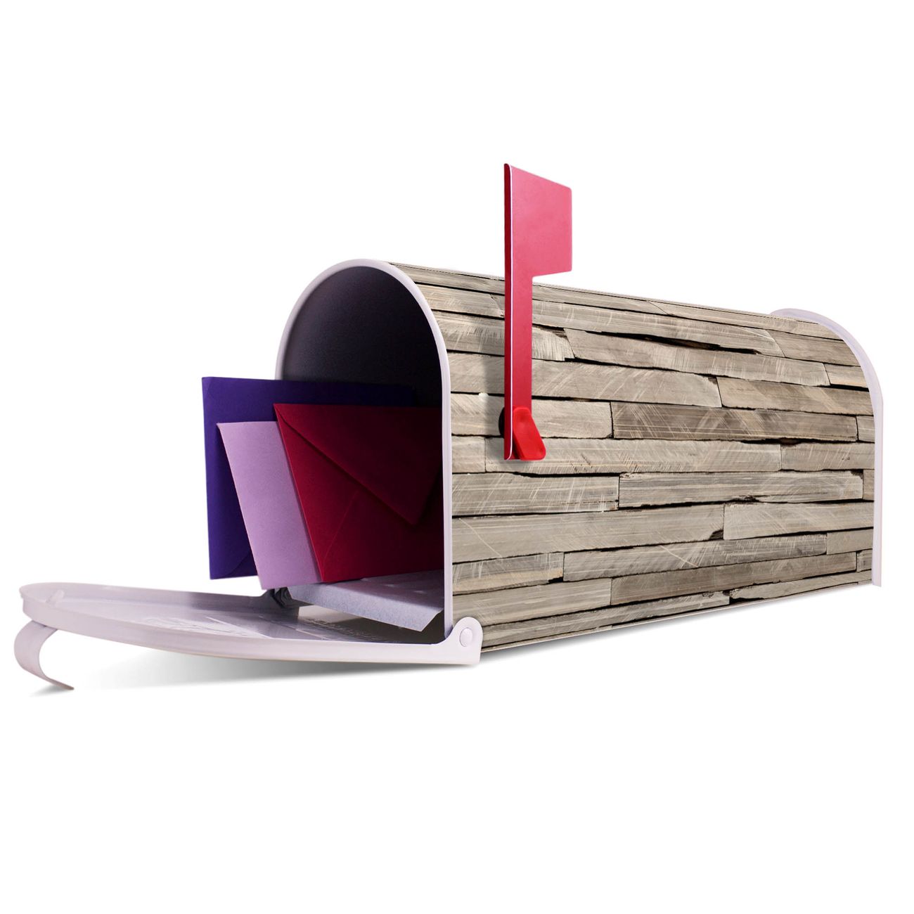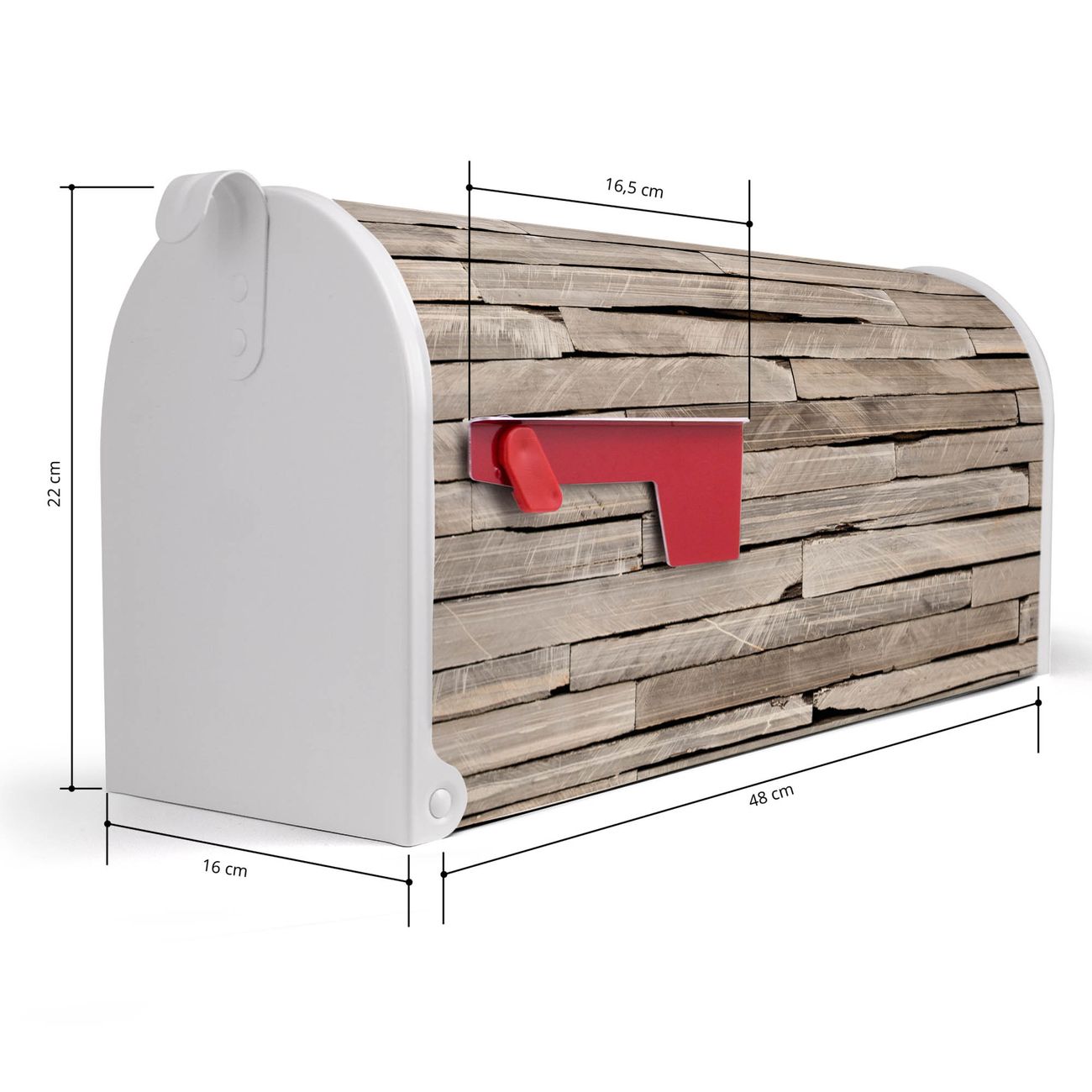 Der amerikanische Briefkasten von banjado mit Steinplatten Motiv bietet Ihnen ausreichend Fassungsvermögen, um große A4 Sendungen und Zeitschriften zu empfangen. Die typisch amerikanische rote Fahne zeigt Ihnen an, wenn Sie Post erhalten haben. Die US-Mailbox besteht aus verzinktem Stahlblech welches lackiert wurde und ist 48 x 22 x 16 CM (BxHxT) groß. Die Folie mit Motiv Steinplatten besteht aus einer wetter- und UV-resistenten Folie, die mit einem Schutzlaminat überzogen ist, sodass die US Mailbox zusätzlich vor Kratzern geschützt ist. An der Unterkante sind 4 Löcher je Seite um die Mailbox, typisch amerikanisch, an einem Holzpfahl oder einem Zaun zu befestigen. Auf Wunsch können Sie bei uns den passenden Standfuß oder die passende Wandhalterung kaufen um die US-Mailbox sicher zu befestigen. Wir bieten Ihnen ebenfalls Namensschilder, bereits beschriftet oder frei zu beschriften, und verschiedene selbst gestaltete Bitte-Keine-Werbung-Aufkleber.