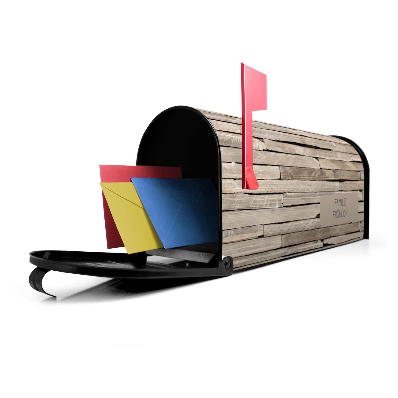 Unser amerikanischer Briefkasten mit dem Motiv Steinplatten hat ein sehr ansprechendes und ausgefallenes Design, ist in der Grundfarbe weiß, grün oder schwarz erhältlich. Damit entlocken Sie Ihren Nachbarn und dem Postboten immer wieder ein Lächeln. Die Mailbox ist ein Original Import aus Mississippi USA und wird von unserer kleinen Manufaktur in Sachsen von Hand veredelt. Die US-Mailbox bietet ausreichend Platz auch für große Sendungen, eine Fahne die Ihnen Post anzeigt, wetterfestes und äußerst stabiles Material - so macht Post empfangen Freude.