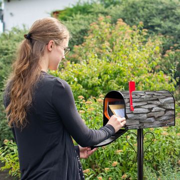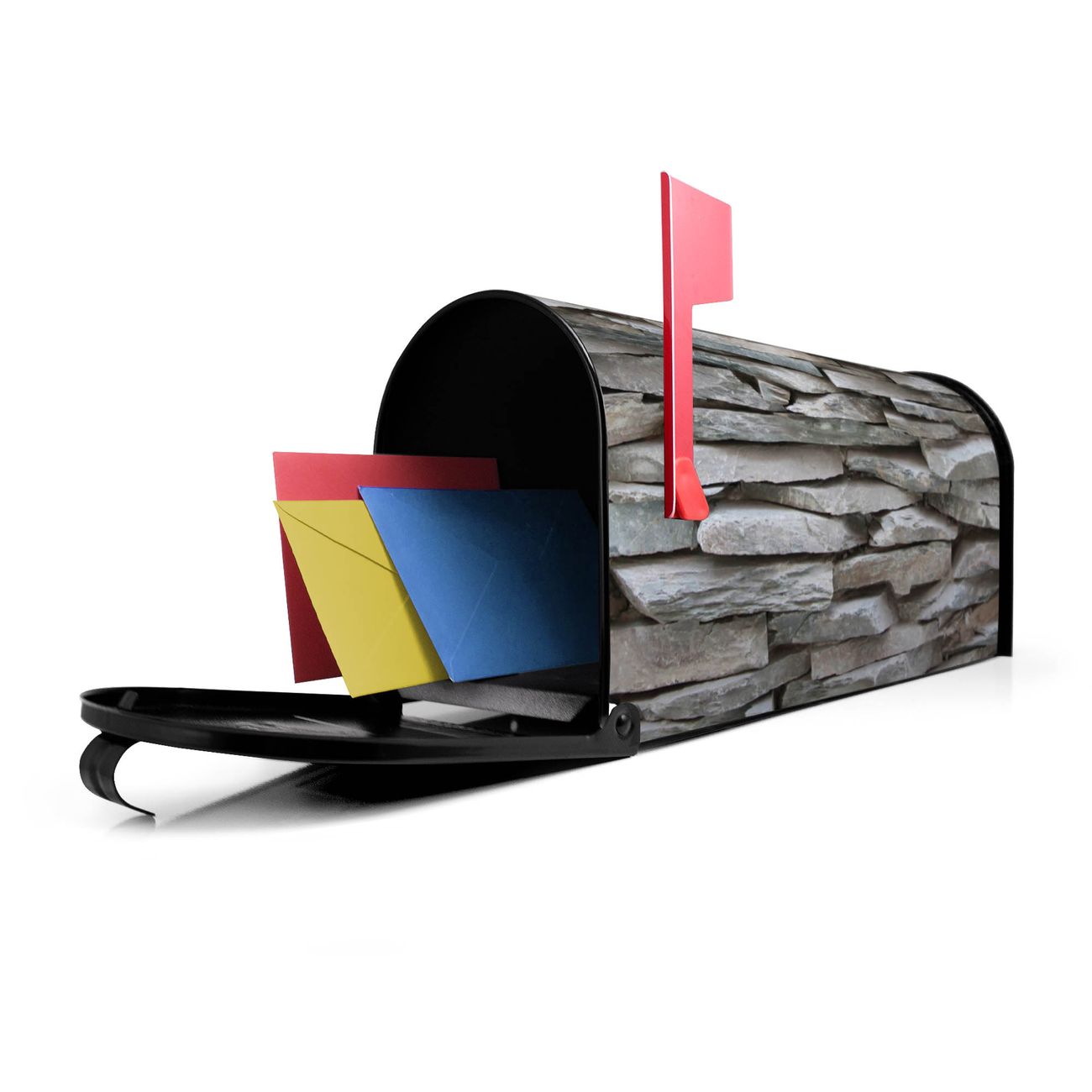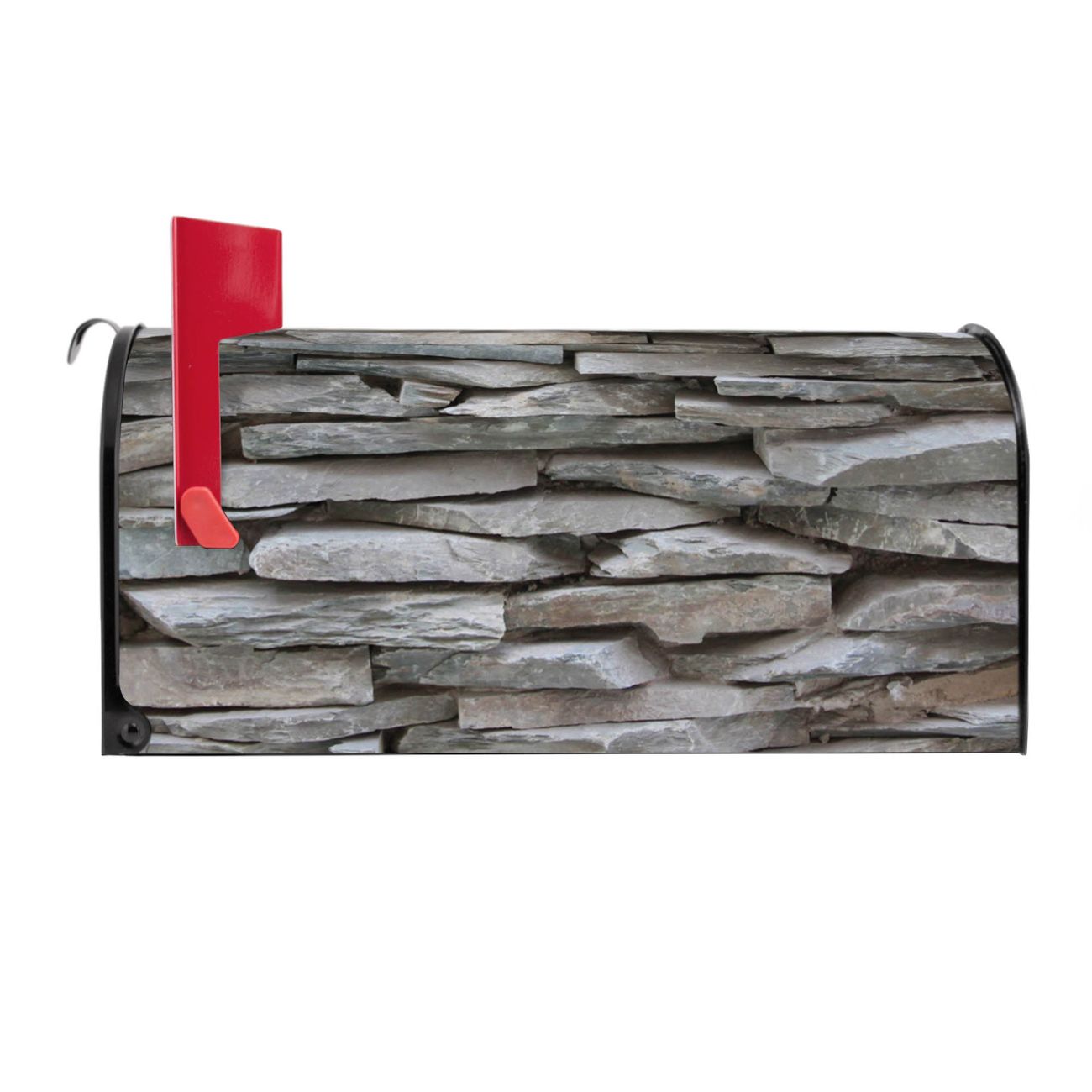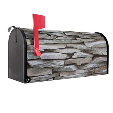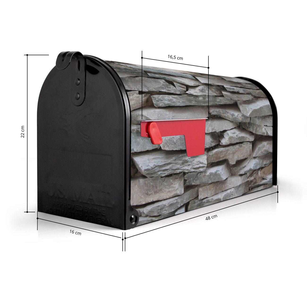 Der amerikanische Briefkasten von banjado mit Steinwand Motiv bietet Ihnen ausreichend Fassungsvermögen, um große A4 Sendungen und Zeitschriften zu empfangen. Die typisch amerikanische rote Fahne zeigt Ihnen an, wenn Sie Post erhalten haben. Die US-Mailbox besteht aus verzinktem Stahlblech welches lackiert wurde und ist 48 x 22 x 16 CM (BxHxT) groß. Die Folie mit Motiv Steinwand besteht aus einer wetter- und UV-resistenten Folie, die mit einem Schutzlaminat überzogen ist, sodass die US Mailbox zusätzlich vor Kratzern geschützt ist. An der Unterkante sind 4 Löcher je Seite um die Mailbox, typisch amerikanisch, an einem Holzpfahl oder einem Zaun zu befestigen. Auf Wunsch können Sie bei uns den passenden Standfuß oder die passende Wandhalterung kaufen um die US-Mailbox sicher zu befestigen. Wir bieten Ihnen ebenfalls Namensschilder, bereits beschriftet oder frei zu beschriften, und verschiedene selbst gestaltete Bitte-Keine-Werbung-Aufkleber.