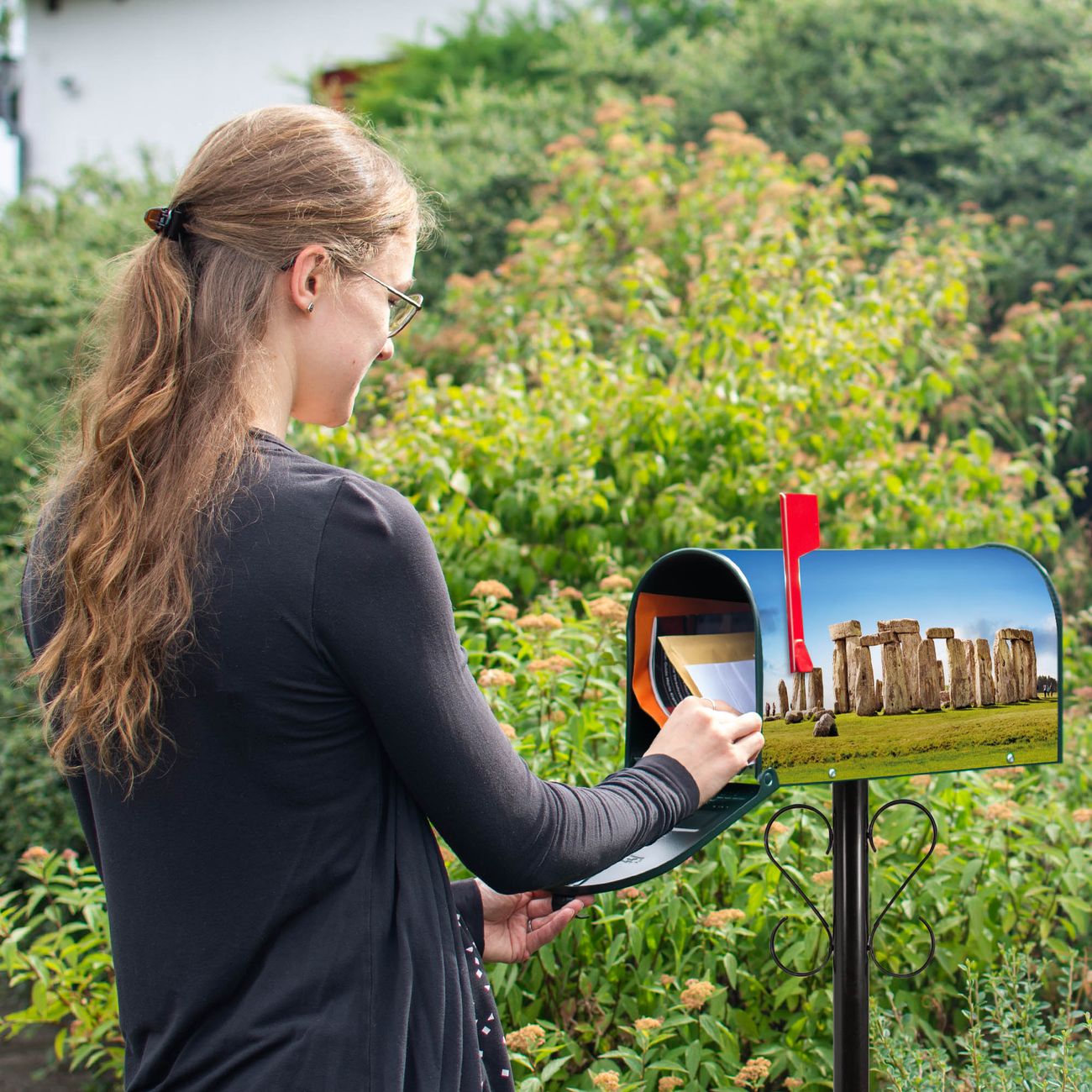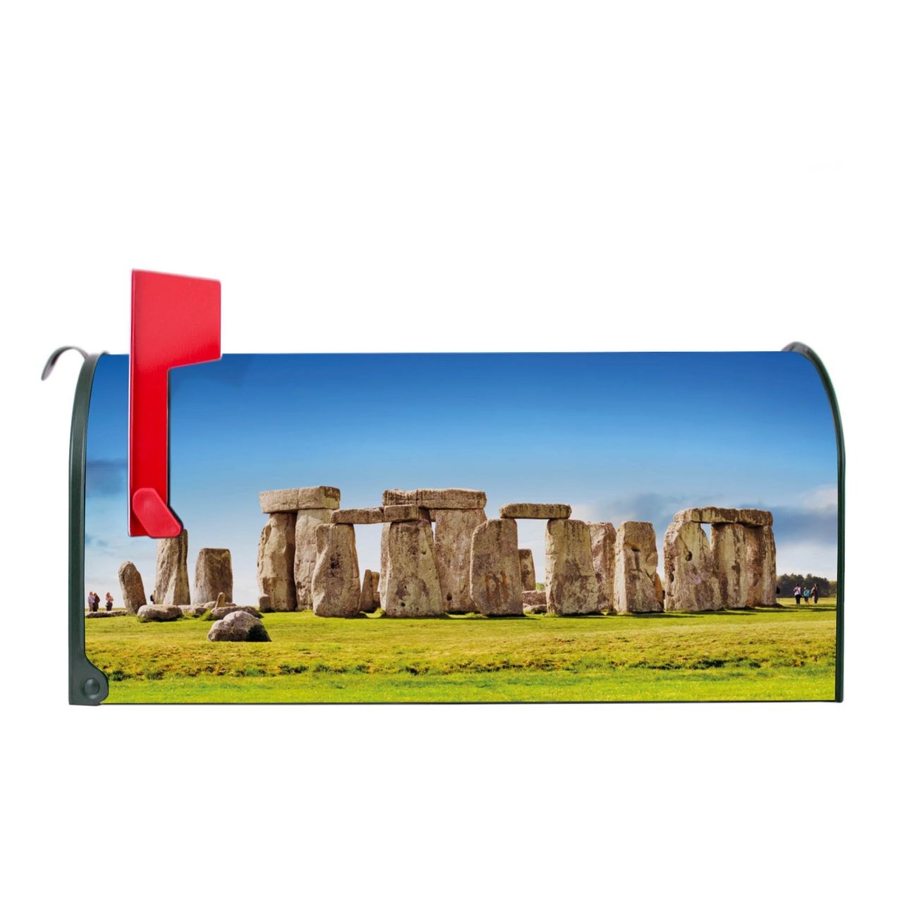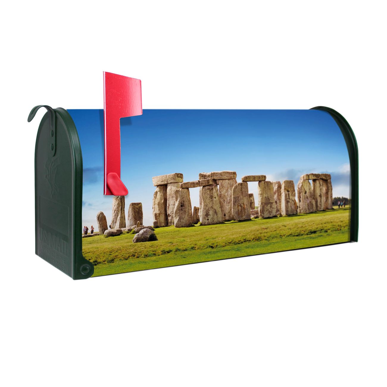 Unser amerikanischer Briefkasten mit dem Motiv Stonehenge hat ein sehr ansprechendes und ausgefallenes Design, ist in der Grundfarbe weiß, grün oder schwarz erhältlich. Damit entlocken Sie Ihren Nachbarn und dem Postboten immer wieder ein Lächeln. Die Mailbox ist ein Original Import aus Mississippi USA und wird von unserer kleinen Manufaktur in Sachsen von Hand veredelt. Die US-Mailbox bietet ausreichend Platz auch für große Sendungen, eine Fahne die Ihnen Post anzeigt, wetterfestes und äußerst stabiles Material - so macht Post empfangen Freude.