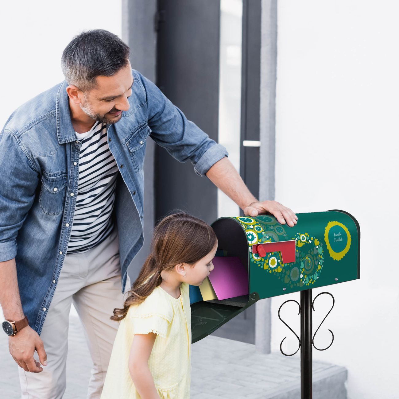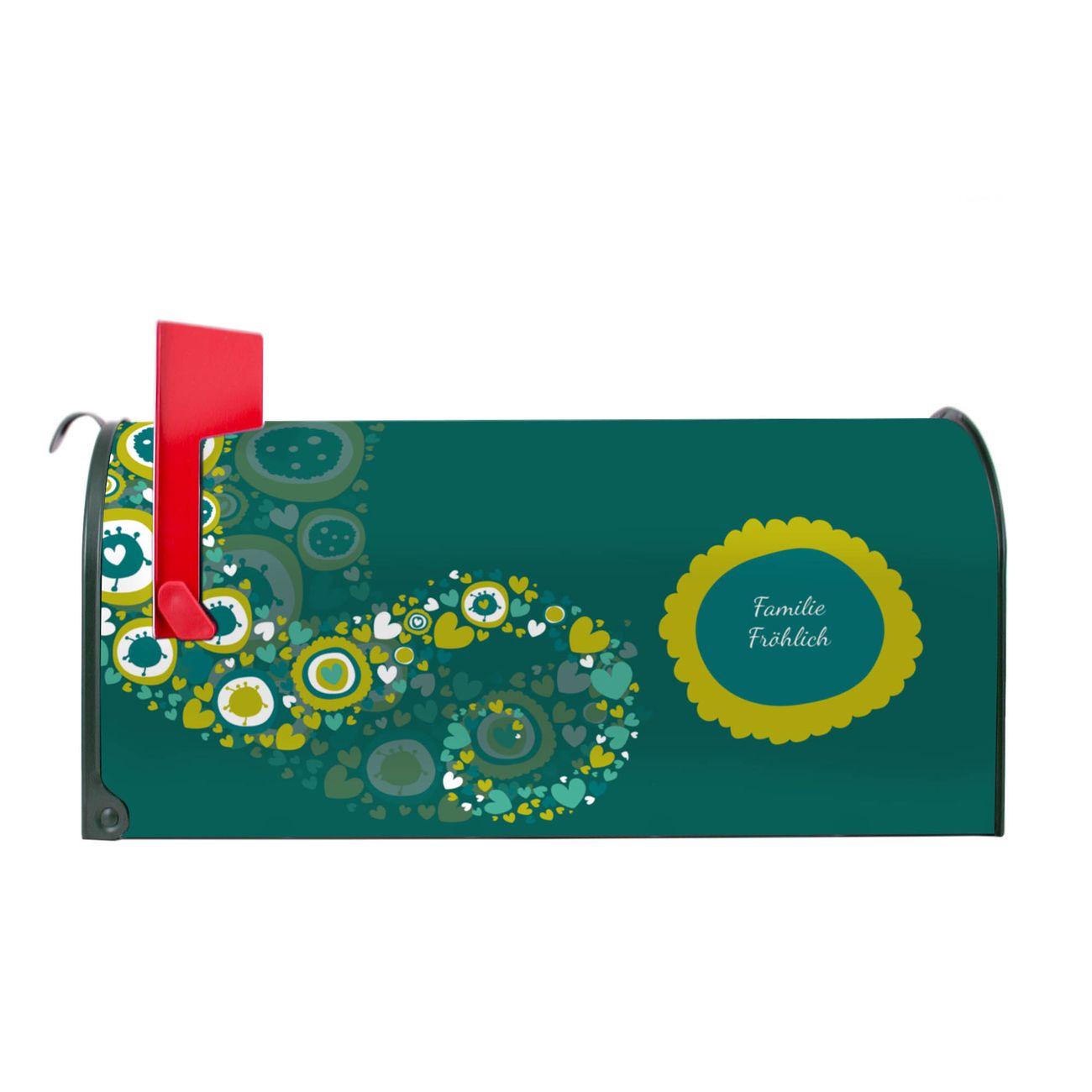 Unser amerikanischer Briefkasten mit dem Motiv WT Strömende Herzen hat ein sehr ansprechendes und ausgefallenes Design, ist in der Grundfarbe weiß, grün oder schwarz erhältlich. Damit entlocken Sie Ihren Nachbarn und dem Postboten immer wieder ein Lächeln. Die Mailbox ist ein Original Import aus Mississippi USA und wird von unserer kleinen Manufaktur in Sachsen von Hand veredelt. Die US-Mailbox bietet ausreichend Platz auch für große Sendungen, eine Fahne die Ihnen Post anzeigt, wetterfestes und äußerst stabiles Material - so macht Post empfangen Freude.