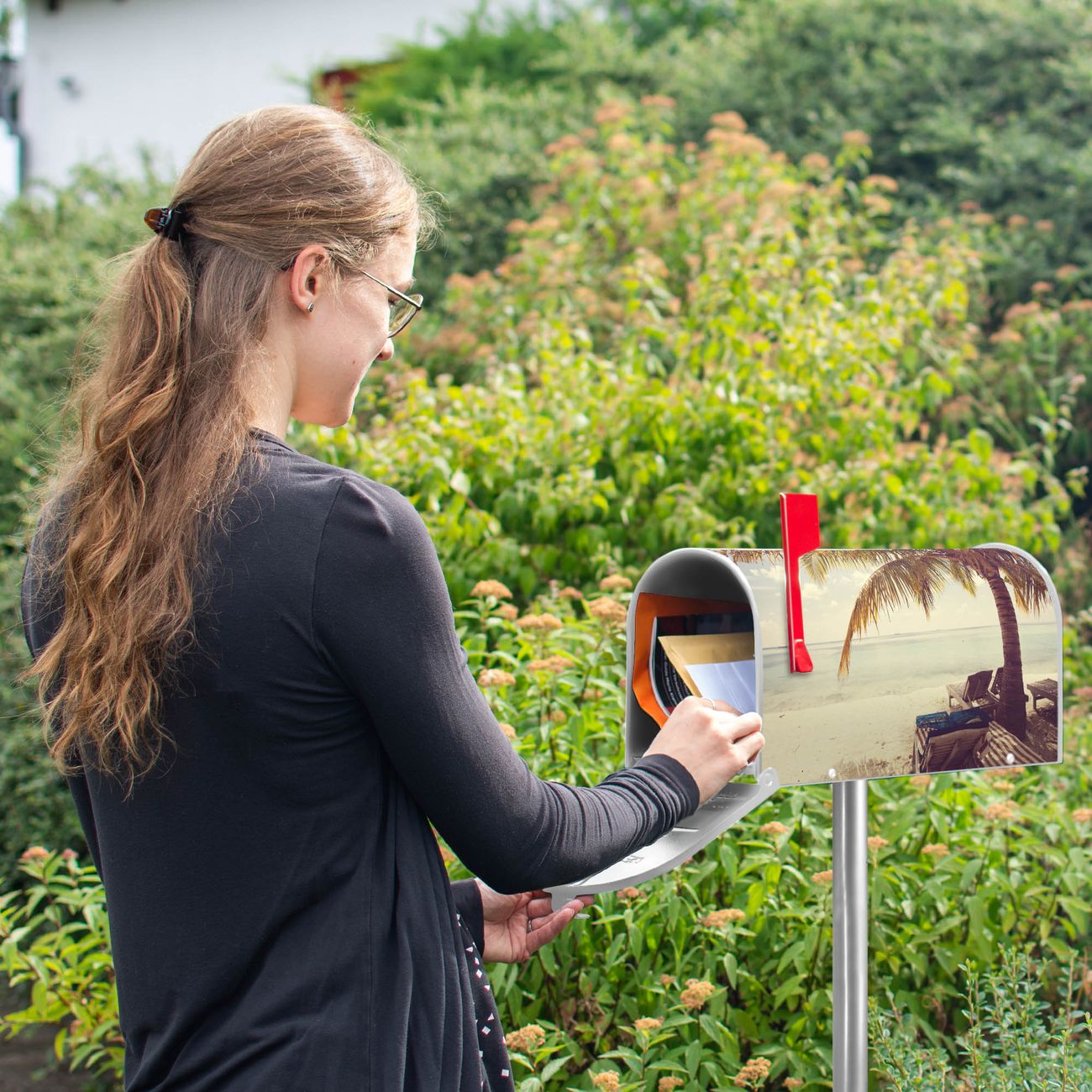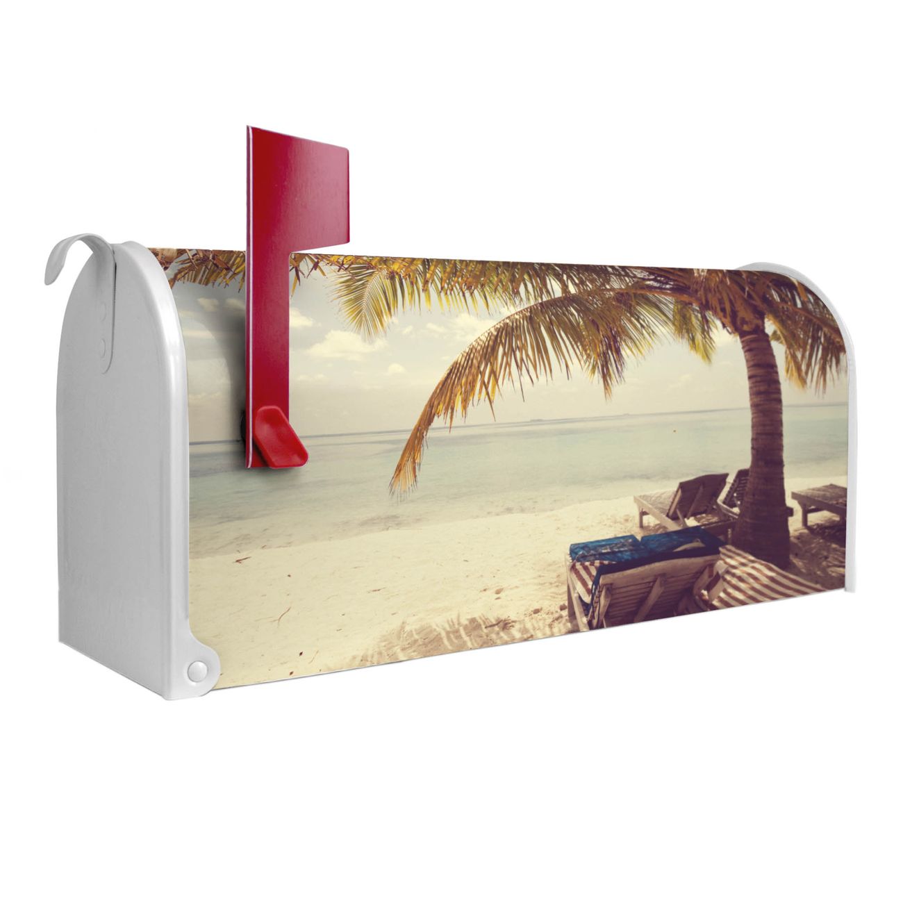 Unser amerikanischer Briefkasten mit dem Motiv Südseestrand hat ein sehr ansprechendes und ausgefallenes Design, ist in der Grundfarbe weiß, grün oder schwarz erhältlich. Damit entlocken Sie Ihren Nachbarn und dem Postboten immer wieder ein Lächeln. Die Mailbox ist ein Original Import aus Mississippi USA und wird von unserer kleinen Manufaktur in Sachsen von Hand veredelt. Die US-Mailbox bietet ausreichend Platz auch für große Sendungen, eine Fahne die Ihnen Post anzeigt, wetterfestes und äußerst stabiles Material - so macht Post empfangen Freude.