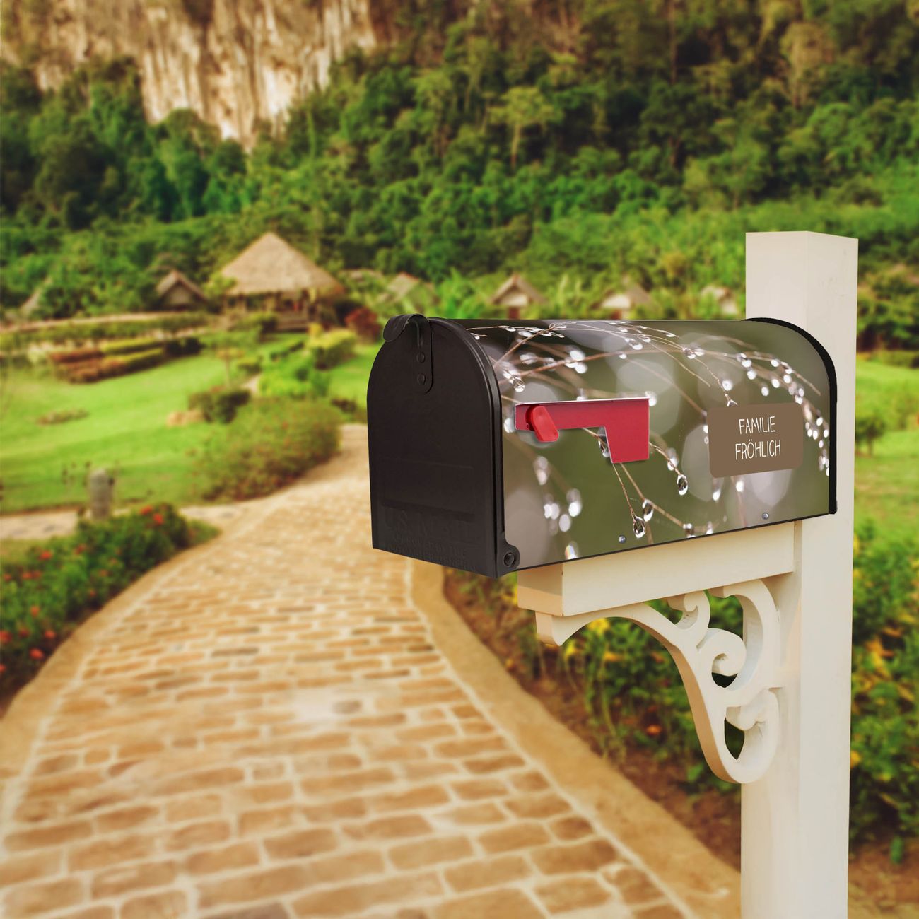 Unser amerikanischer Briefkasten mit dem Motiv Tau Auf Zweigen hat ein sehr ansprechendes und ausgefallenes Design, ist in der Grundfarbe weiß, grün oder schwarz erhältlich. Damit entlocken Sie Ihren Nachbarn und dem Postboten immer wieder ein Lächeln. Die Mailbox ist ein Original Import aus Mississippi USA und wird von unserer kleinen Manufaktur in Sachsen von Hand veredelt. Die US-Mailbox bietet ausreichend Platz auch für große Sendungen, eine Fahne die Ihnen Post anzeigt, wetterfestes und äußerst stabiles Material - so macht Post empfangen Freude.
