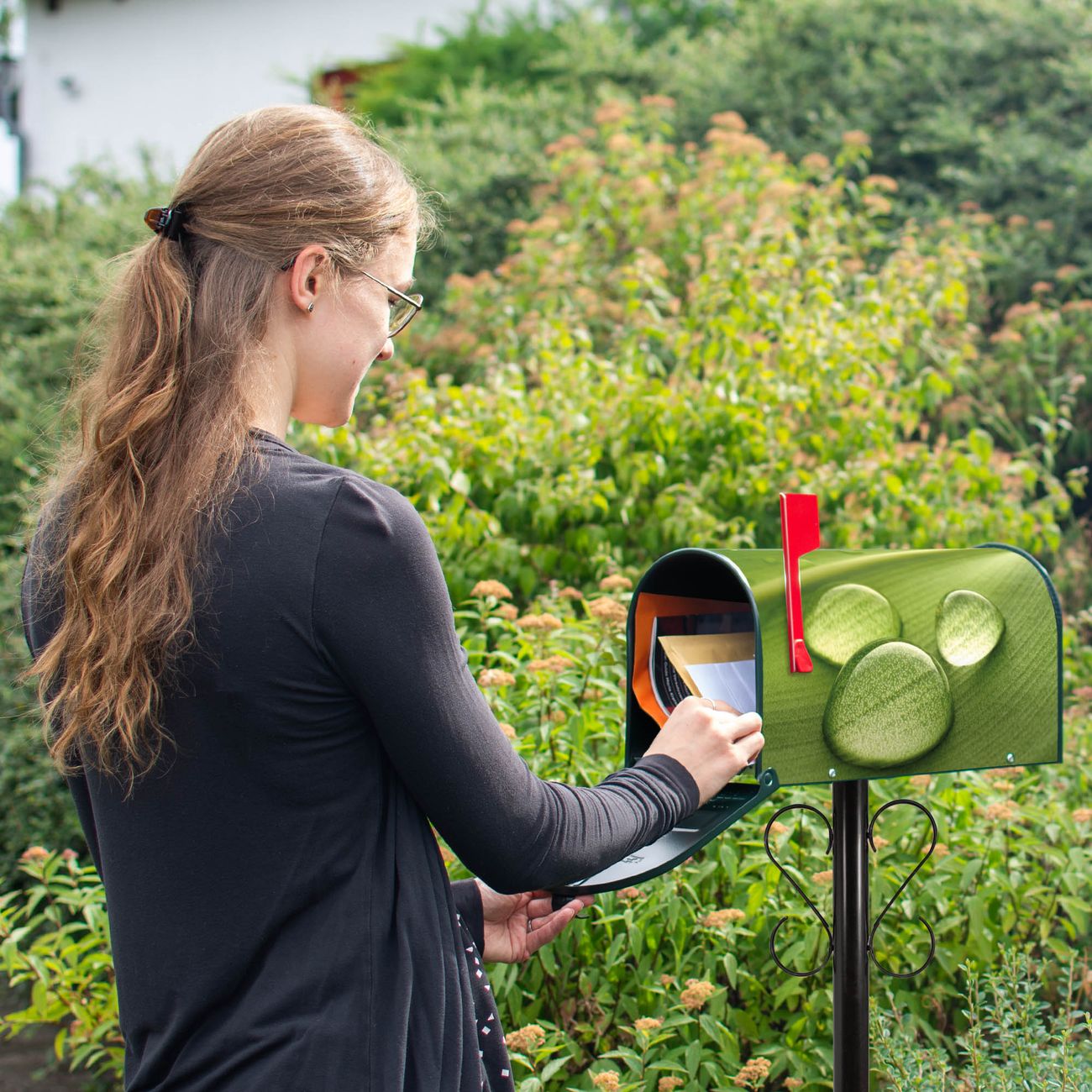 Unser amerikanischer Briefkasten mit dem Motiv Tautropfen hat ein sehr ansprechendes und ausgefallenes Design, ist in der Grundfarbe weiß, grün oder schwarz erhältlich. Damit entlocken Sie Ihren Nachbarn und dem Postboten immer wieder ein Lächeln. Die Mailbox ist ein Original Import aus Mississippi USA und wird von unserer kleinen Manufaktur in Sachsen von Hand veredelt. Die US-Mailbox bietet ausreichend Platz auch für große Sendungen, eine Fahne die Ihnen Post anzeigt, wetterfestes und äußerst stabiles Material - so macht Post empfangen Freude.