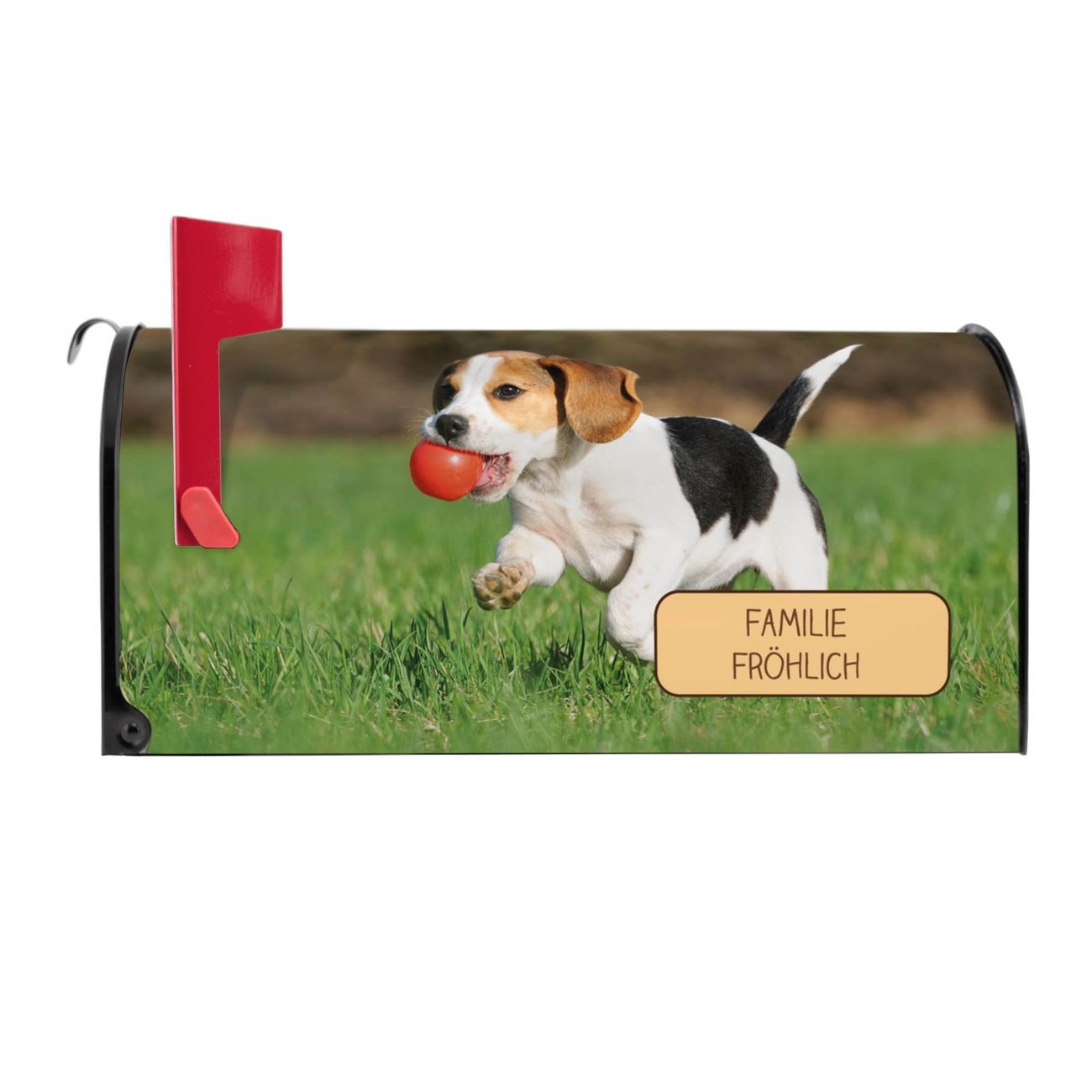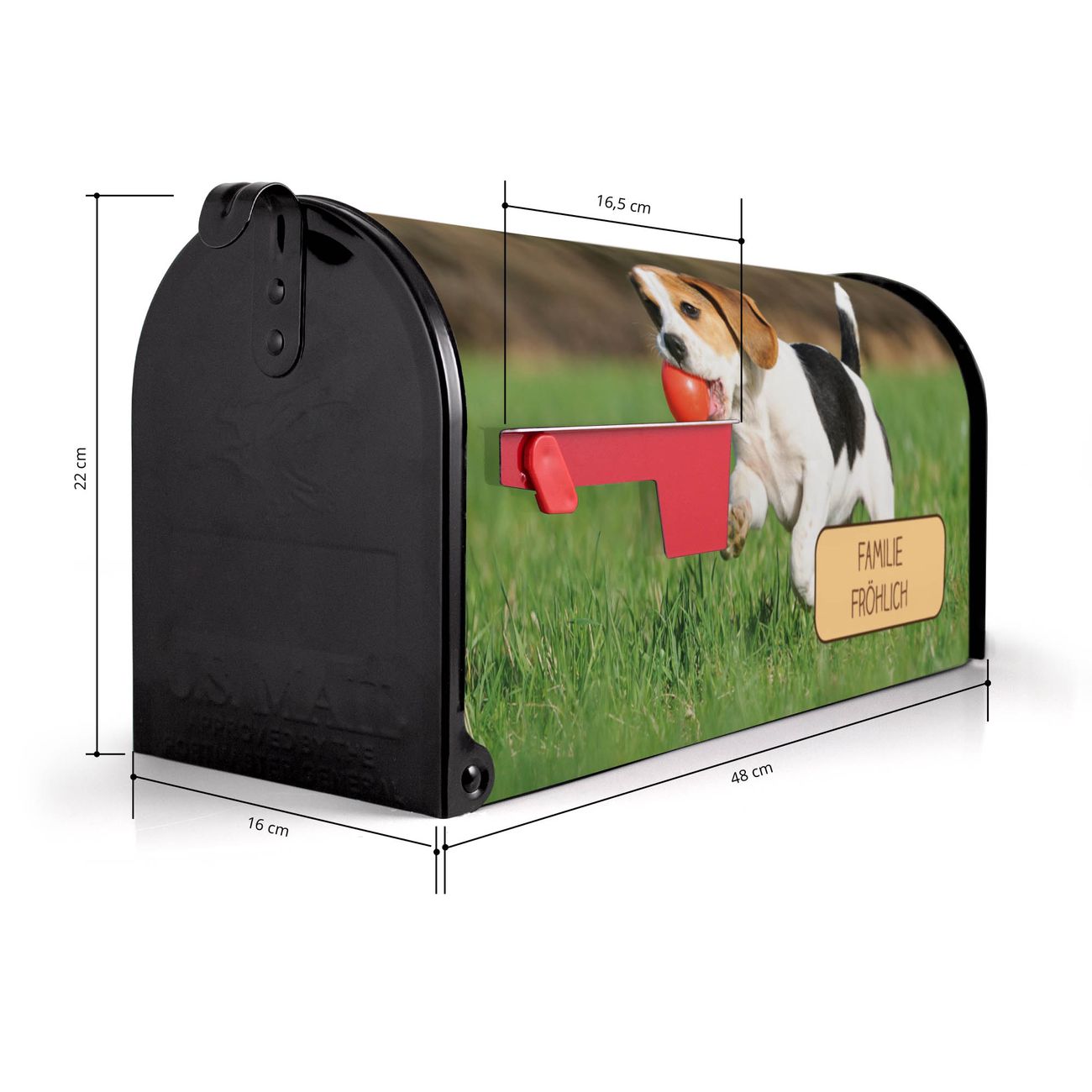 Der amerikanische Briefkasten von banjado mit Trixi Motiv bietet Ihnen ausreichend Fassungsvermögen, um große A4 Sendungen und Zeitschriften zu empfangen. Die typisch amerikanische rote Fahne zeigt Ihnen an, wenn Sie Post erhalten haben. Die US-Mailbox besteht aus verzinktem Stahlblech welches lackiert wurde und ist 48 x 22 x 16 CM (BxHxT) groß. Die Folie mit Motiv Trixi besteht aus einer wetter- und UV-resistenten Folie, die mit einem Schutzlaminat überzogen ist, sodass die US Mailbox zusätzlich vor Kratzern geschützt ist. An der Unterkante sind 4 Löcher je Seite um die Mailbox, typisch amerikanisch, an einem Holzpfahl oder einem Zaun zu befestigen. Auf Wunsch können Sie bei uns den passenden Standfuß oder die passende Wandhalterung kaufen um die US-Mailbox sicher zu befestigen. Wir bieten Ihnen ebenfalls Namensschilder, bereits beschriftet oder frei zu beschriften, und verschiedene selbst gestaltete Bitte-Keine-Werbung-Aufkleber.