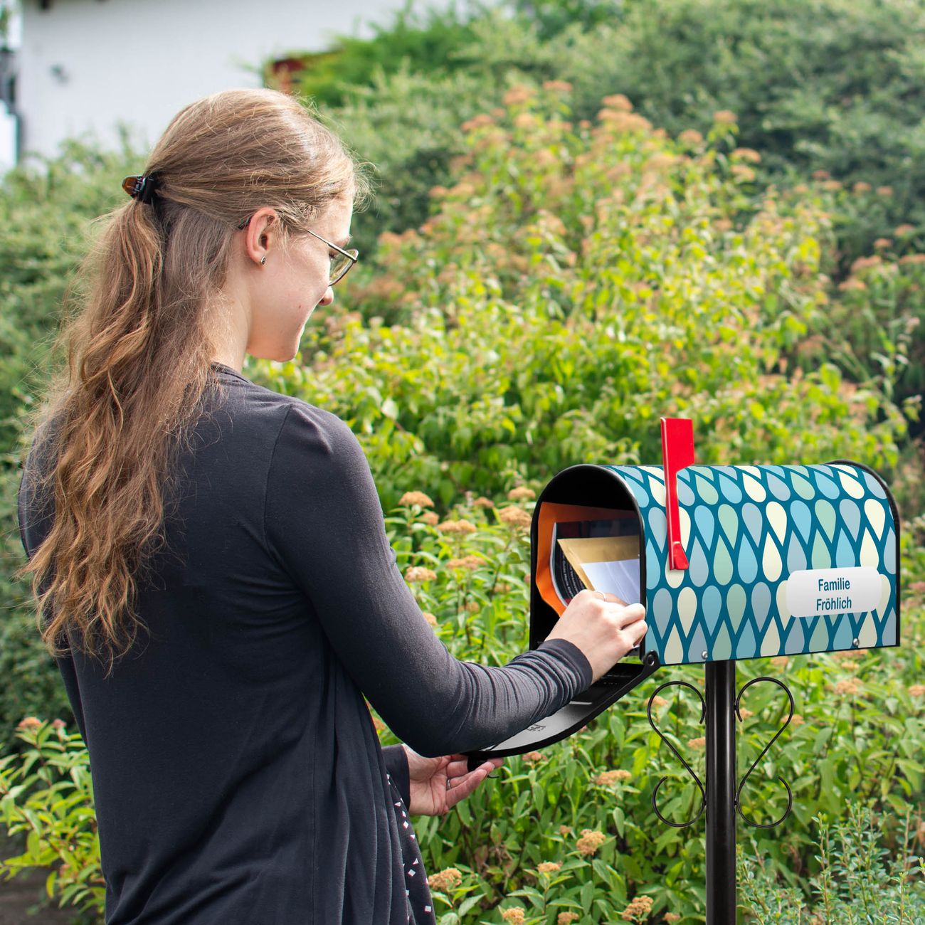 Unser amerikanischer Briefkasten mit dem Motiv Tropfen hat ein sehr ansprechendes und ausgefallenes Design, ist in der Grundfarbe weiß, grün oder schwarz erhältlich. Damit entlocken Sie Ihren Nachbarn und dem Postboten immer wieder ein Lächeln. Die Mailbox ist ein Original Import aus Mississippi USA und wird von unserer kleinen Manufaktur in Sachsen von Hand veredelt. Die US-Mailbox bietet ausreichend Platz auch für große Sendungen, eine Fahne die Ihnen Post anzeigt, wetterfestes und äußerst stabiles Material - so macht Post empfangen Freude.