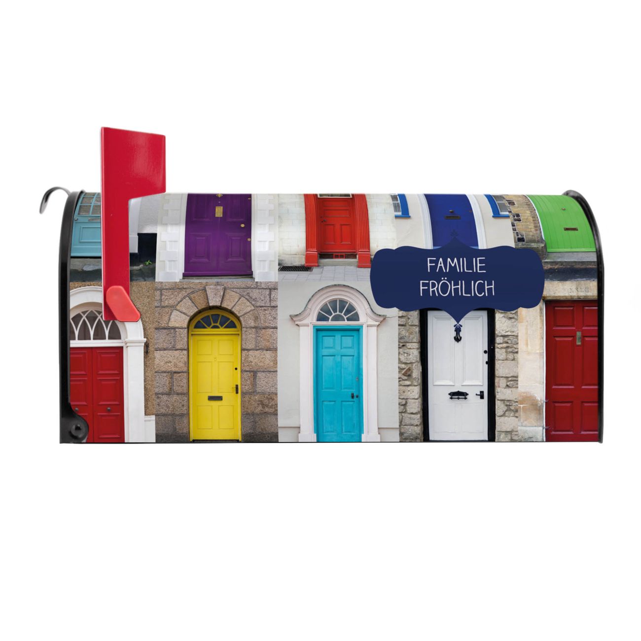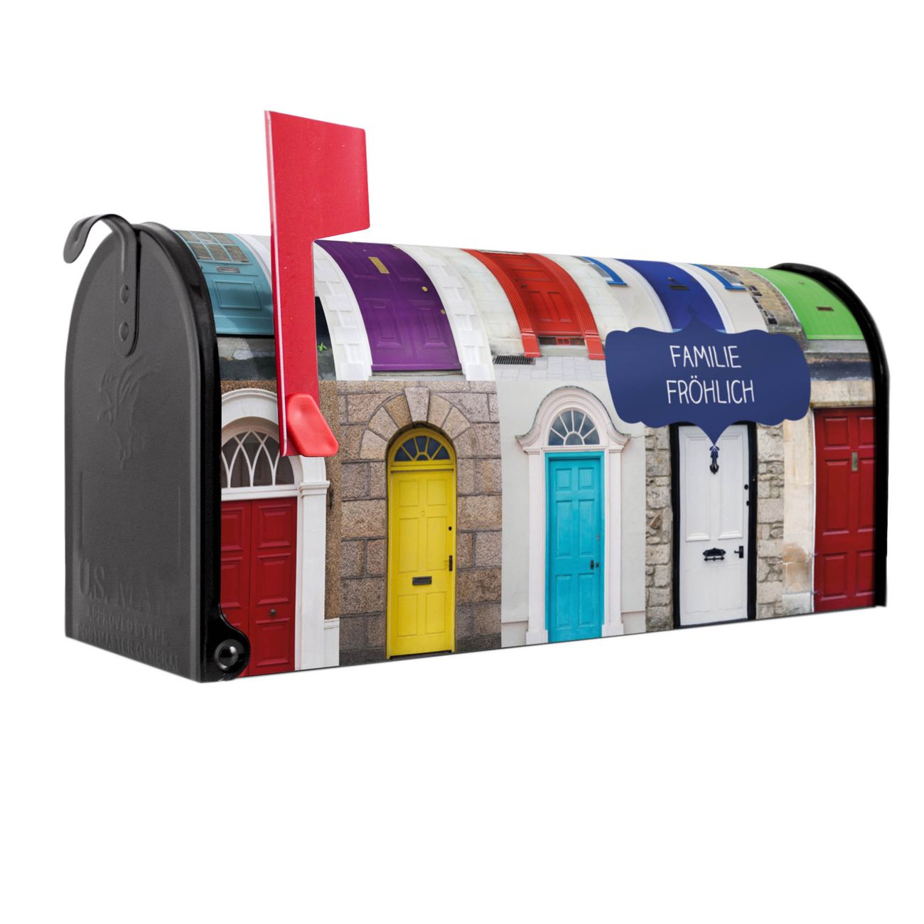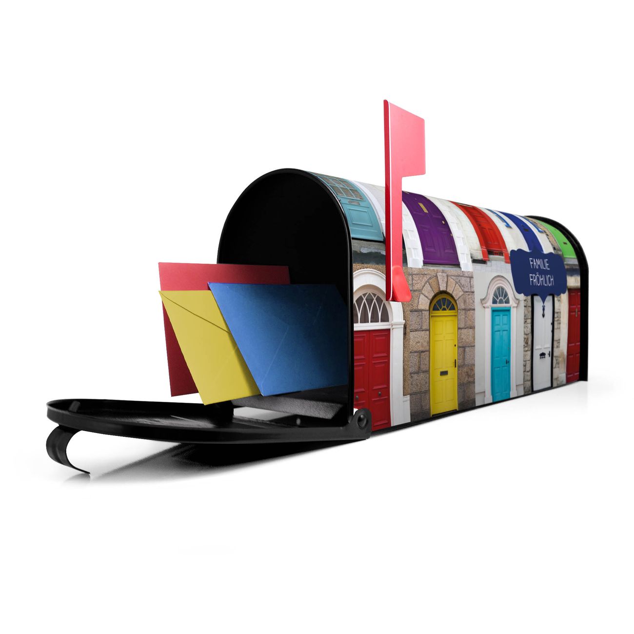 Unser amerikanischer Briefkasten mit dem Motiv Türen hat ein sehr ansprechendes und ausgefallenes Design, ist in der Grundfarbe weiß, grün oder schwarz erhältlich. Damit entlocken Sie Ihren Nachbarn und dem Postboten immer wieder ein Lächeln. Die Mailbox ist ein Original Import aus Mississippi USA und wird von unserer kleinen Manufaktur in Sachsen von Hand veredelt. Die US-Mailbox bietet ausreichend Platz auch für große Sendungen, eine Fahne die Ihnen Post anzeigt, wetterfestes und äußerst stabiles Material - so macht Post empfangen Freude.