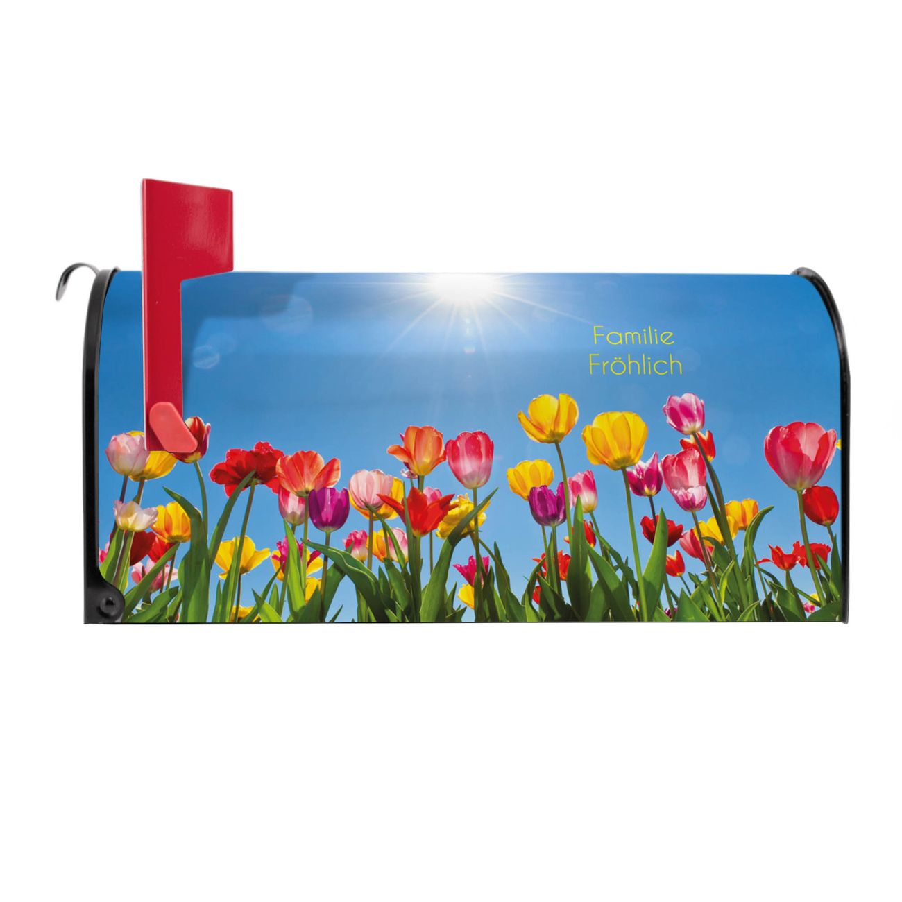 Unser amerikanischer Briefkasten mit dem Motiv Tulpenmeer hat ein sehr ansprechendes und ausgefallenes Design, ist in der Grundfarbe weiß, grün oder schwarz erhältlich. Damit entlocken Sie Ihren Nachbarn und dem Postboten immer wieder ein Lächeln. Die Mailbox ist ein Original Import aus Mississippi USA und wird von unserer kleinen Manufaktur in Sachsen von Hand veredelt. Die US-Mailbox bietet ausreichend Platz auch für große Sendungen, eine Fahne die Ihnen Post anzeigt, wetterfestes und äußerst stabiles Material - so macht Post empfangen Freude.