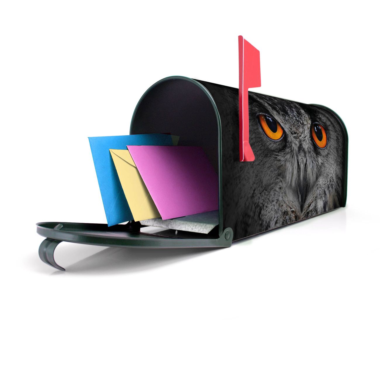 Unser amerikanischer Briefkasten mit dem Motiv Uhu hat ein sehr ansprechendes und ausgefallenes Design, ist in der Grundfarbe weiß, grün oder schwarz erhältlich. Damit entlocken Sie Ihren Nachbarn und dem Postboten immer wieder ein Lächeln. Die Mailbox ist ein Original Import aus Mississippi USA und wird von unserer kleinen Manufaktur in Sachsen von Hand veredelt. Die US-Mailbox bietet ausreichend Platz auch für große Sendungen, eine Fahne die Ihnen Post anzeigt, wetterfestes und äußerst stabiles Material - so macht Post empfangen Freude.