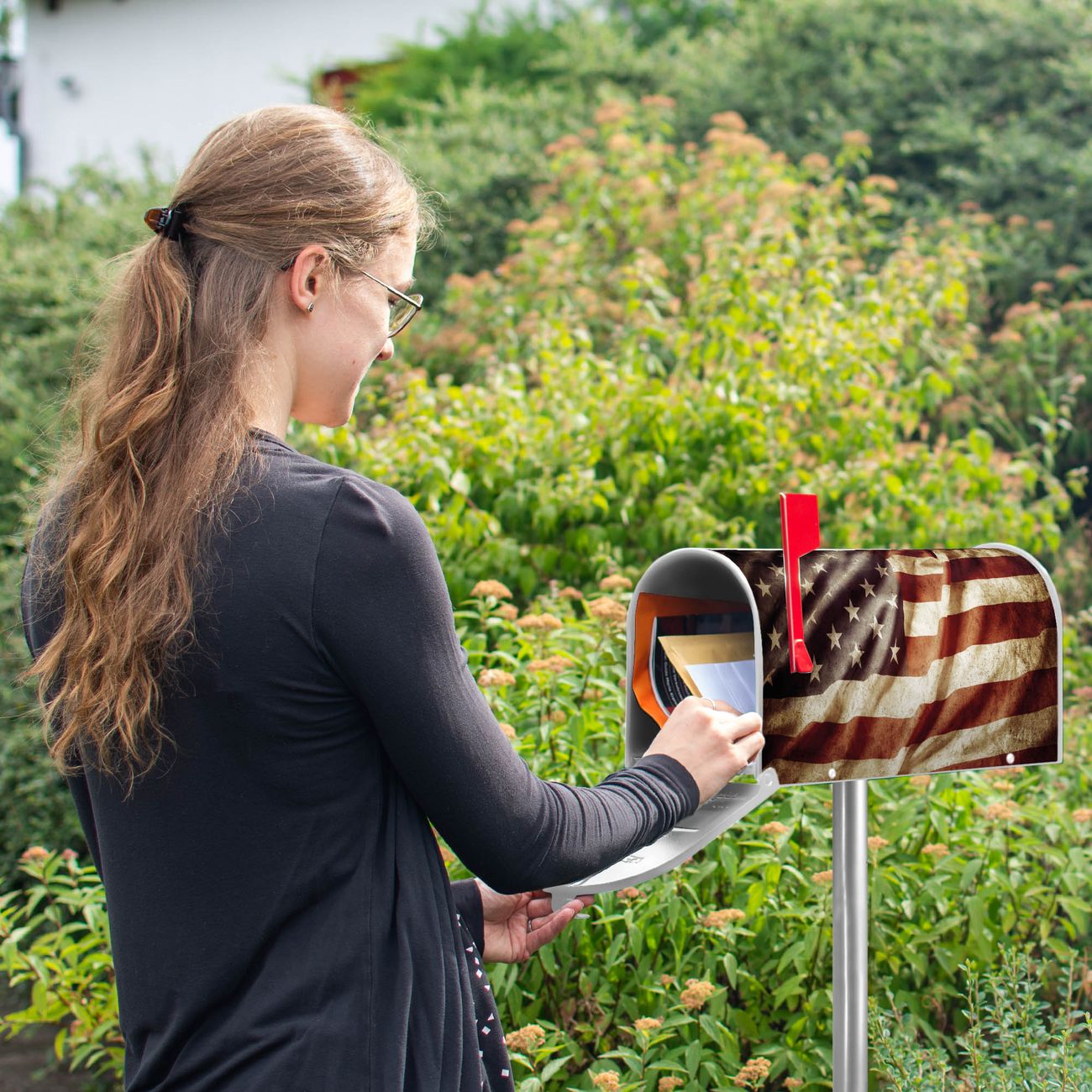 Unser amerikanischer Briefkasten mit dem Motiv United States hat ein sehr ansprechendes und ausgefallenes Design, ist in der Grundfarbe weiß, grün oder schwarz erhältlich. Damit entlocken Sie Ihren Nachbarn und dem Postboten immer wieder ein Lächeln. Die Mailbox ist ein Original Import aus Mississippi USA und wird von unserer kleinen Manufaktur in Sachsen von Hand veredelt. Die US-Mailbox bietet ausreichend Platz auch für große Sendungen, eine Fahne die Ihnen Post anzeigt, wetterfestes und äußerst stabiles Material - so macht Post empfangen Freude.