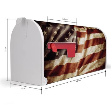 Der amerikanische Briefkasten von banjado mit United States Motiv bietet Ihnen ausreichend Fassungsvermögen, um große A4 Sendungen und Zeitschriften zu empfangen. Die typisch amerikanische rote Fahne zeigt Ihnen an, wenn Sie Post erhalten haben. Die US-Mailbox besteht aus verzinktem Stahlblech welches lackiert wurde und ist 48 x 22 x 16 CM (BxHxT) groß. Die Folie mit Motiv United States besteht aus einer wetter- und UV-resistenten Folie, die mit einem Schutzlaminat überzogen ist, sodass die US Mailbox zusätzlich vor Kratzern geschützt ist. An der Unterkante sind 4 Löcher je Seite um die Mailbox, typisch amerikanisch, an einem Holzpfahl oder einem Zaun zu befestigen. Auf Wunsch können Sie bei uns den passenden Standfuß oder die passende Wandhalterung kaufen um die US-Mailbox sicher zu befestigen. Wir bieten Ihnen ebenfalls Namensschilder, bereits beschriftet oder frei zu beschriften, und verschiedene selbst gestaltete Bitte-Keine-Werbung-Aufkleber.