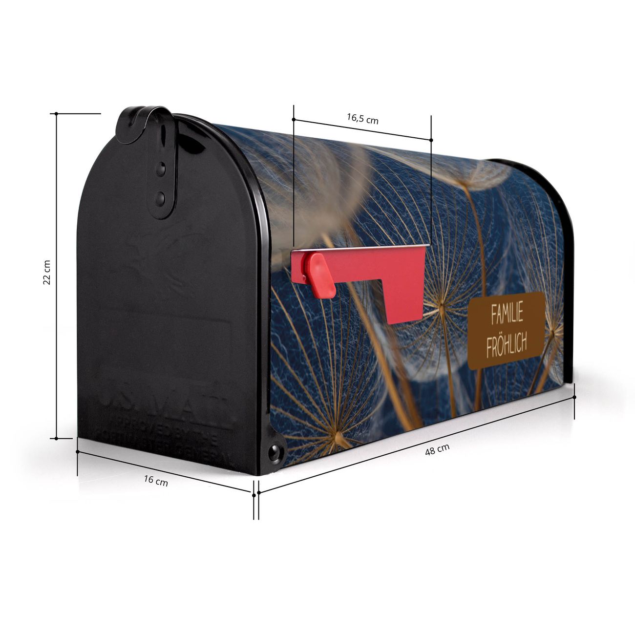Der amerikanische Briefkasten von banjado mit Verblüht Motiv bietet Ihnen ausreichend Fassungsvermögen, um große A4 Sendungen und Zeitschriften zu empfangen. Die typisch amerikanische rote Fahne zeigt Ihnen an, wenn Sie Post erhalten haben. Die US-Mailbox besteht aus verzinktem Stahlblech welches lackiert wurde und ist 48 x 22 x 16 CM (BxHxT) groß. Die Folie mit Motiv Verblüht besteht aus einer wetter- und UV-resistenten Folie, die mit einem Schutzlaminat überzogen ist, sodass die US Mailbox zusätzlich vor Kratzern geschützt ist. An der Unterkante sind 4 Löcher je Seite um die Mailbox, typisch amerikanisch, an einem Holzpfahl oder einem Zaun zu befestigen. Auf Wunsch können Sie bei uns den passenden Standfuß oder die passende Wandhalterung kaufen um die US-Mailbox sicher zu befestigen. Wir bieten Ihnen ebenfalls Namensschilder, bereits beschriftet oder frei zu beschriften, und verschiedene selbst gestaltete Bitte-Keine-Werbung-Aufkleber.