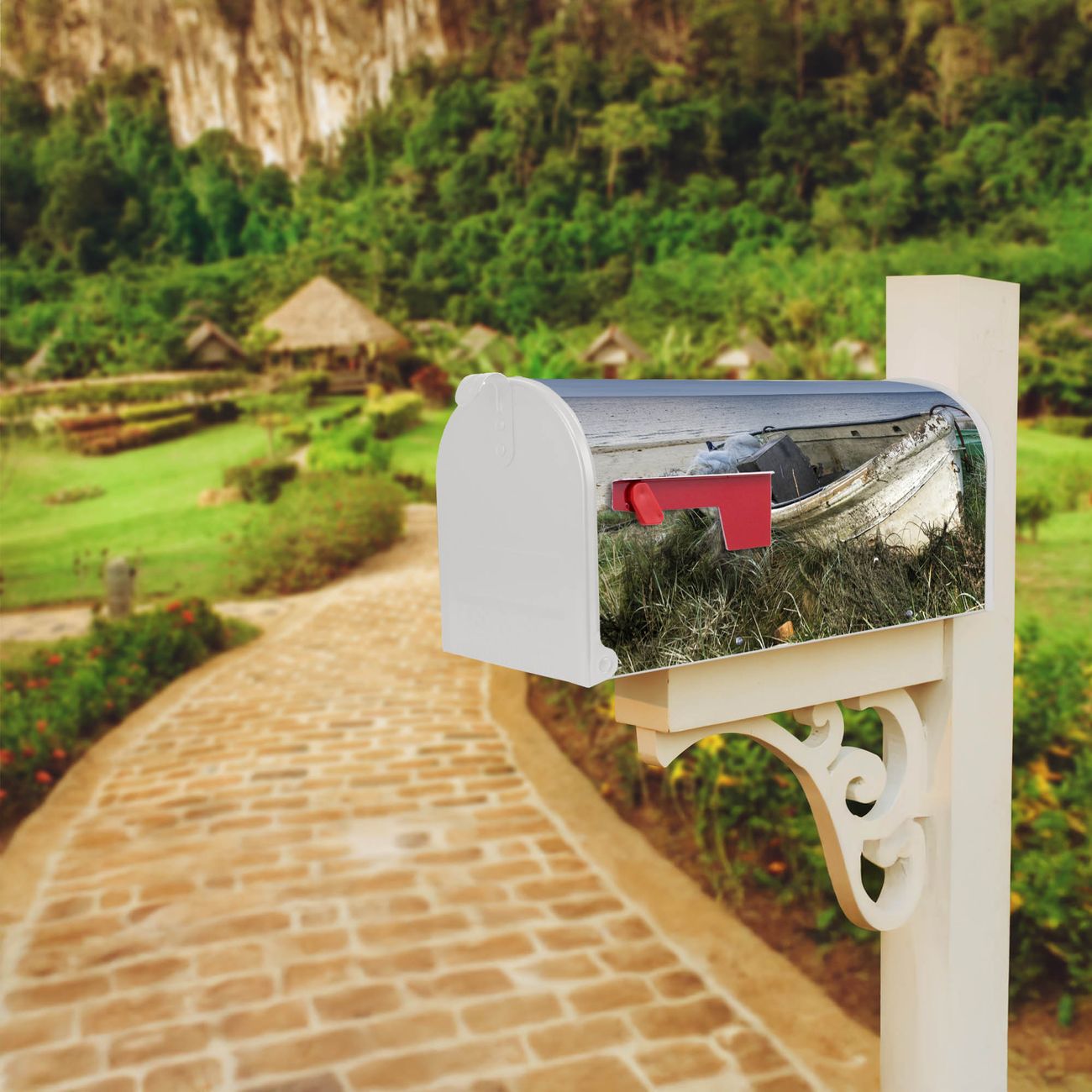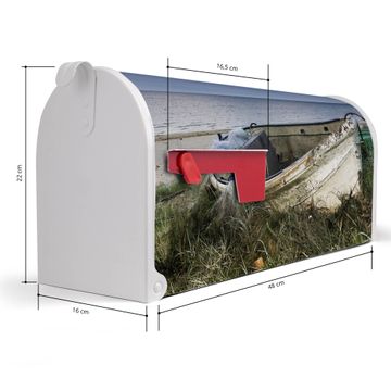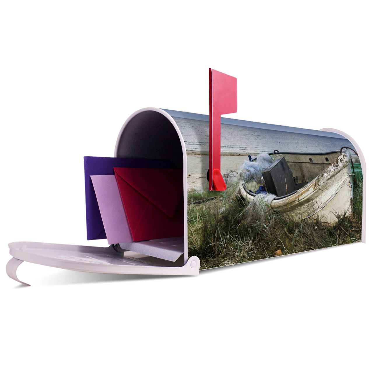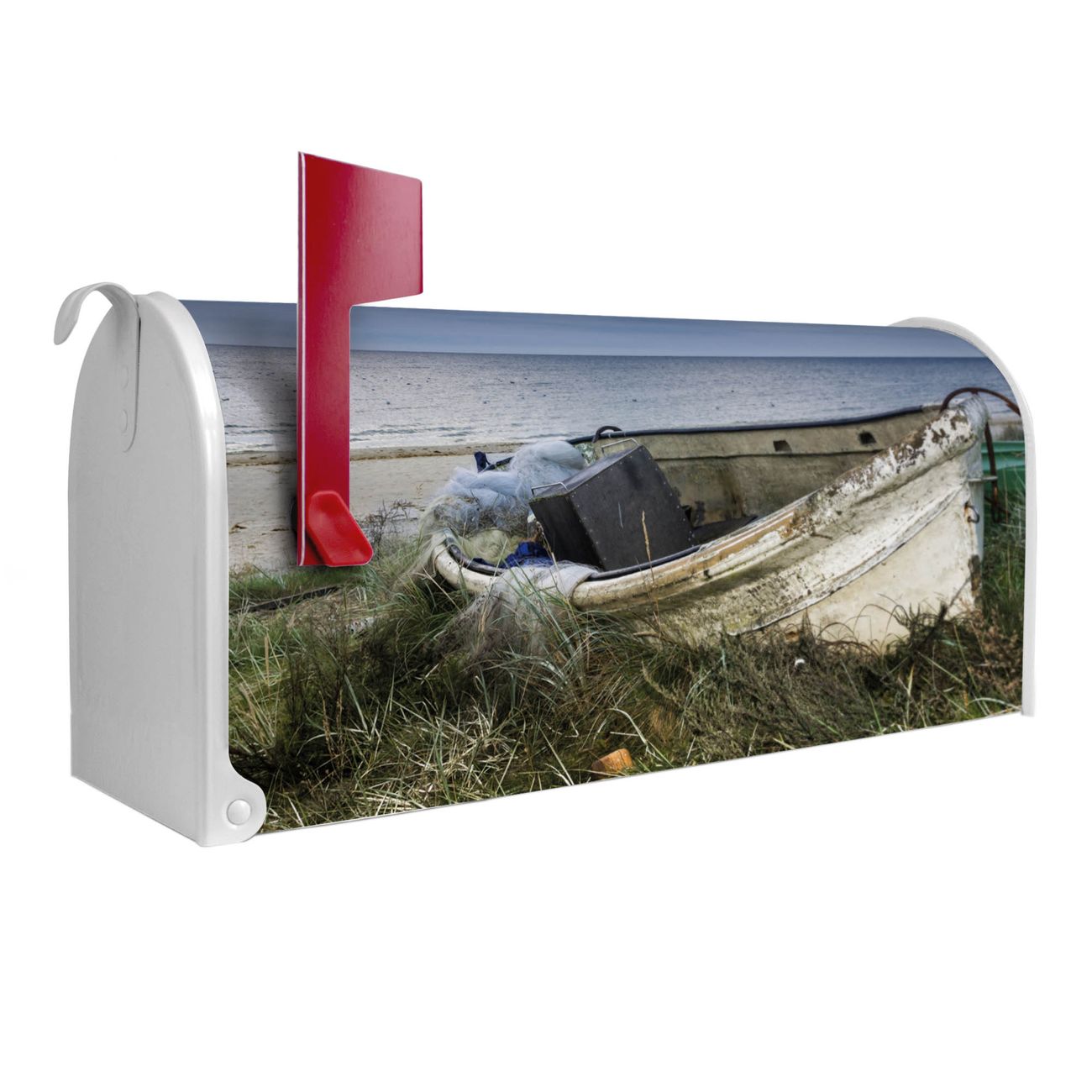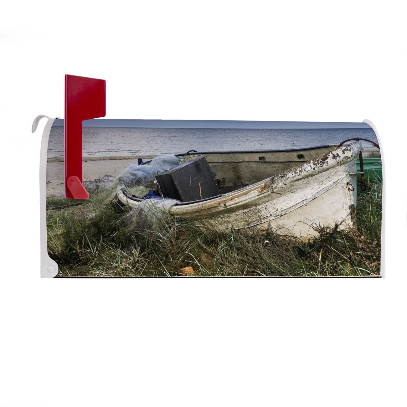Der amerikanische Briefkasten von banjado mit Vergessenes Fischerboot Motiv bietet Ihnen ausreichend Fassungsvermögen, um große A4 Sendungen und Zeitschriften zu empfangen. Die typisch amerikanische rote Fahne zeigt Ihnen an, wenn Sie Post erhalten haben. Die US-Mailbox besteht aus verzinktem Stahlblech welches lackiert wurde und ist 48 x 22 x 16 CM (BxHxT) groß. Die Folie mit Motiv Vergessenes Fischerboot besteht aus einer wetter- und UV-resistenten Folie, die mit einem Schutzlaminat überzogen ist, sodass die US Mailbox zusätzlich vor Kratzern geschützt ist. An der Unterkante sind 4 Löcher je Seite um die Mailbox, typisch amerikanisch, an einem Holzpfahl oder einem Zaun zu befestigen. Auf Wunsch können Sie bei uns den passenden Standfuß oder die passende Wandhalterung kaufen um die US-Mailbox sicher zu befestigen. Wir bieten Ihnen ebenfalls Namensschilder, bereits beschriftet oder frei zu beschriften, und verschiedene selbst gestaltete Bitte-Keine-Werbung-Aufkleber.