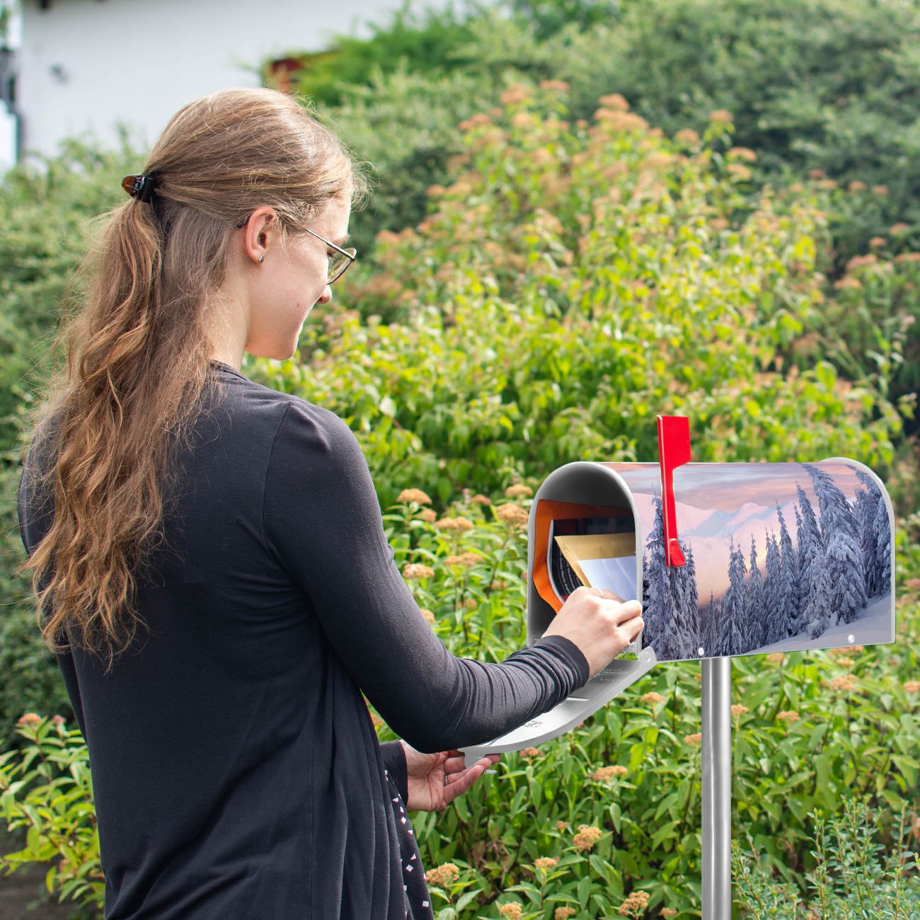 Unser amerikanischer Briefkasten mit dem Motiv Verschneite Berge hat ein sehr ansprechendes und ausgefallenes Design, ist in der Grundfarbe weiß, grün oder schwarz erhältlich. Damit entlocken Sie Ihren Nachbarn und dem Postboten immer wieder ein Lächeln. Die Mailbox ist ein Original Import aus Mississippi USA und wird von unserer kleinen Manufaktur in Sachsen von Hand veredelt. Die US-Mailbox bietet ausreichend Platz auch für große Sendungen, eine Fahne die Ihnen Post anzeigt, wetterfestes und äußerst stabiles Material - so macht Post empfangen Freude.