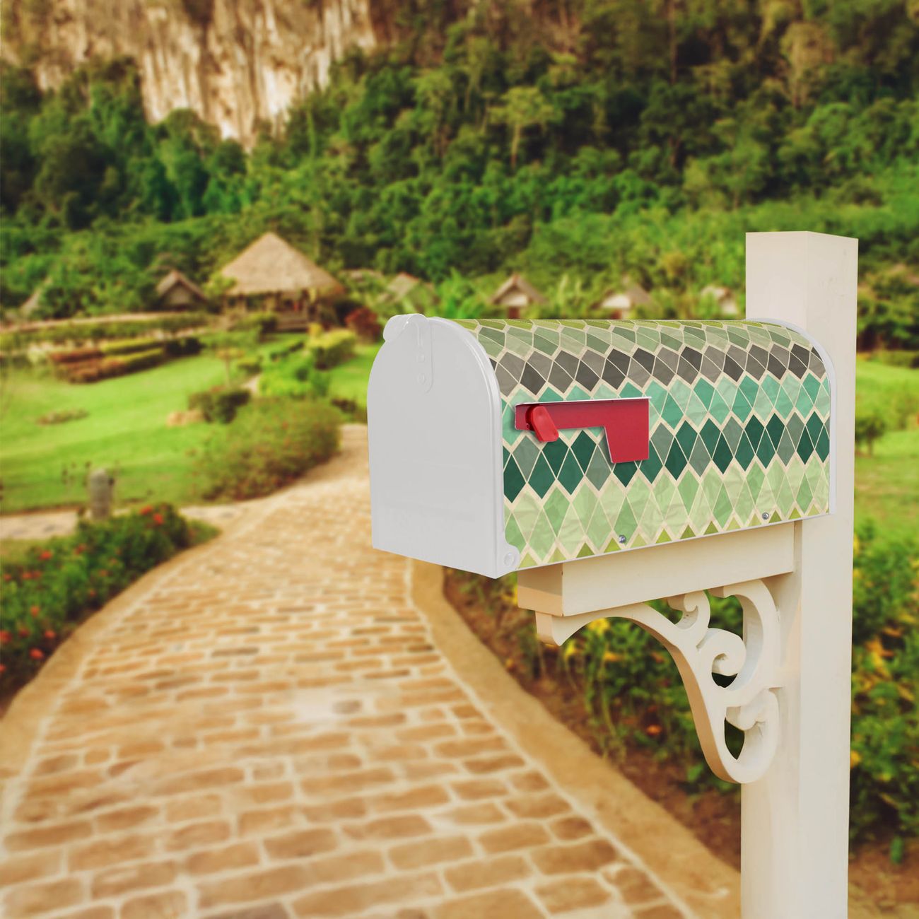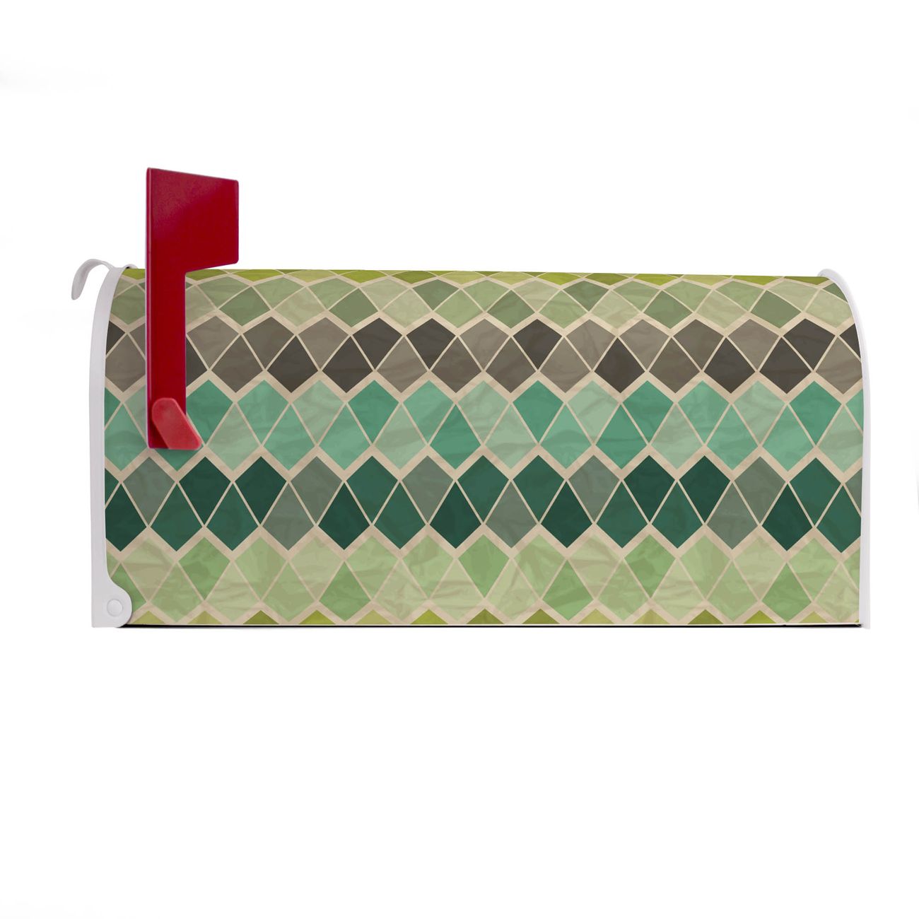 Der amerikanische Briefkasten von banjado mit Vier Farben Grün Motiv bietet Ihnen ausreichend Fassungsvermögen, um große A4 Sendungen und Zeitschriften zu empfangen. Die typisch amerikanische rote Fahne zeigt Ihnen an, wenn Sie Post erhalten haben. Die US-Mailbox besteht aus verzinktem Stahlblech welches lackiert wurde und ist 48 x 22 x 16 CM (BxHxT) groß. Die Folie mit Motiv Vier Farben Grün besteht aus einer wetter- und UV-resistenten Folie, die mit einem Schutzlaminat überzogen ist, sodass die US Mailbox zusätzlich vor Kratzern geschützt ist. An der Unterkante sind 4 Löcher je Seite um die Mailbox, typisch amerikanisch, an einem Holzpfahl oder einem Zaun zu befestigen. Auf Wunsch können Sie bei uns den passenden Standfuß oder die passende Wandhalterung kaufen um die US-Mailbox sicher zu befestigen. Wir bieten Ihnen ebenfalls Namensschilder, bereits beschriftet oder frei zu beschriften, und verschiedene selbst gestaltete Bitte-Keine-Werbung-Aufkleber.