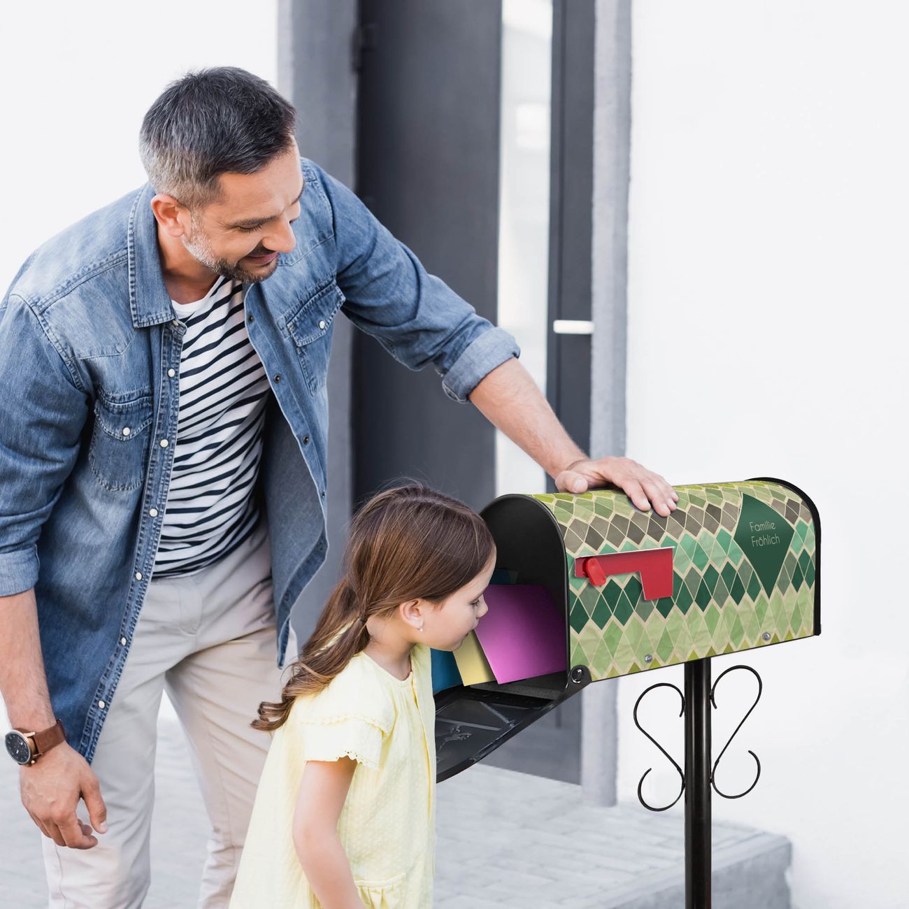 Unser amerikanischer Briefkasten mit dem Motiv Vier Farben Grün hat ein sehr ansprechendes und ausgefallenes Design, ist in der Grundfarbe weiß, grün oder schwarz erhältlich. Damit entlocken Sie Ihren Nachbarn und dem Postboten immer wieder ein Lächeln. Die Mailbox ist ein Original Import aus Mississippi USA und wird von unserer kleinen Manufaktur in Sachsen von Hand veredelt. Die US-Mailbox bietet ausreichend Platz auch für große Sendungen, eine Fahne die Ihnen Post anzeigt, wetterfestes und äußerst stabiles Material - so macht Post empfangen Freude.