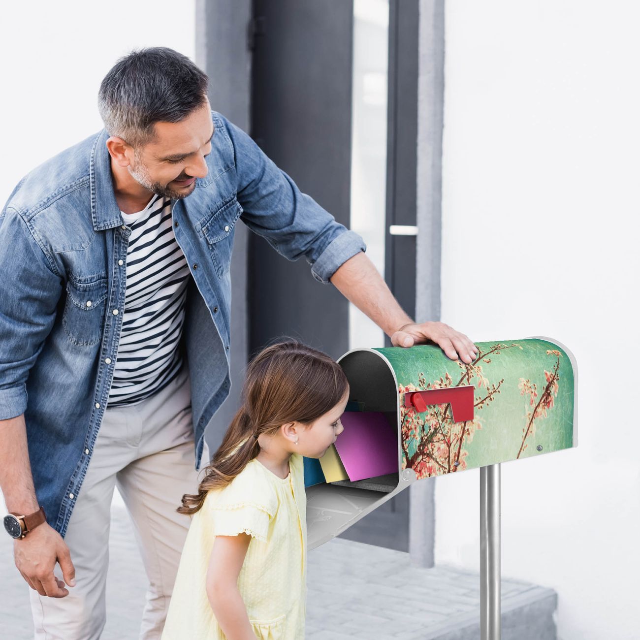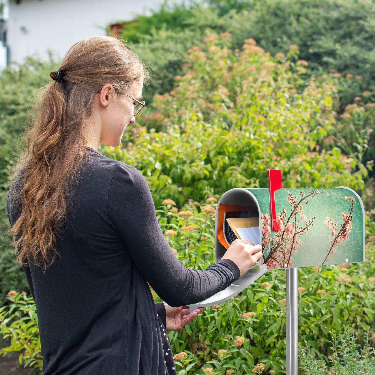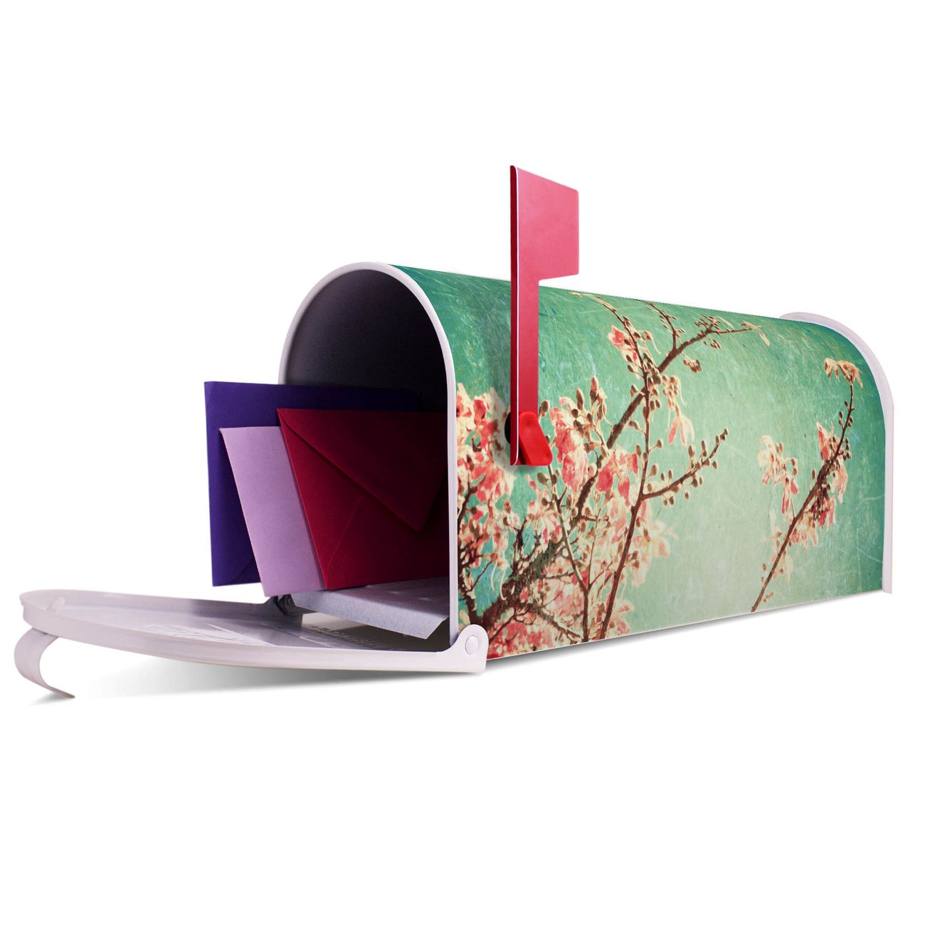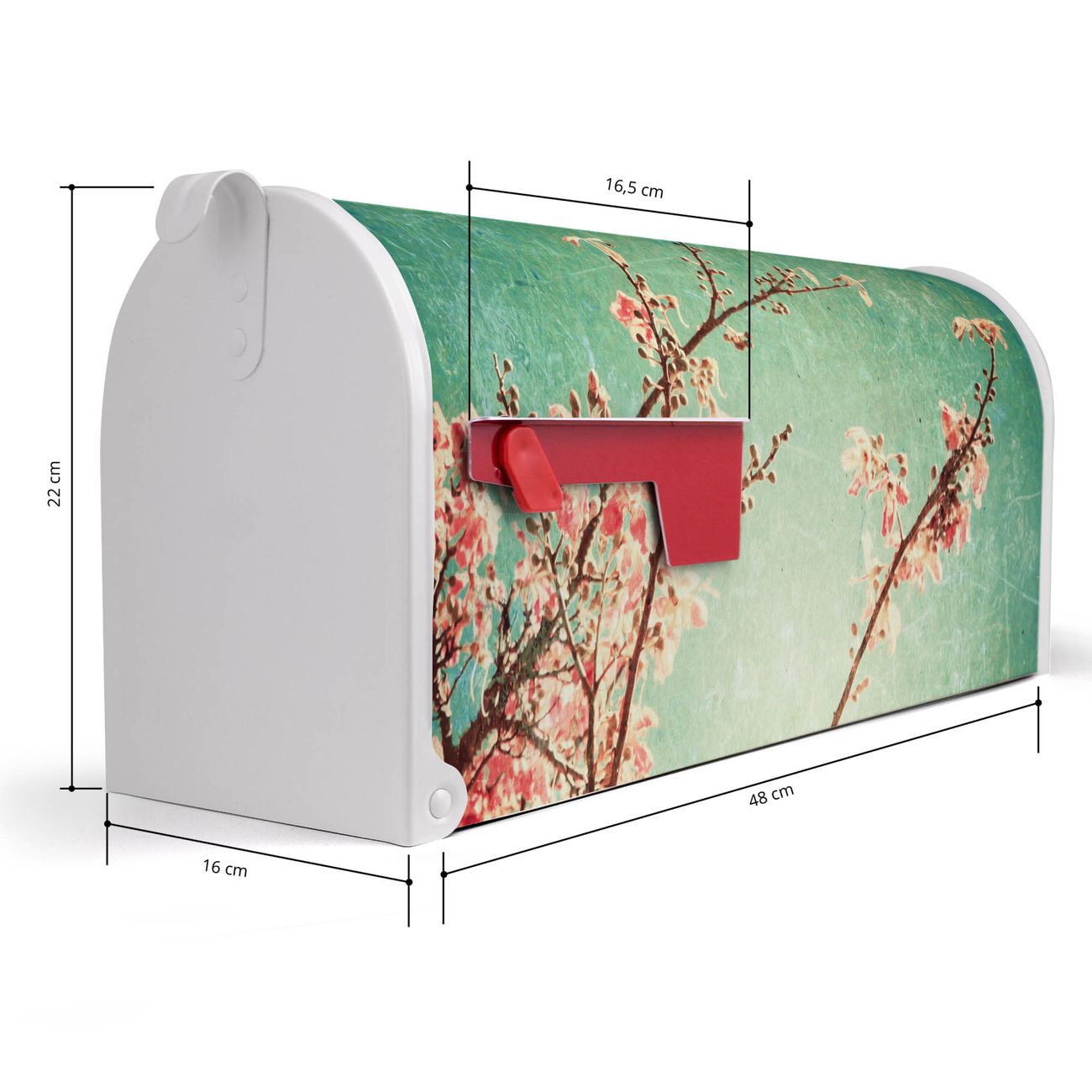 Der amerikanische Briefkasten von banjado mit Vintage Herbst Motiv bietet Ihnen ausreichend Fassungsvermögen, um große A4 Sendungen und Zeitschriften zu empfangen. Die typisch amerikanische rote Fahne zeigt Ihnen an, wenn Sie Post erhalten haben. Die US-Mailbox besteht aus verzinktem Stahlblech welches lackiert wurde und ist 48 x 22 x 16 CM (BxHxT) groß. Die Folie mit Motiv Vintage Herbst besteht aus einer wetter- und UV-resistenten Folie, die mit einem Schutzlaminat überzogen ist, sodass die US Mailbox zusätzlich vor Kratzern geschützt ist. An der Unterkante sind 4 Löcher je Seite um die Mailbox, typisch amerikanisch, an einem Holzpfahl oder einem Zaun zu befestigen. Auf Wunsch können Sie bei uns den passenden Standfuß oder die passende Wandhalterung kaufen um die US-Mailbox sicher zu befestigen. Wir bieten Ihnen ebenfalls Namensschilder, bereits beschriftet oder frei zu beschriften, und verschiedene selbst gestaltete Bitte-Keine-Werbung-Aufkleber.
