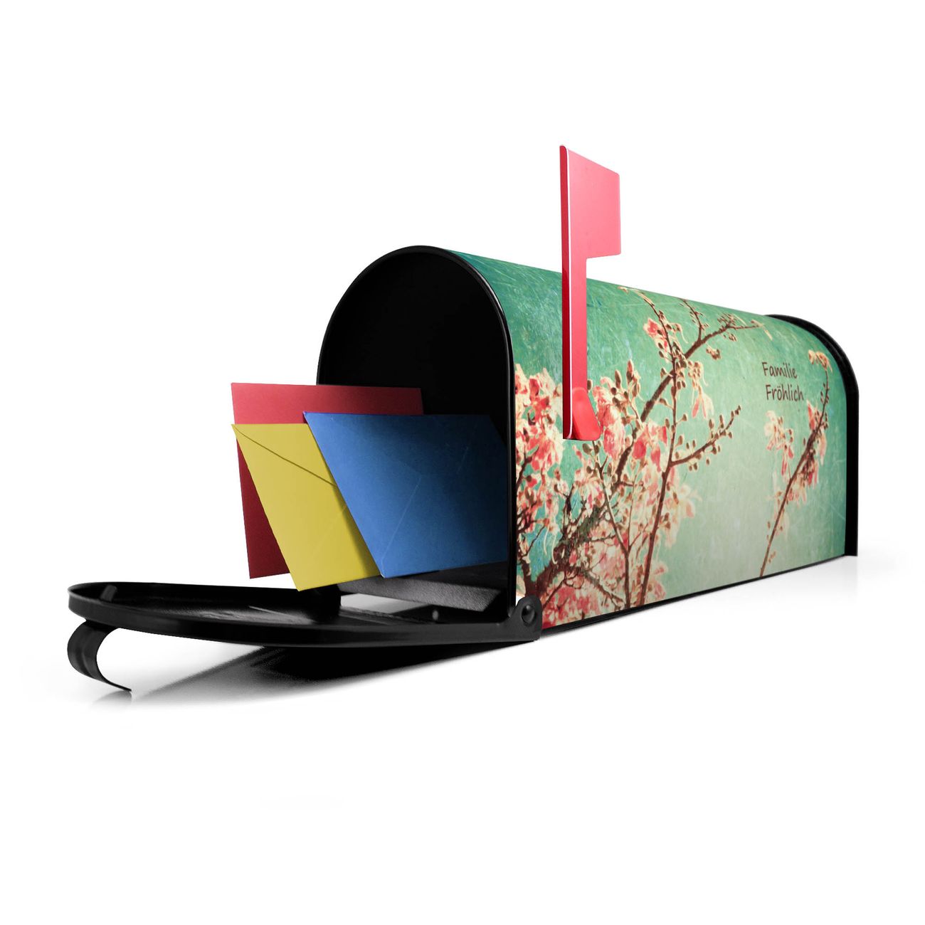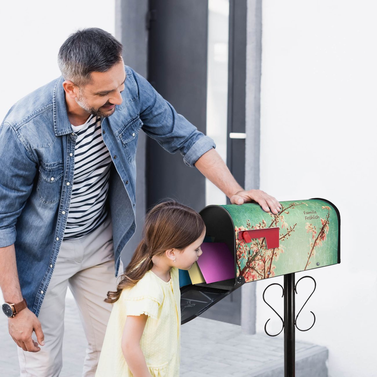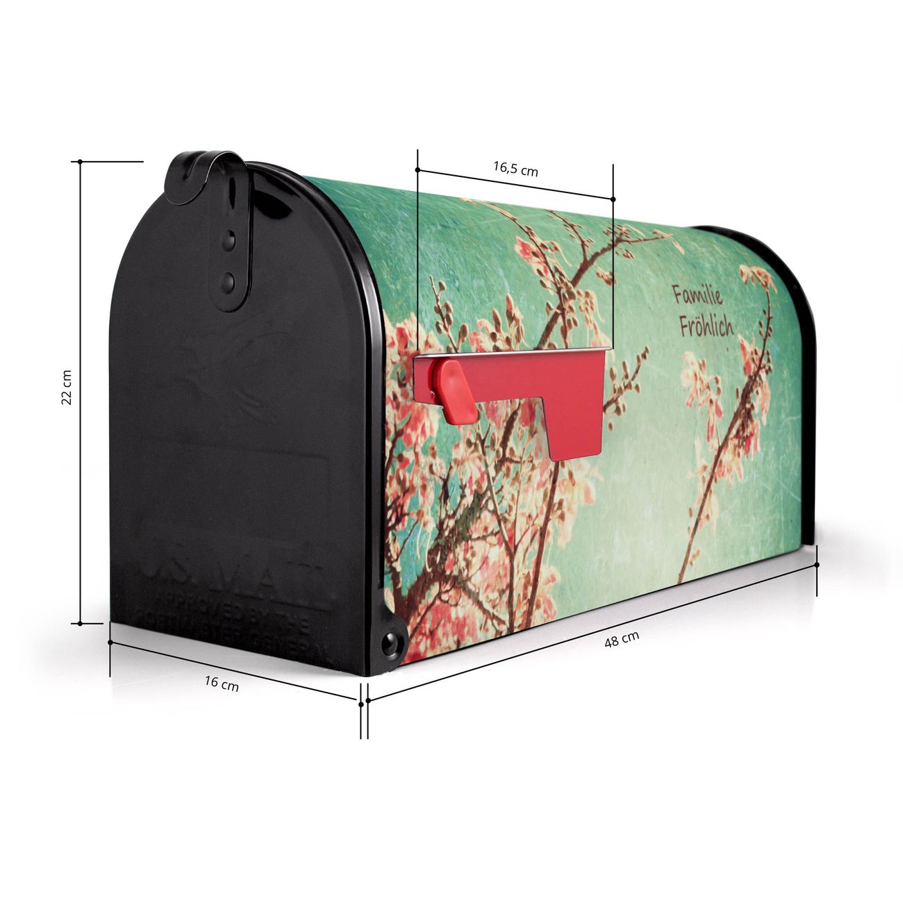 Der amerikanische Briefkasten von banjado mit Vintage Herbst Motiv bietet Ihnen ausreichend Fassungsvermögen, um große A4 Sendungen und Zeitschriften zu empfangen. Die typisch amerikanische rote Fahne zeigt Ihnen an, wenn Sie Post erhalten haben. Die US-Mailbox besteht aus verzinktem Stahlblech welches lackiert wurde und ist 48 x 22 x 16 CM (BxHxT) groß. Die Folie mit Motiv Vintage Herbst besteht aus einer wetter- und UV-resistenten Folie, die mit einem Schutzlaminat überzogen ist, sodass die US Mailbox zusätzlich vor Kratzern geschützt ist. An der Unterkante sind 4 Löcher je Seite um die Mailbox, typisch amerikanisch, an einem Holzpfahl oder einem Zaun zu befestigen. Auf Wunsch können Sie bei uns den passenden Standfuß oder die passende Wandhalterung kaufen um die US-Mailbox sicher zu befestigen. Wir bieten Ihnen ebenfalls Namensschilder, bereits beschriftet oder frei zu beschriften, und verschiedene selbst gestaltete Bitte-Keine-Werbung-Aufkleber.